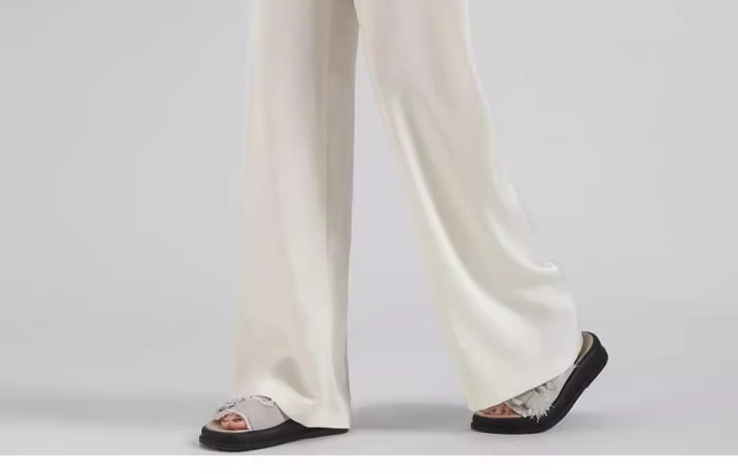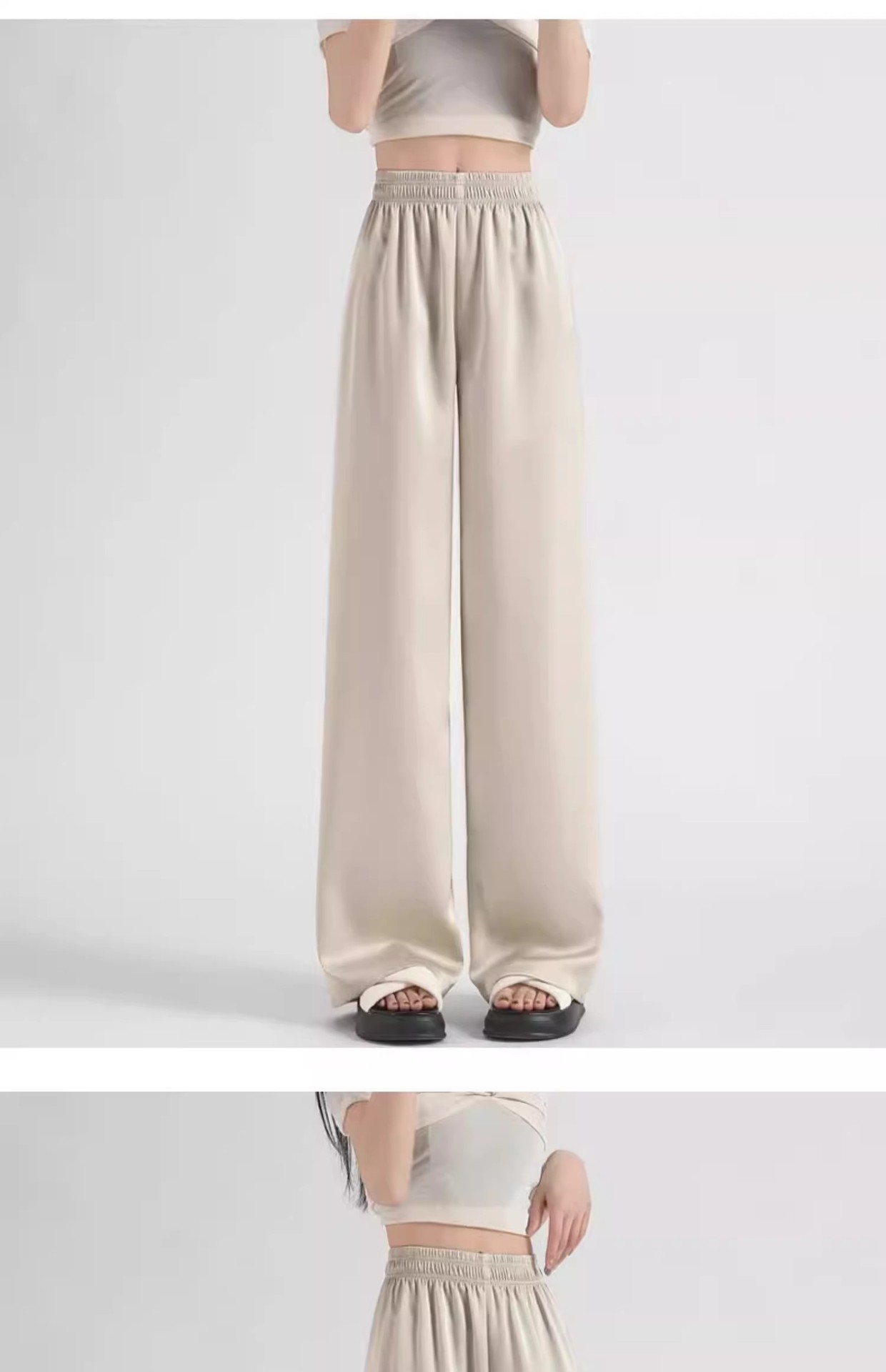 아세트산 새틴 넓은 다리 바지 여자 2025 새로운 여름 얇은 높은 허리 더미 쿨 선스크린 캐주얼 아이스 실크 바지스토어 가기
