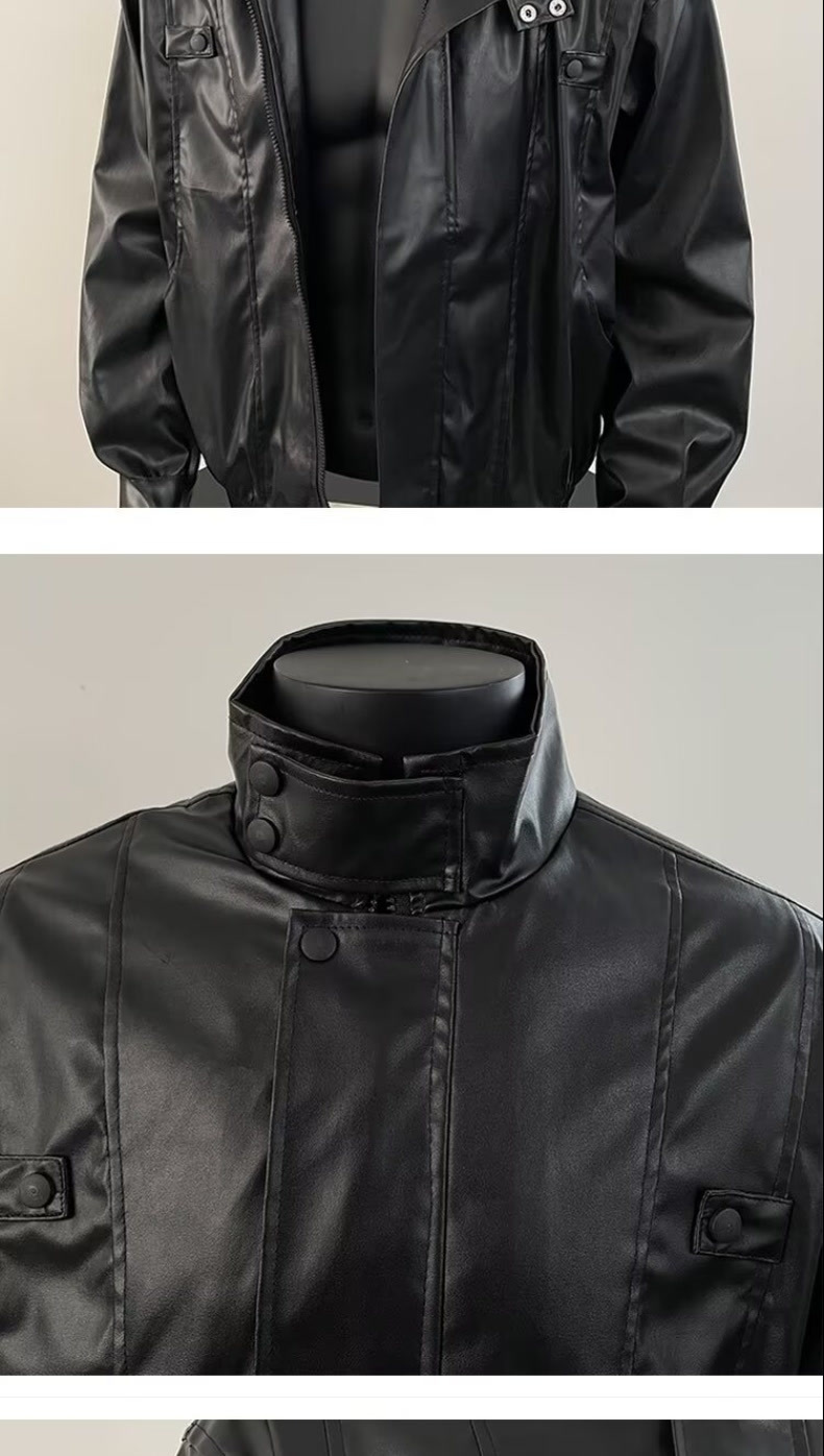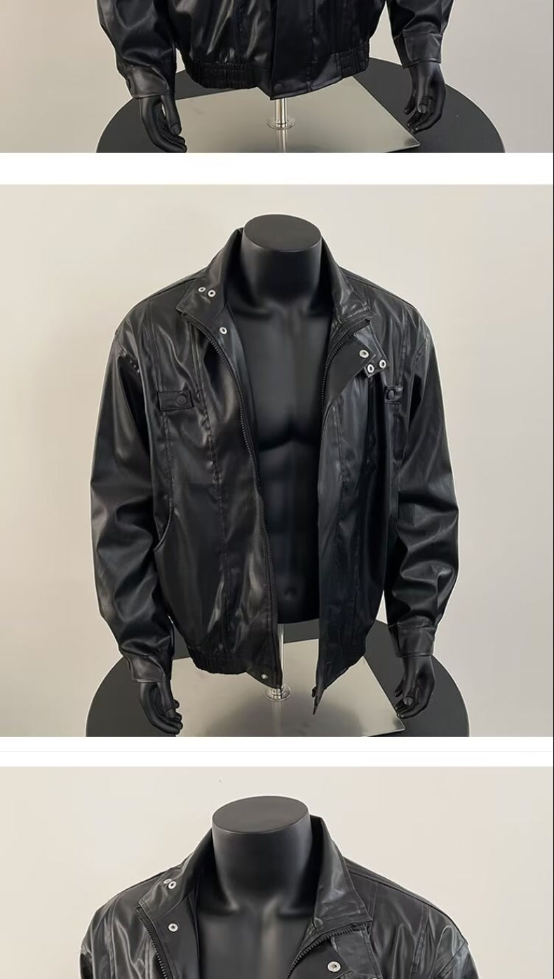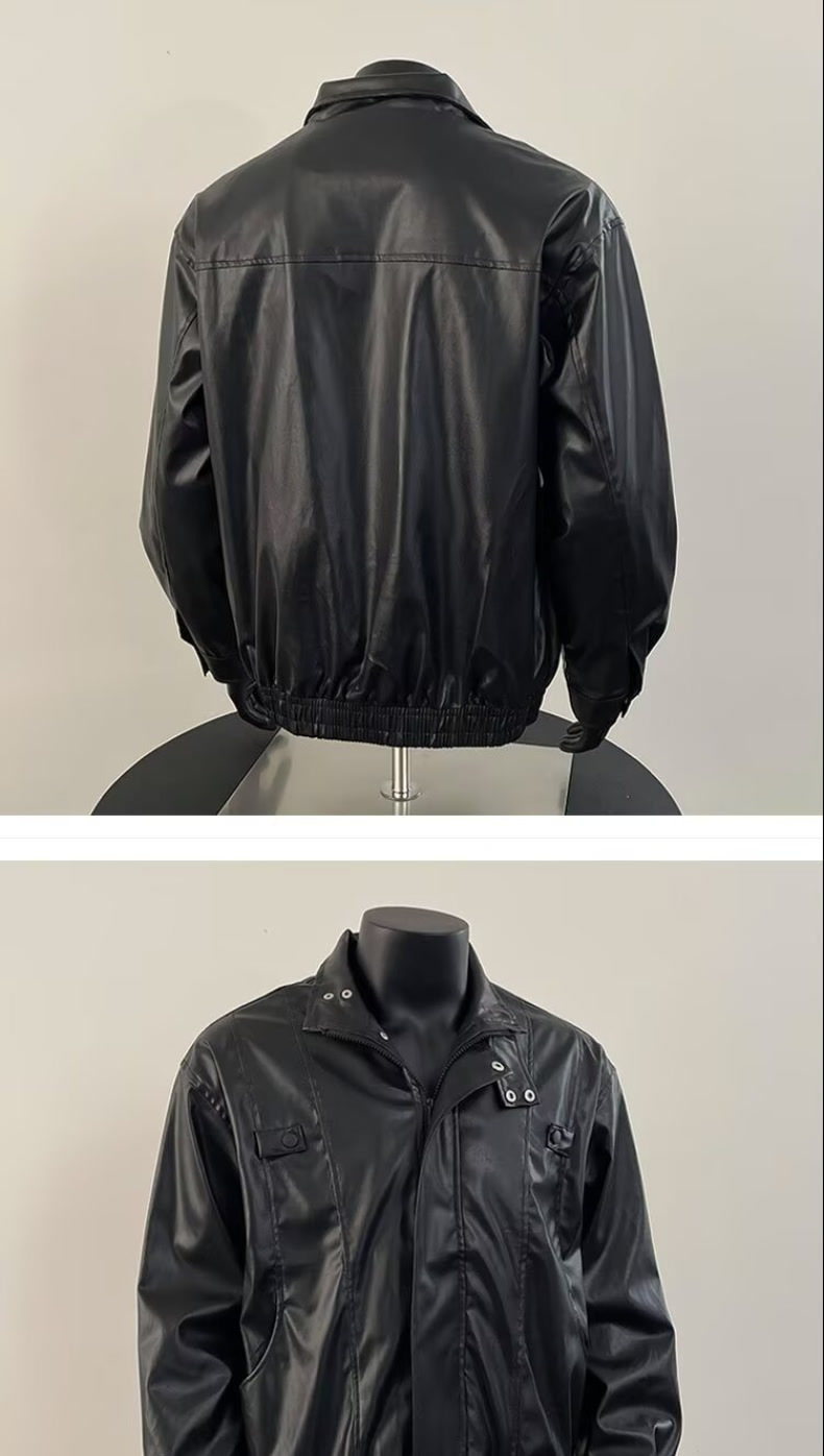 캐주얼 겨울 정사이즈 패션 하이 엔드 센스 블랙 가죽 남성 스트리트 레트로 느슨한 데님 옷깃 십대