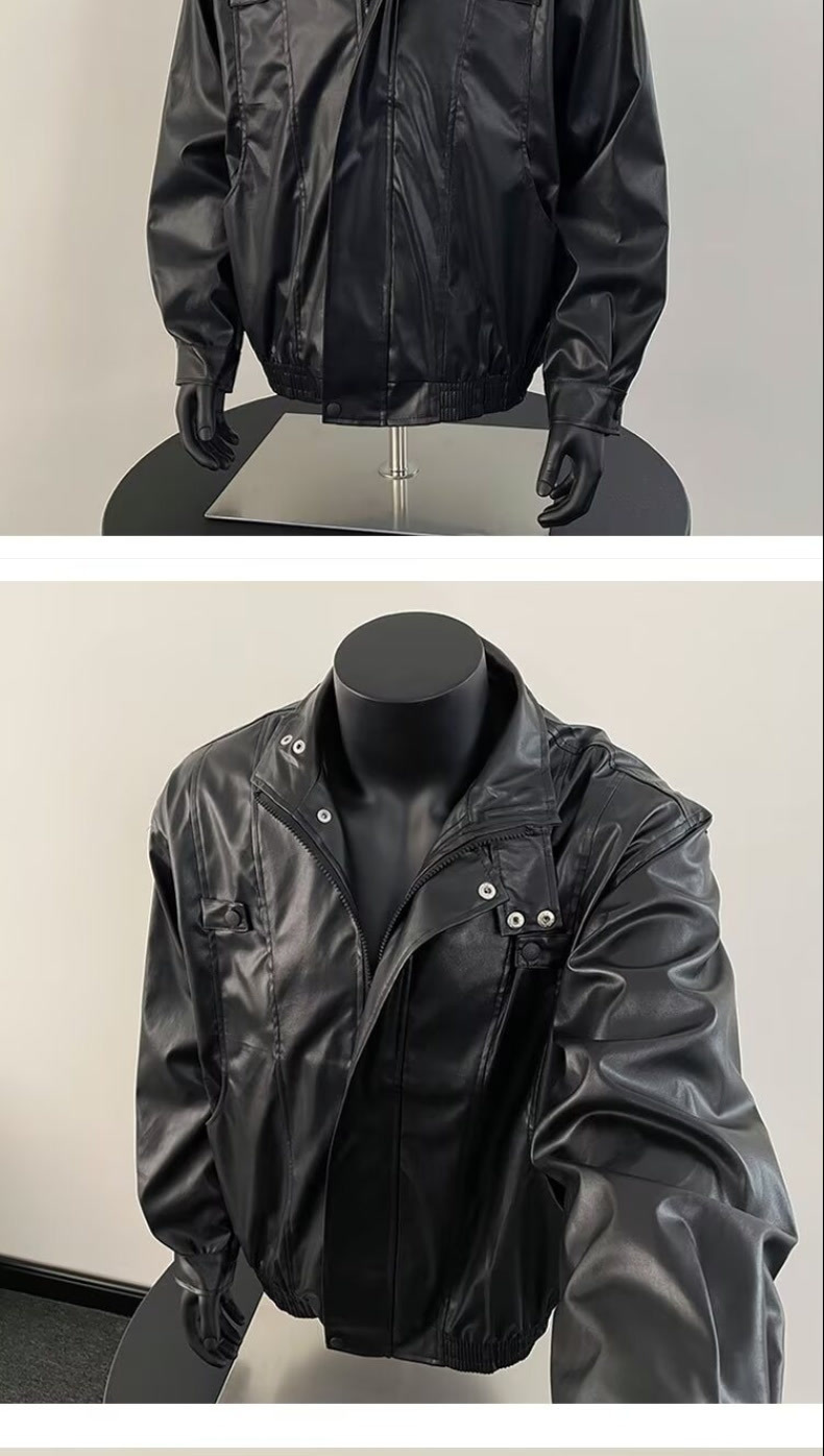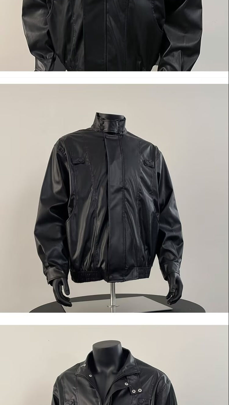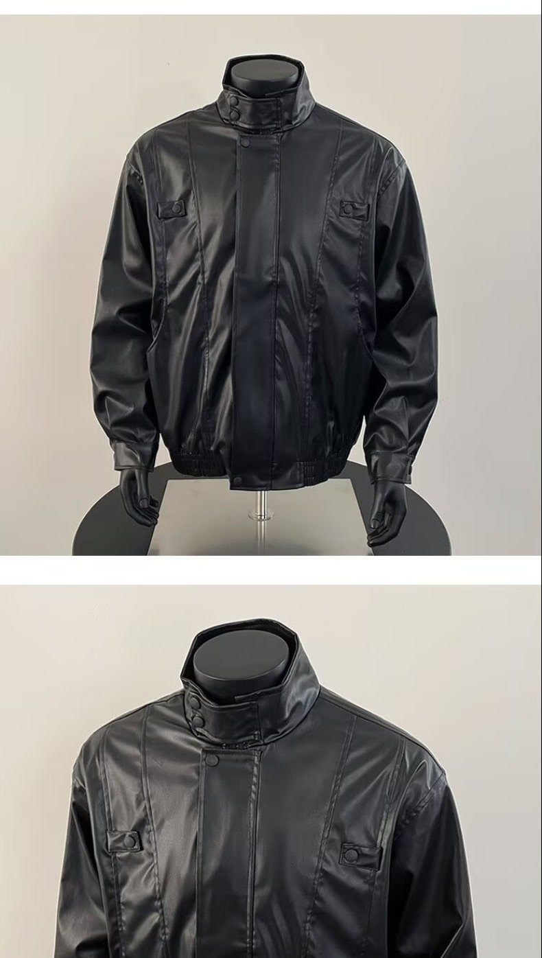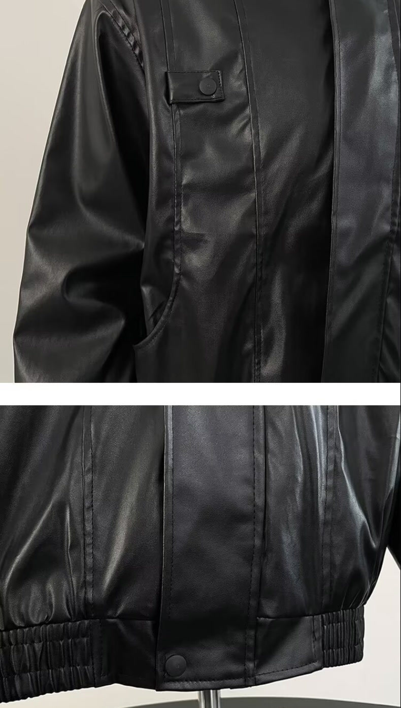 캐주얼 겨울 정사이즈 패션 하이 엔드 센스 블랙 가죽 남성 스트리트 레트로 느슨한 데님 옷깃 십대스토어 가기