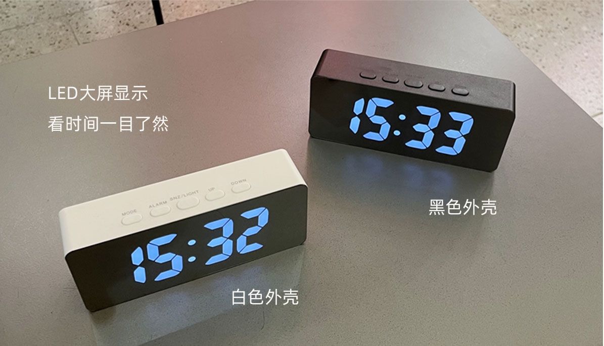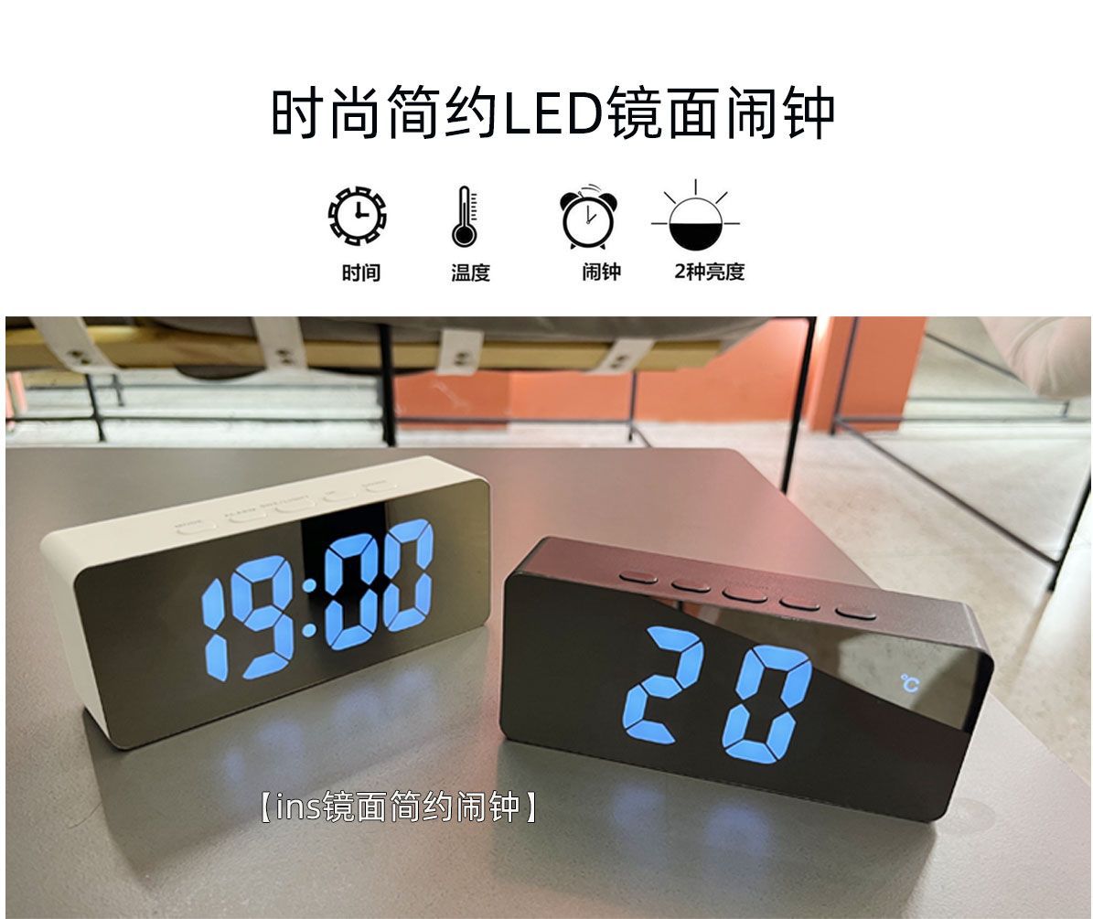 Ins 간단한 LED 발광 알람 시계 데스크탑 미러 시계 온도 스누즈 배터리 플러그인 이중 목적 전자 알람 시계스토어 가기