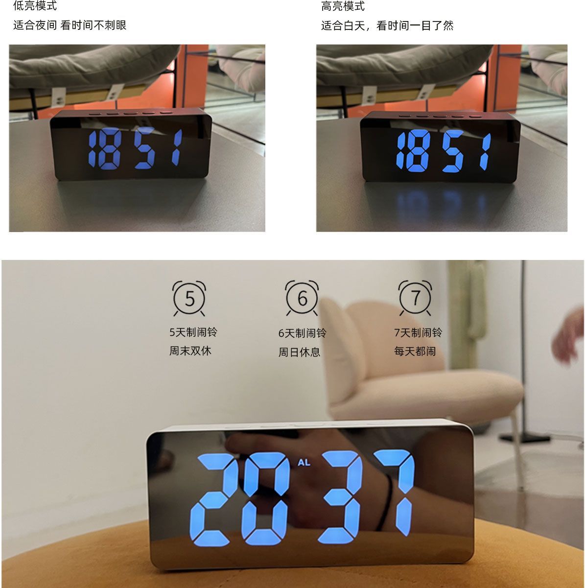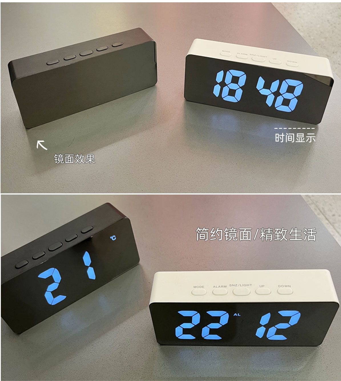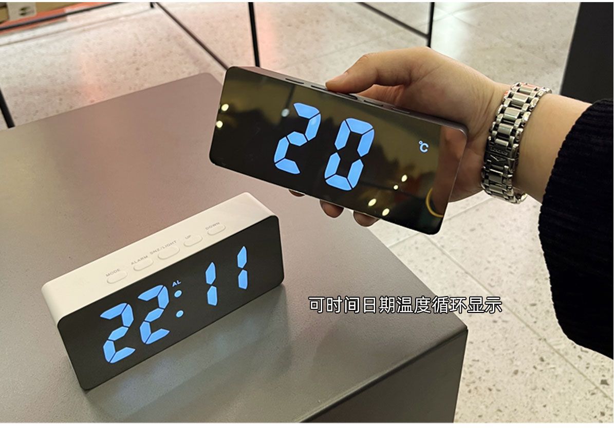 Ins 간단한 LED 발광 알람 시계 데스크탑 미러 시계 온도 스누즈 배터리 플러그인 이중 목적 전자 알람 시계
