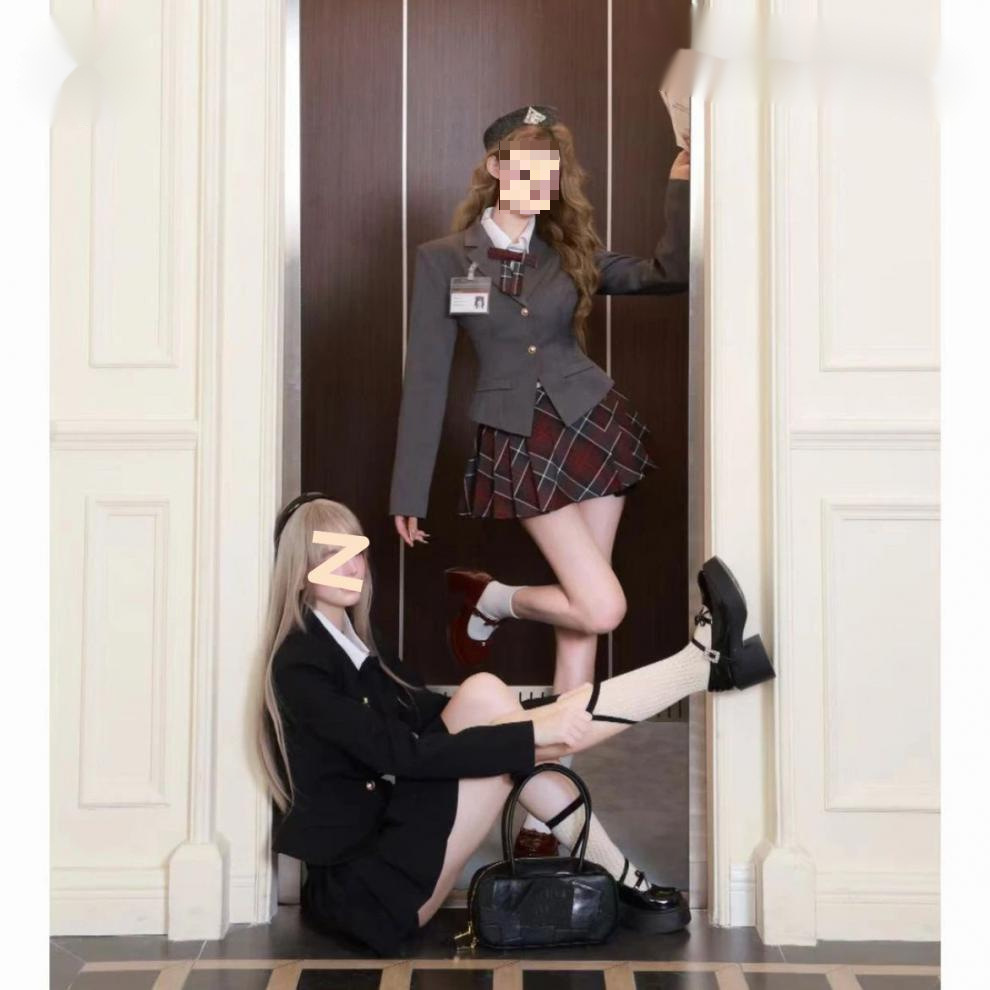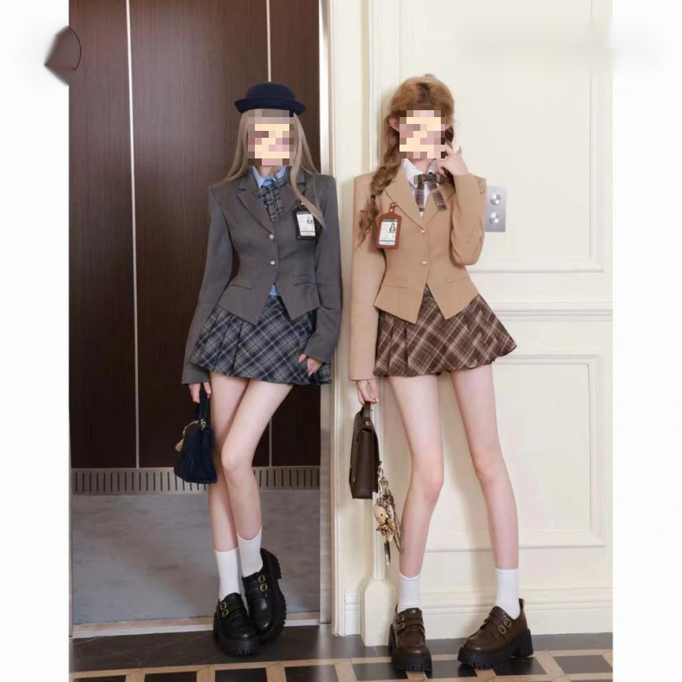A3I 한국 대학 스타일 JK 유니폼 세트 코트 여성 가을 겨울 새로운 높은 허리스토어 가기