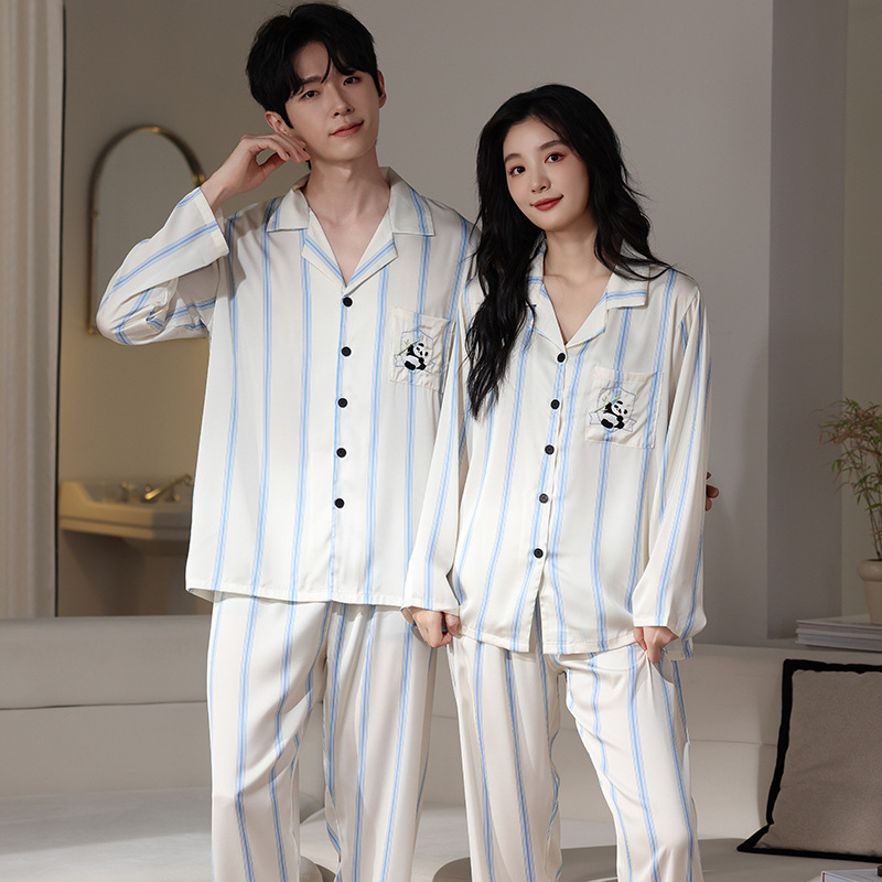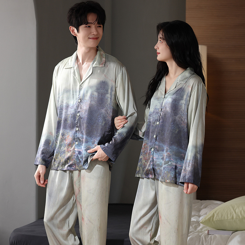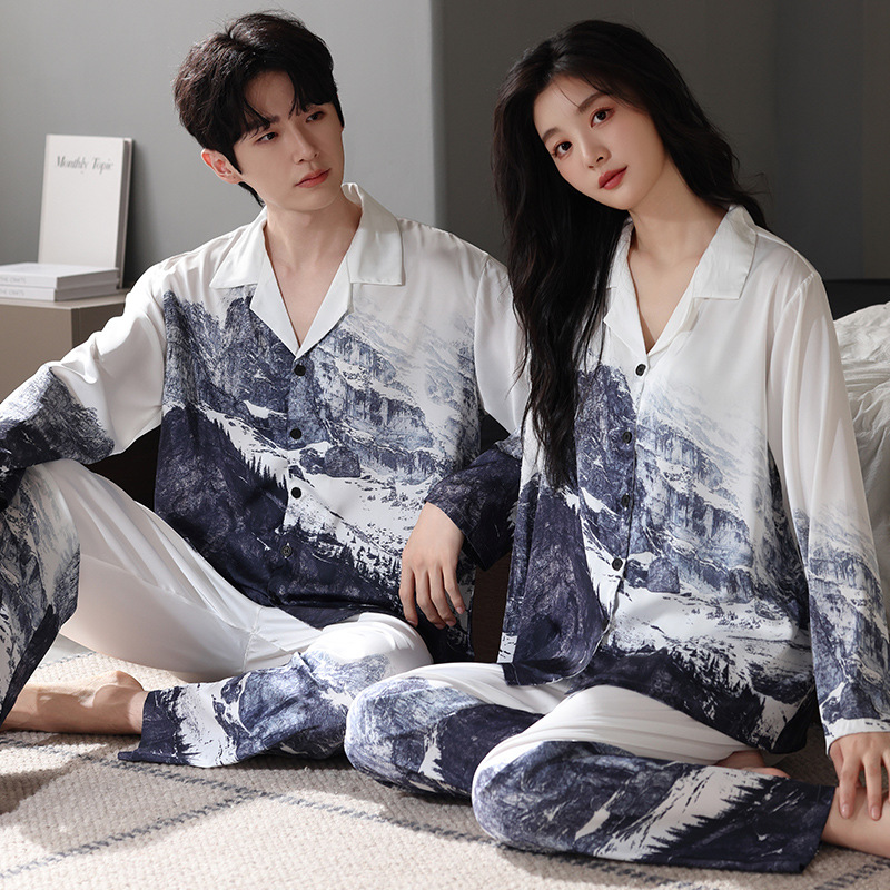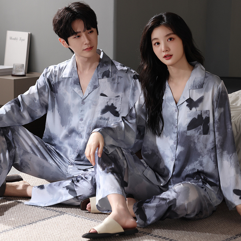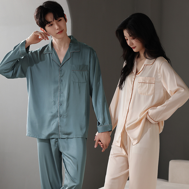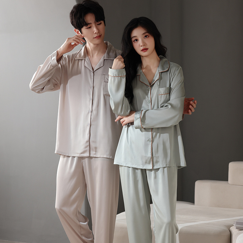 봄과 가을 커플 잠옷 웨딩 하이 엔드 카디건 아이스 실크 긴팔 바지 아웃웨어 실크 에어컨 의류 홈 의류스토어 가기