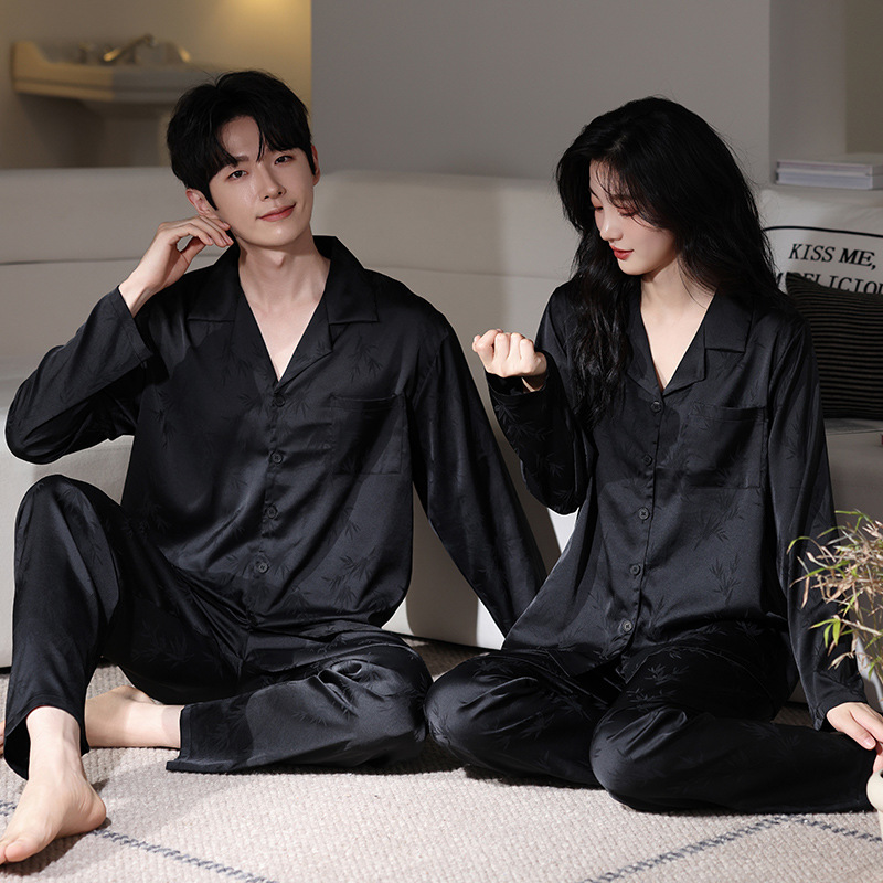 봄과 가을 커플 잠옷 웨딩 하이 엔드 카디건 아이스 실크 긴팔 바지 아웃웨어 실크 에어컨 의류 홈 의류