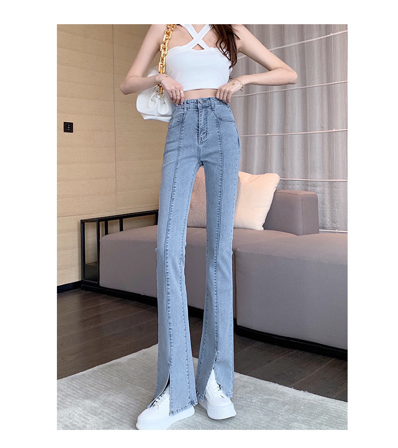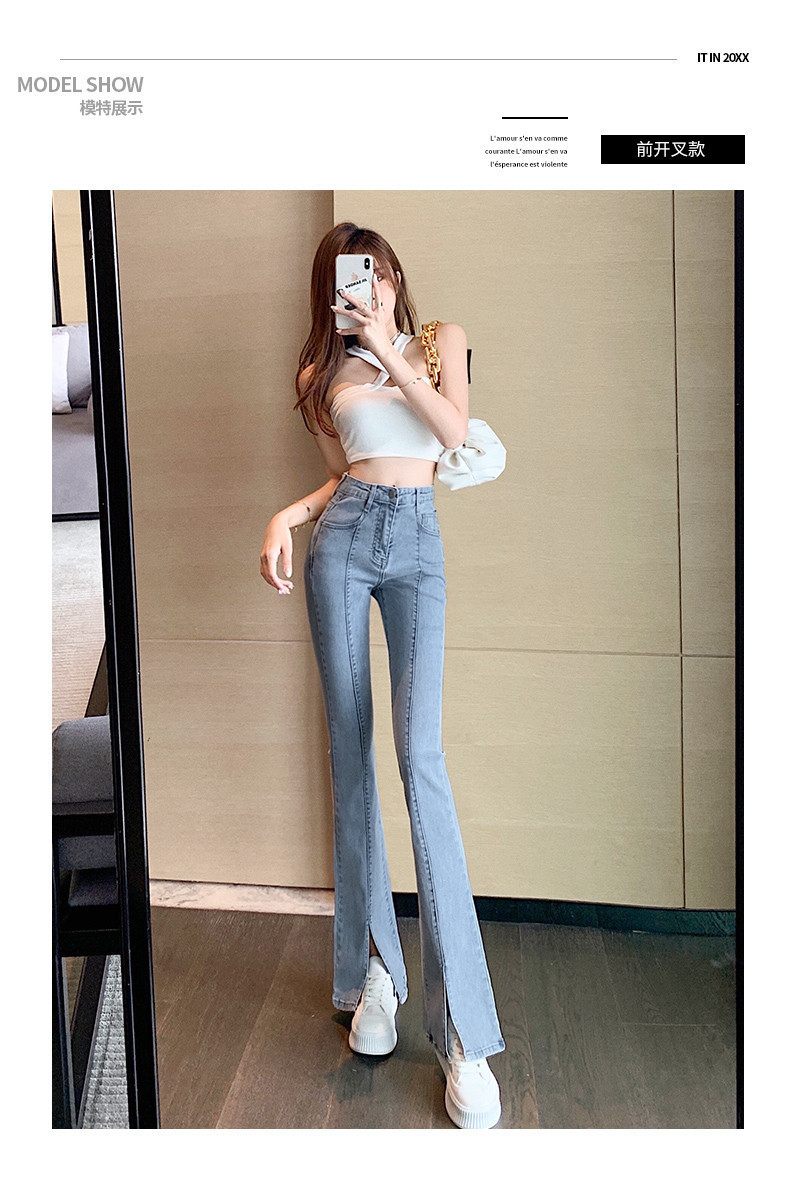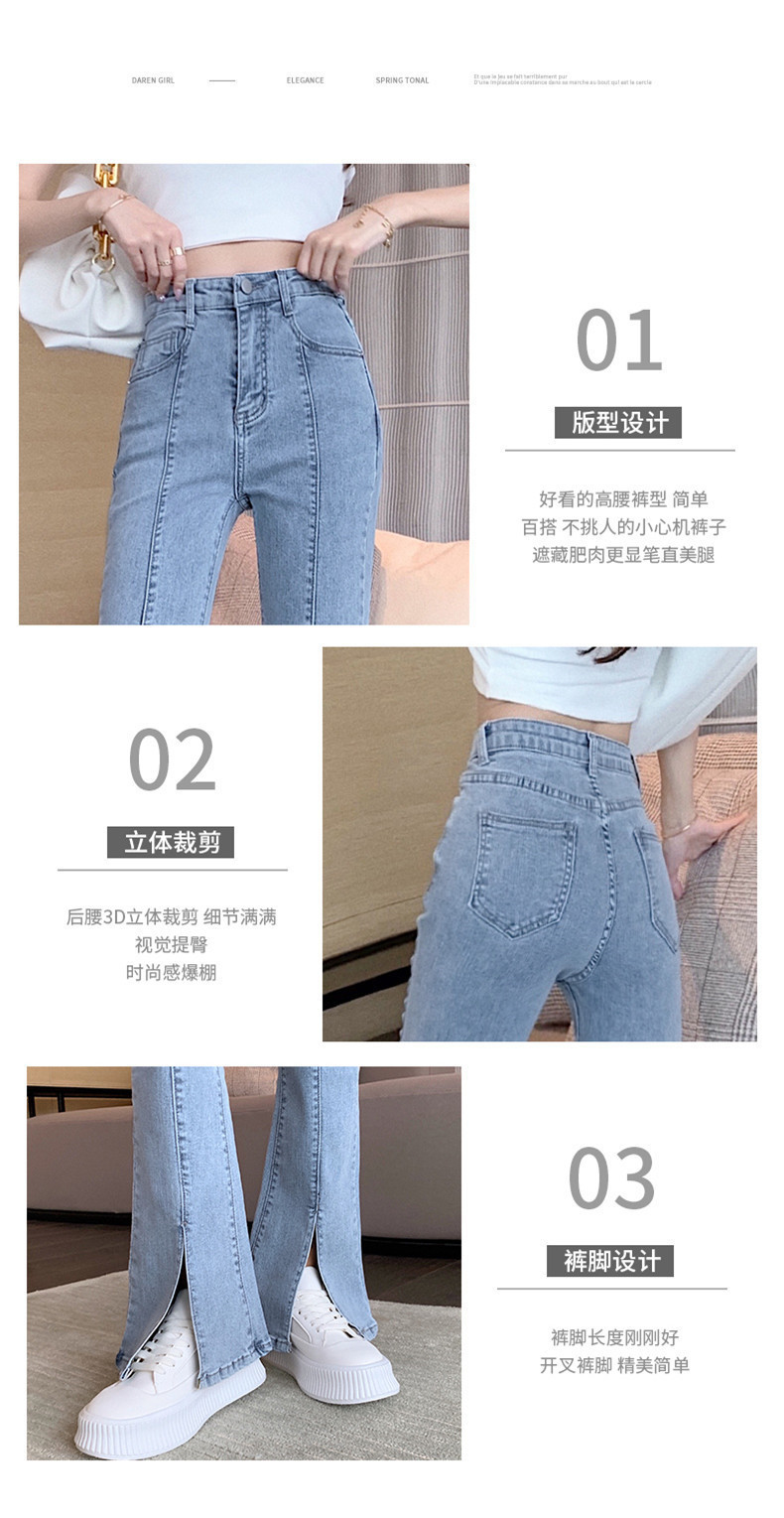 텐셀 청바지 여성의 여름 얇은 2024 새로운 높은 허리 슬리밍 수직 분할 마이크로 아이스 실크 걸레 바지스토어 가기