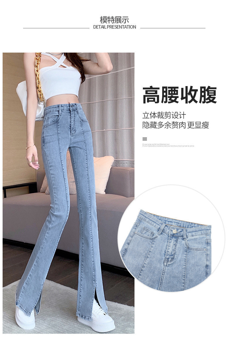 텐셀 청바지 여성의 여름 얇은 2024 새로운 높은 허리 슬리밍 수직 분할 마이크로 아이스 실크 걸레 바지