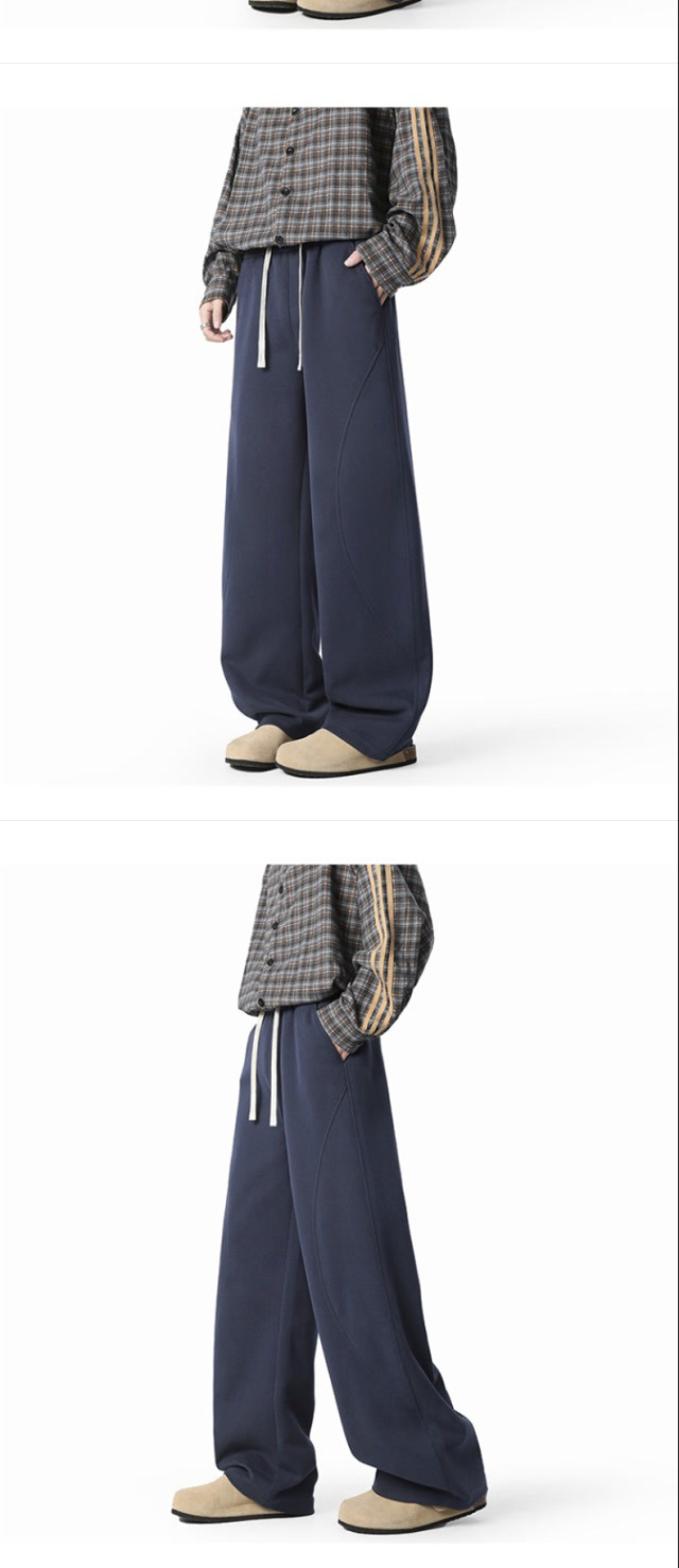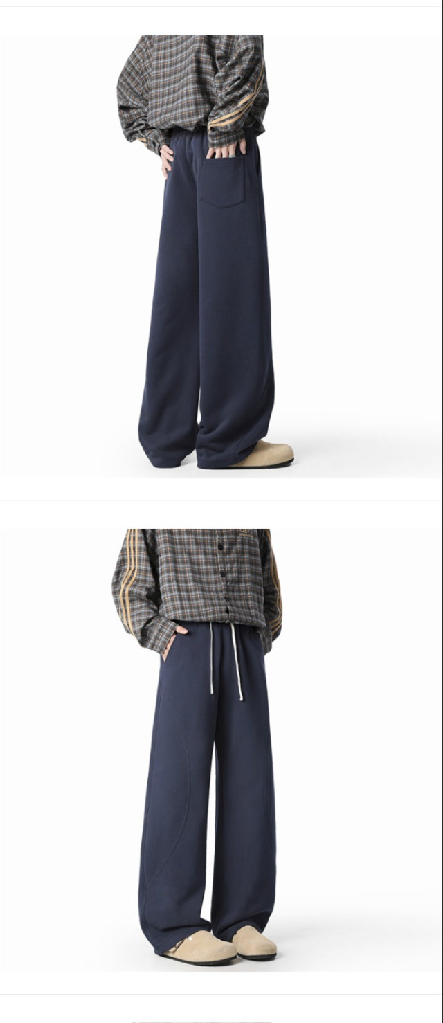 아메리칸 스타일 레트로 트렌디 브랜드 솔리드 컬러 중량급한 스포츠 마체테 바지 남자와 여자의 느슨한 올매치 와이드 레그 캐주얼 바지스토어 가기