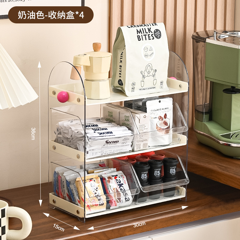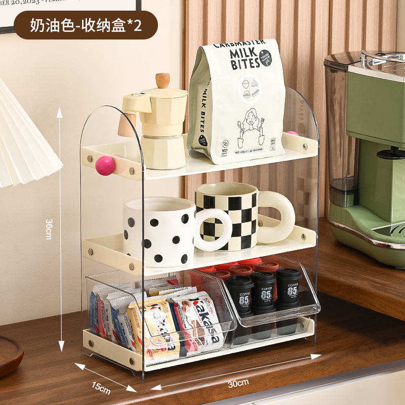 크로스보더 플라스틱 데스크탑 다층 수납 선반 크림 스타일 티백 홀더 주방 가정용 배수 트레이 다기능 수납 선반