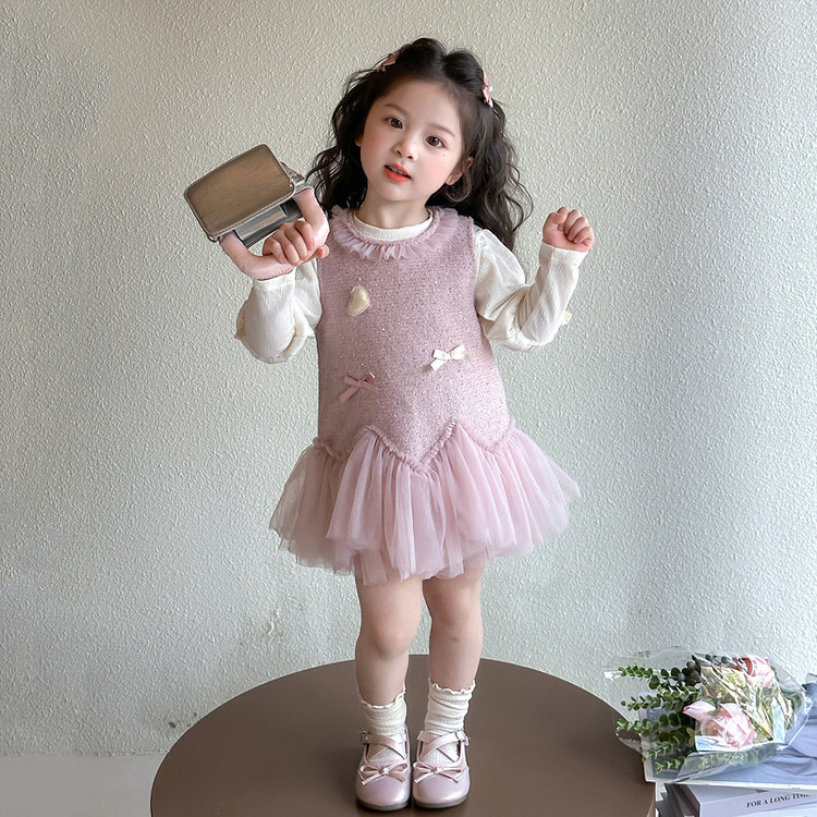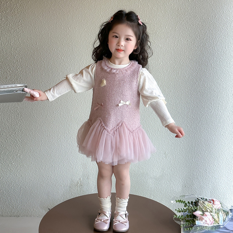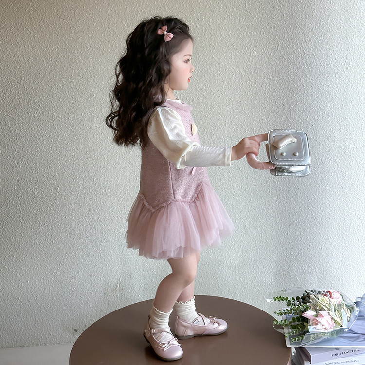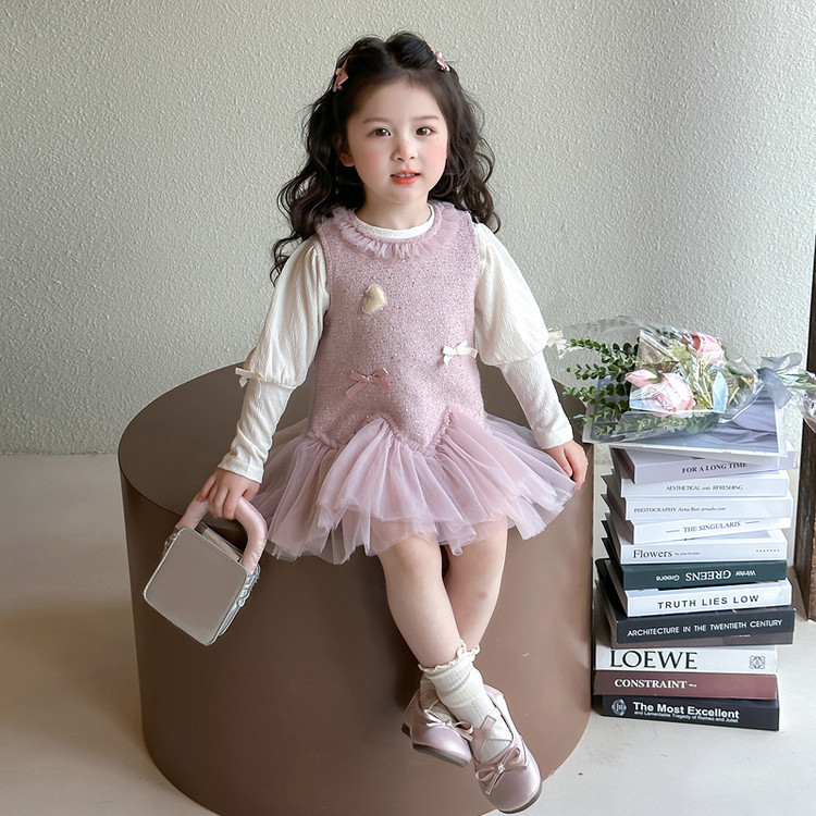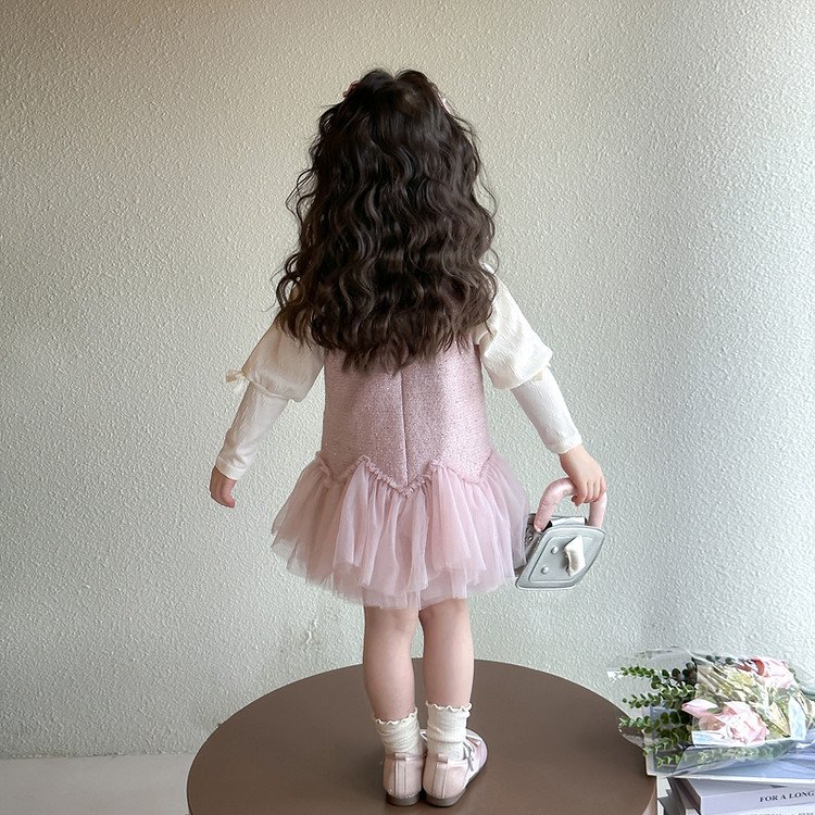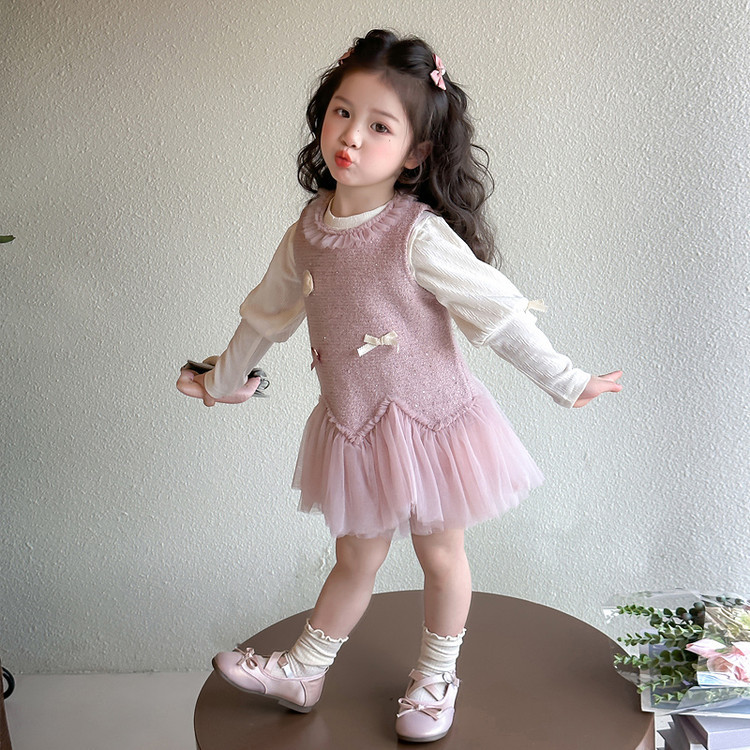소녀의 봄 원피스 2025 새로운 스타일 어린이 향기로운 스타일 세트 소녀 베일 스커트 봄과 가을 투피스 세트스토어 가기