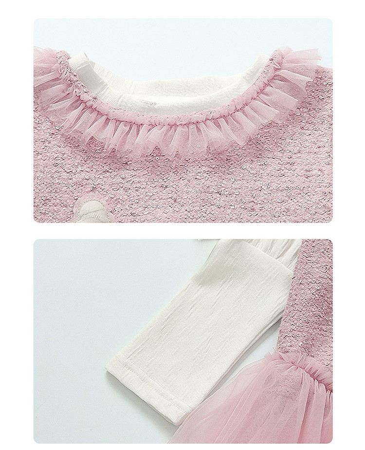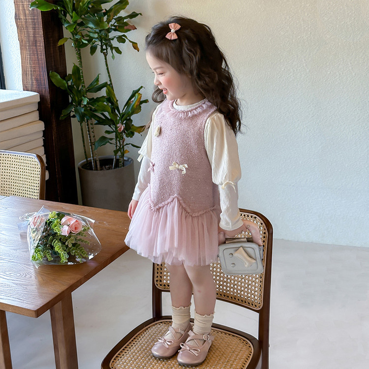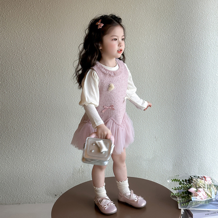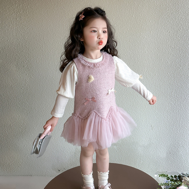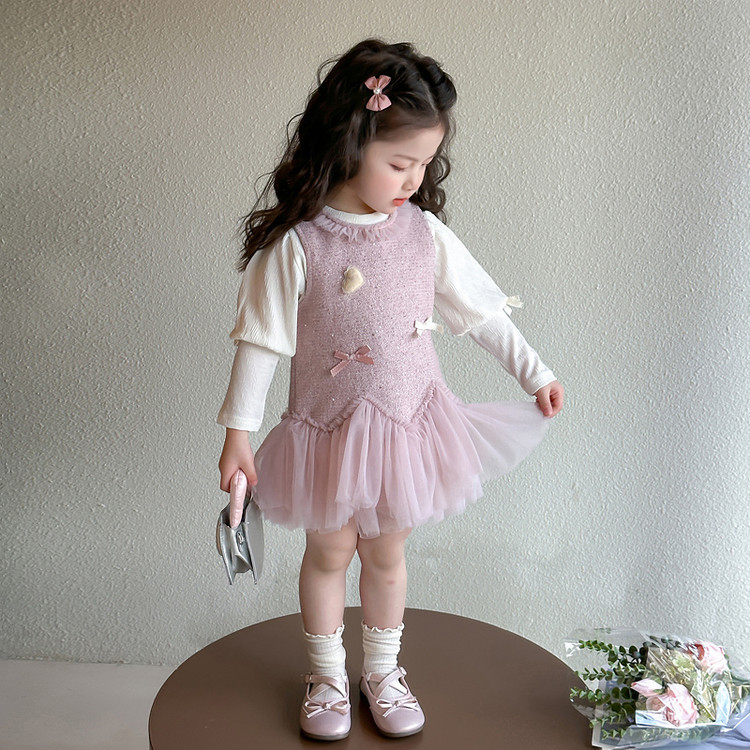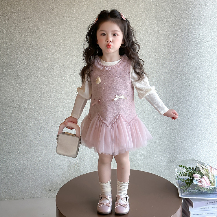 소녀의 봄 원피스 2025 새로운 스타일 어린이 향기로운 스타일 세트 소녀 베일 스커트 봄과 가을 투피스 세트스토어 가기