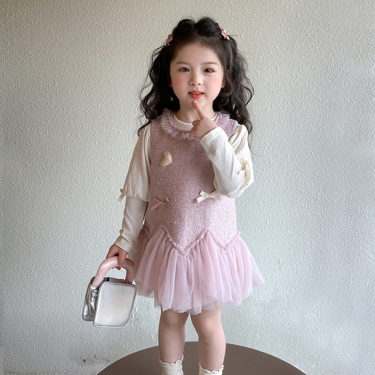 소녀의 봄 원피스 2025 새로운 스타일 어린이 향기로운 스타일 세트 소녀 베일 스커트 봄과 가을 투피스 세트