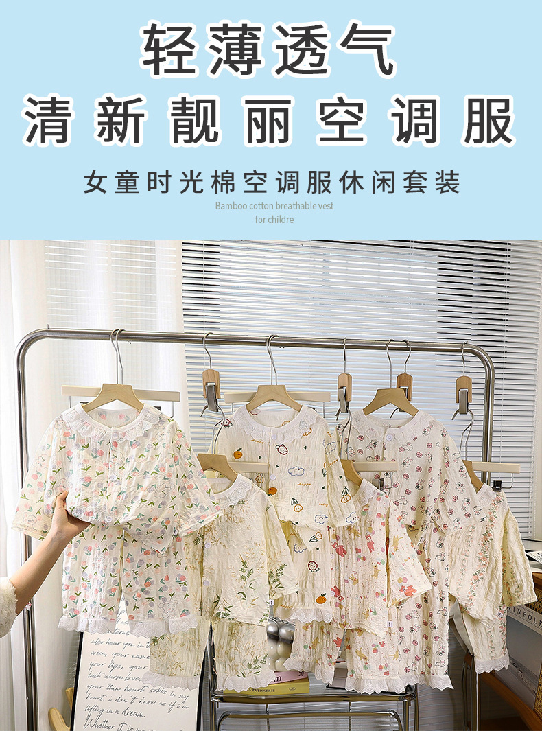 소녀 잠옷 어린이 봄과 가을 여름 긴 소매 얇은 집 옷 소녀의 아기 시간 면 한국식 에어컨 세트스토어 가기