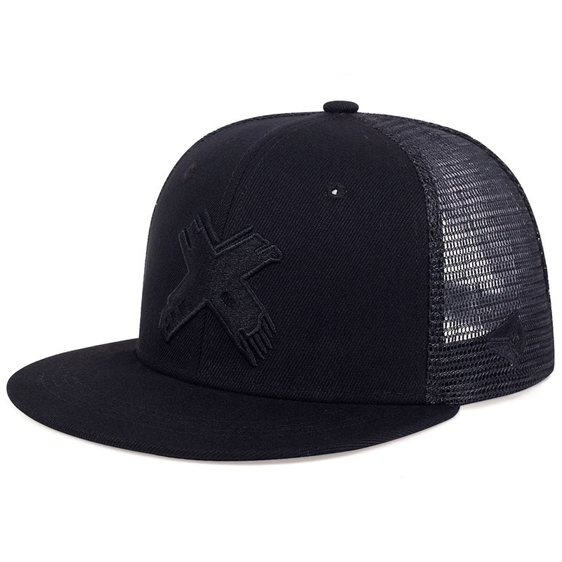• 블랙×플랫 챙 하프 메쉬 모자