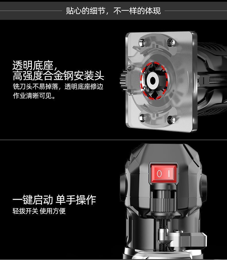 수입 트리밍 기계 목공 전기 트리밍 기계 전기 목재 밀링 다기능 조각 구멍 공 알루미늄-플라스틱 판 슬롯 머신스토어 가기