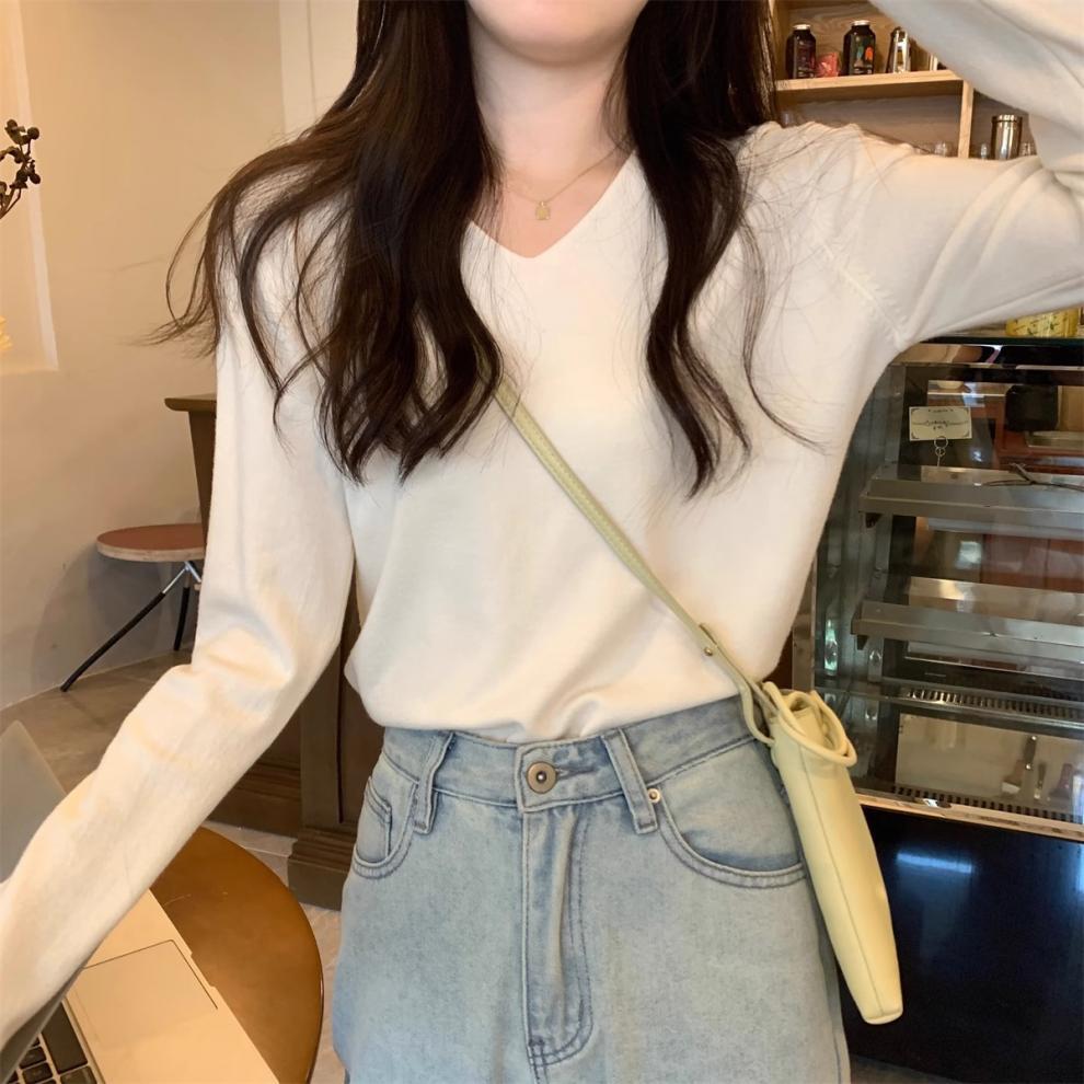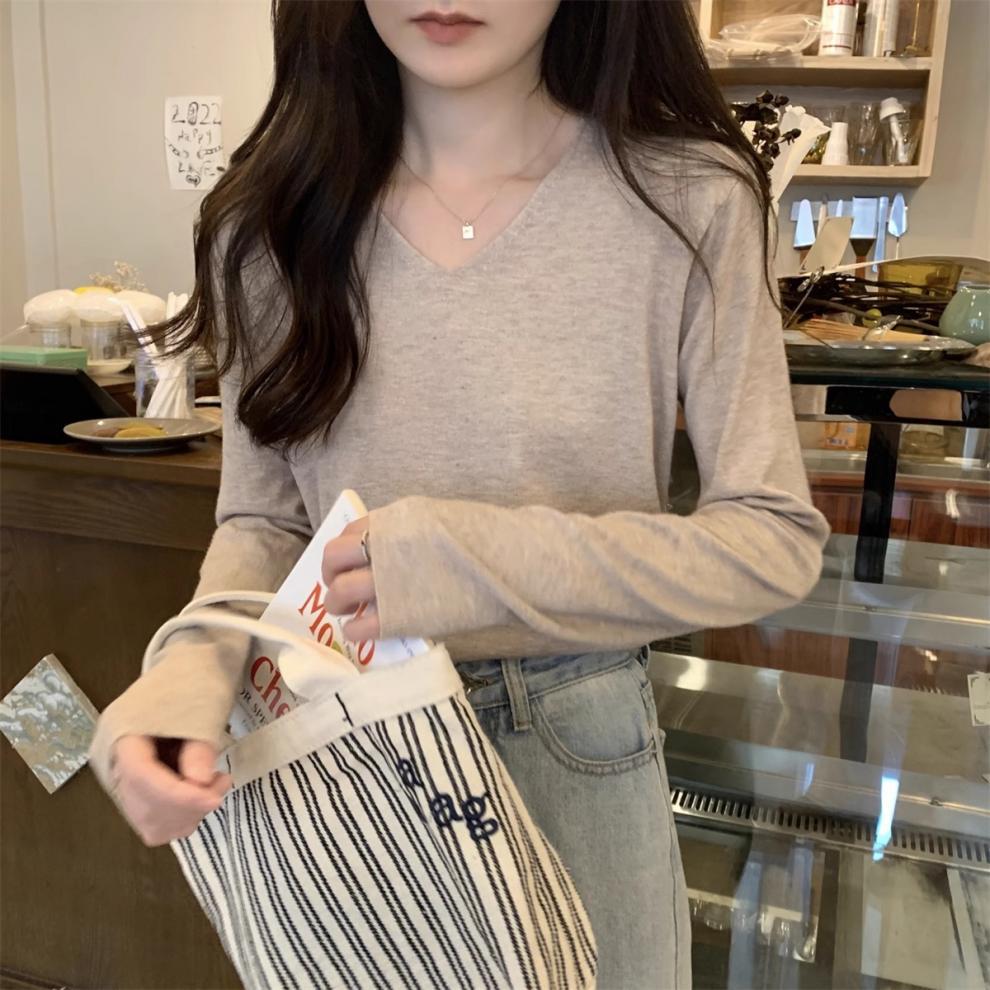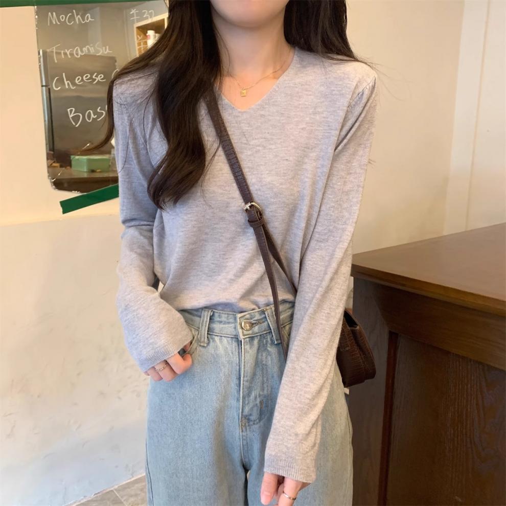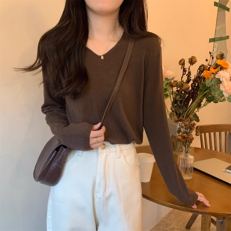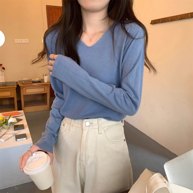 봄 가을과 겨울 2024 새로운 한국 긴 소매 V-넥 풀오버 내베이스 니트 여성용 느슨한 스웨터 탑