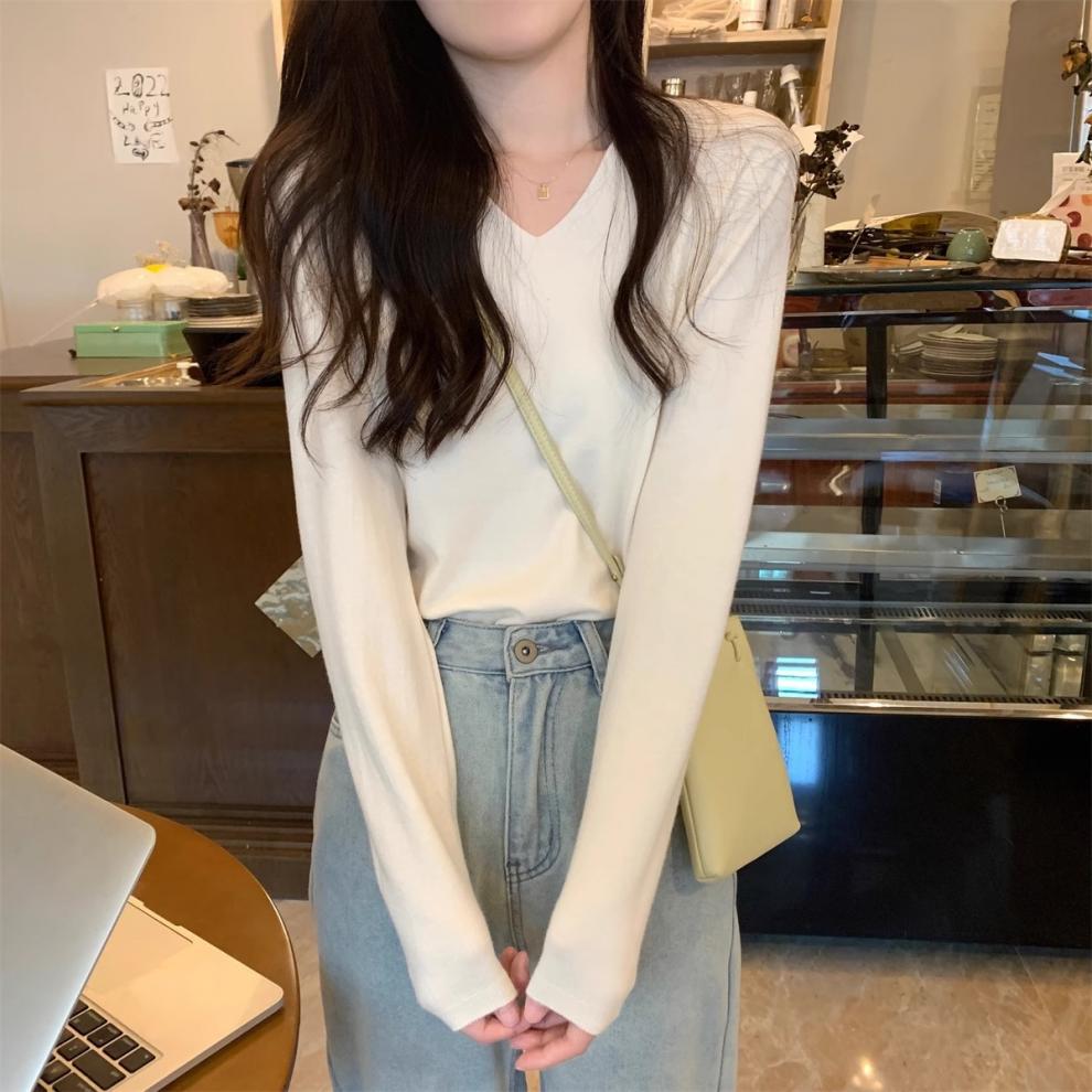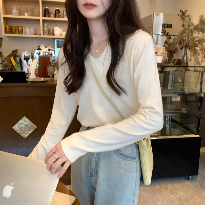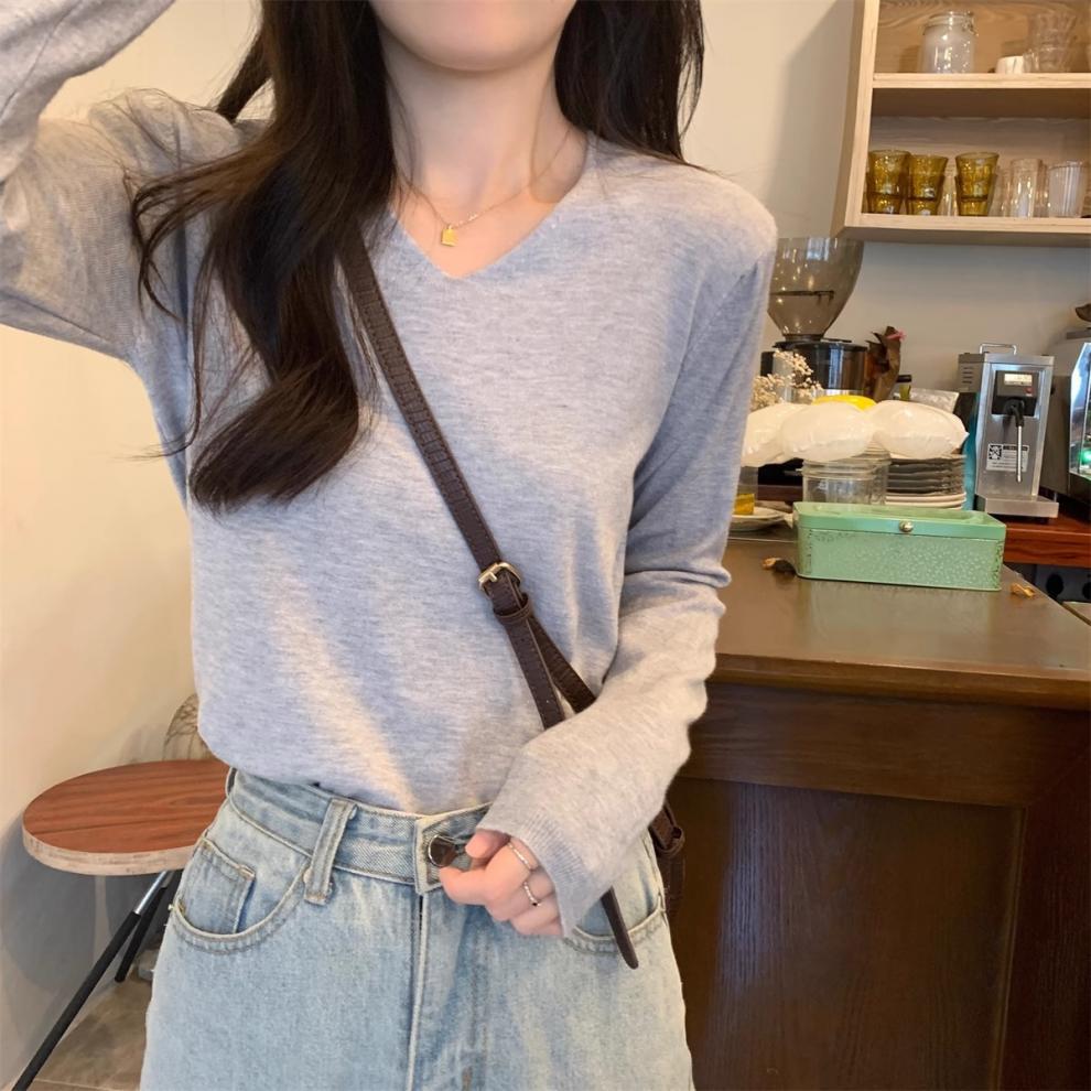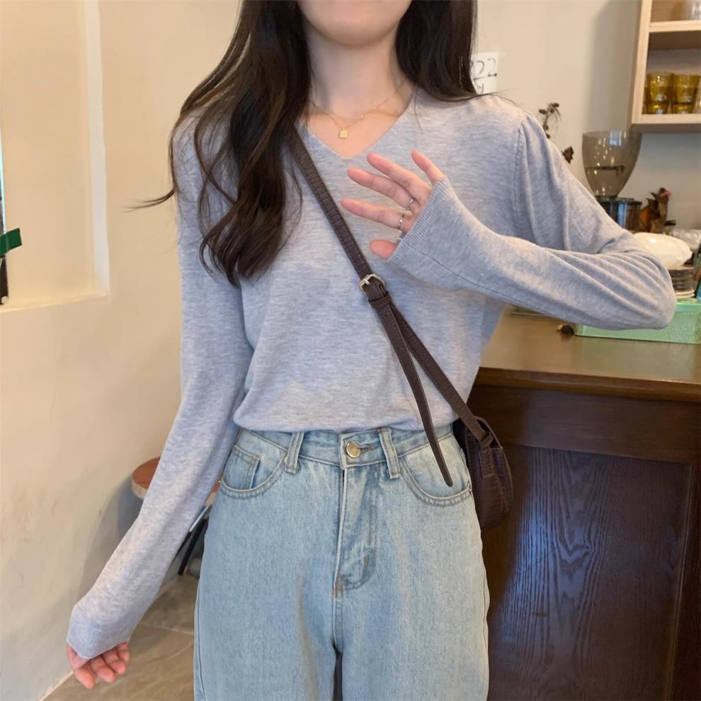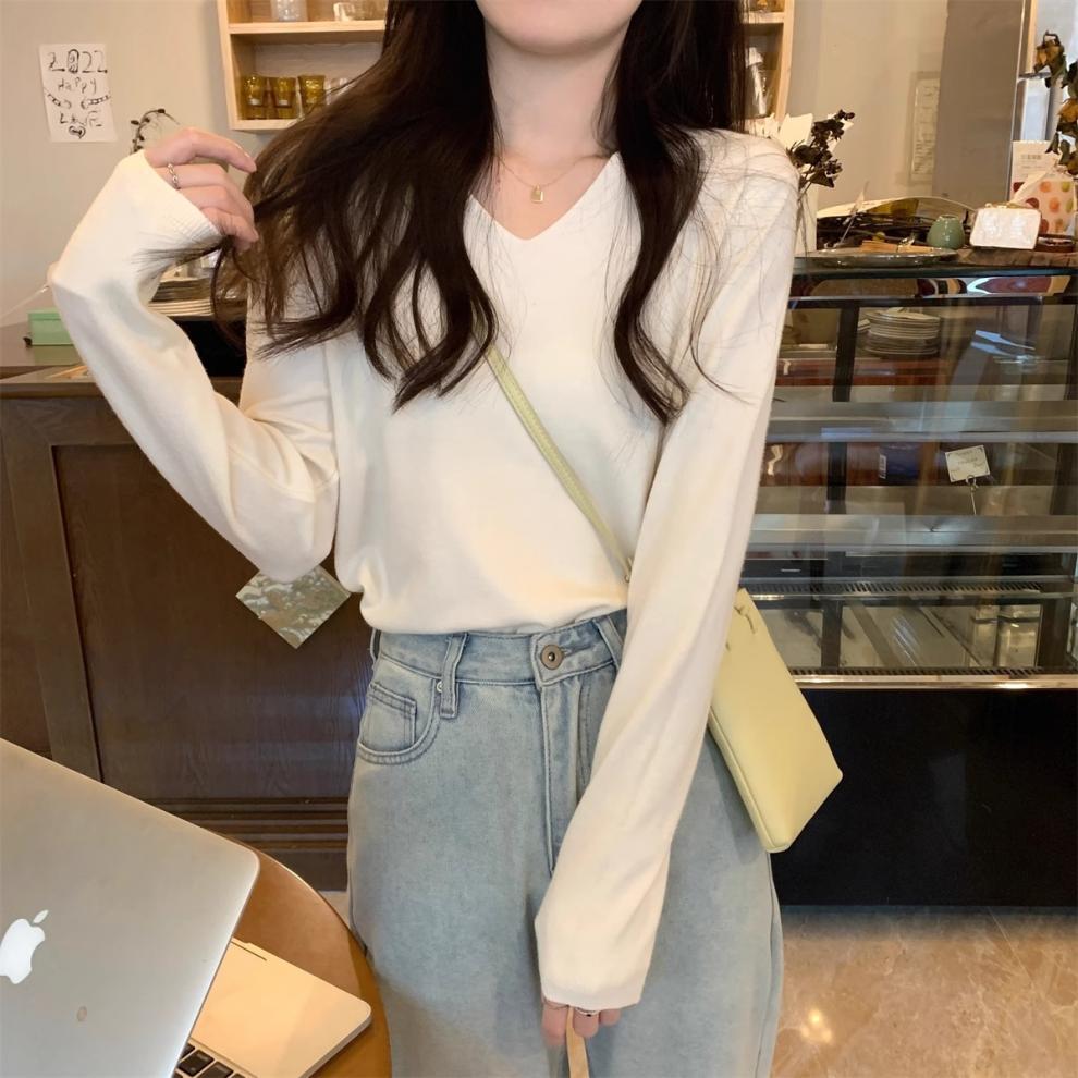 봄 가을과 겨울 2024 새로운 한국 긴 소매 V-넥 풀오버 내베이스 니트 여성용 느슨한 스웨터 탑