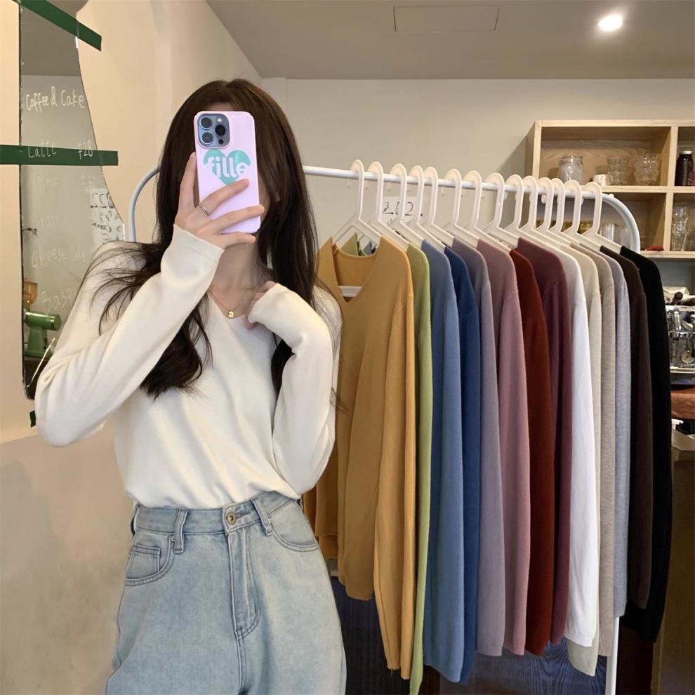 봄 가을과 겨울 2024 새로운 한국 긴 소매 V-넥 풀오버 내베이스 니트 여성용 느슨한 스웨터 탑스토어 가기