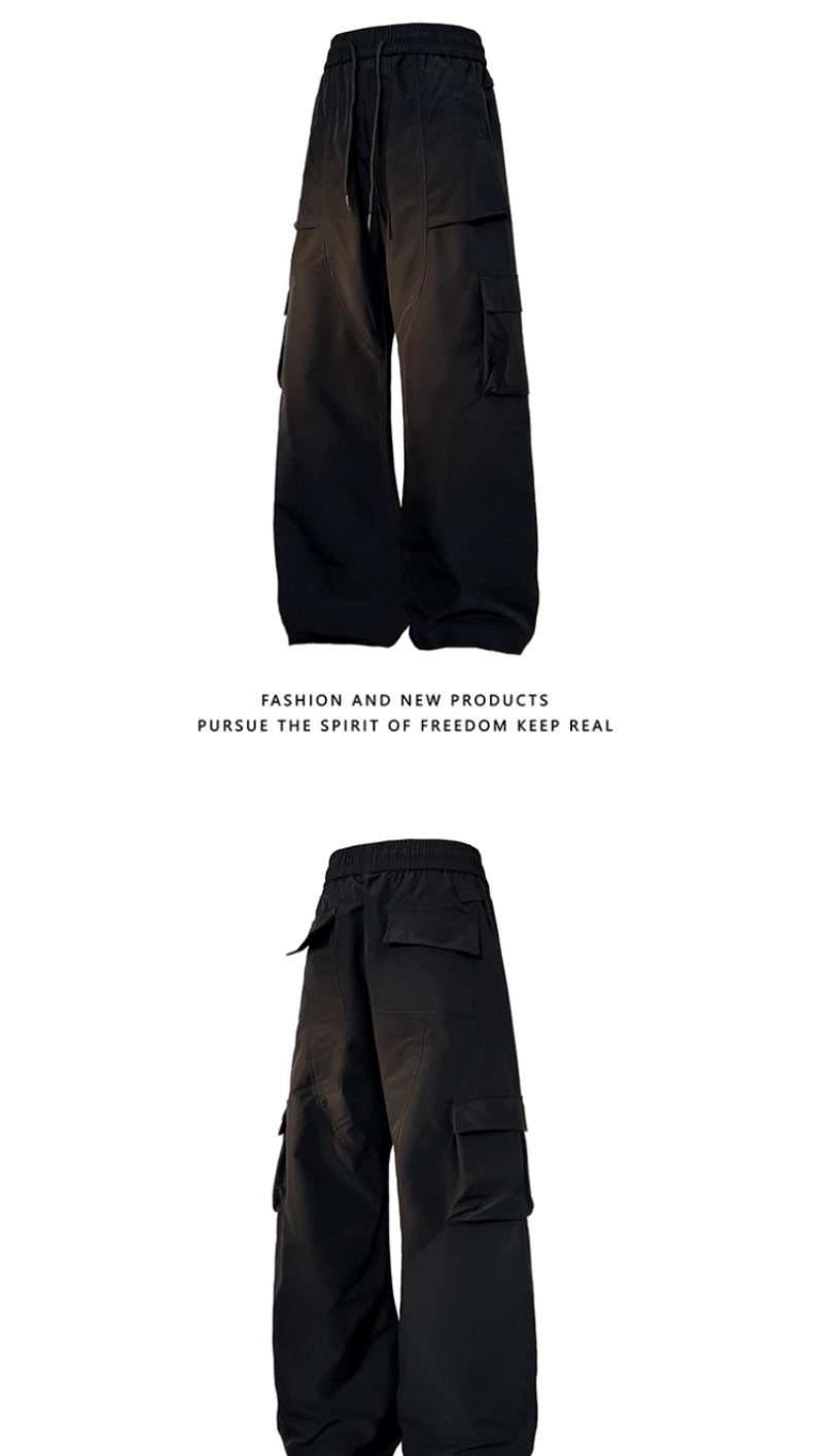 블랙 아메리칸 스타일 바지 남성 봄과 가을 스마트 스트레이트 캐주얼 바지 멀티 포켓 하이 허리 슬리밍 기능성 바지스토어 가기
