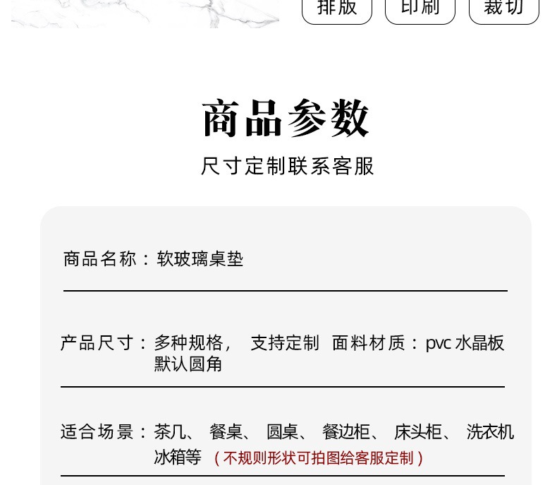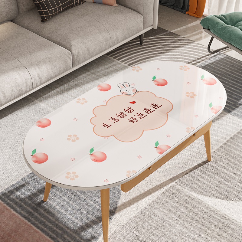 대리석 패턴 긴 타원형 커피 테이블 매트 세척없는 방수 오일 방지 모양의 부드러운 유리 식탁보 라운드 테이블 매트