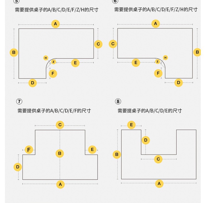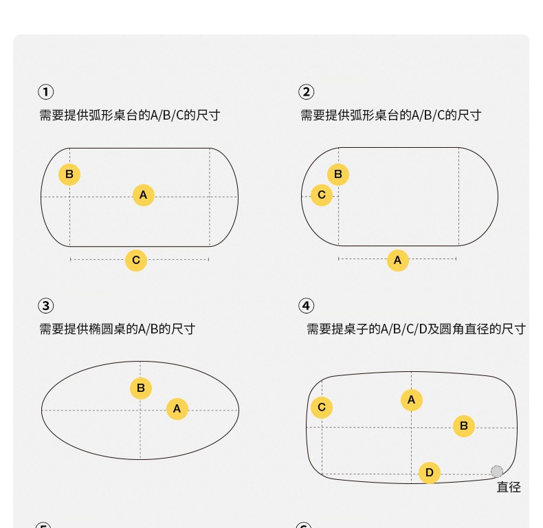• 테이블이 호 모양인 경우 사진을 찍어 고객 서비스에 보내주세요.