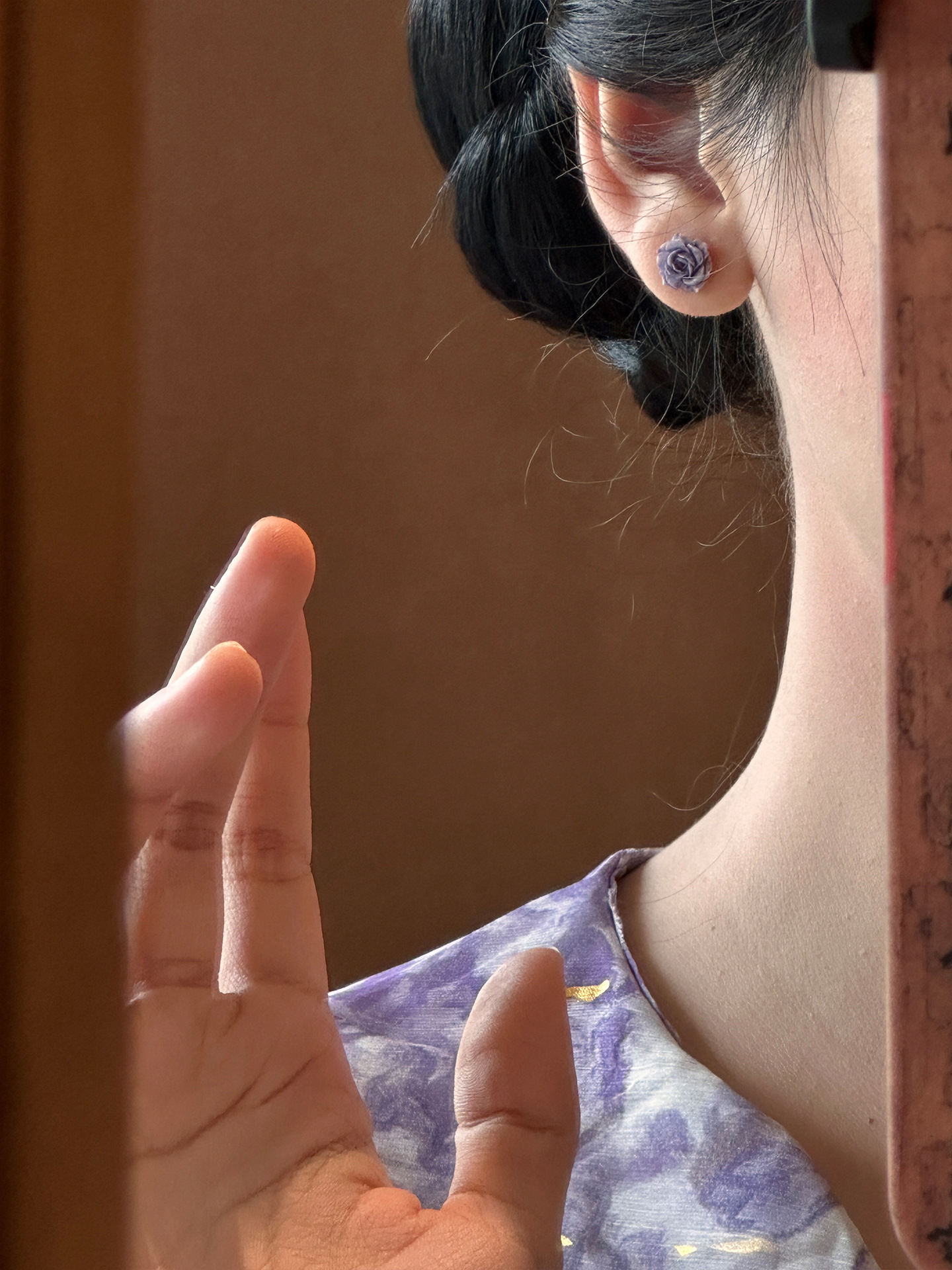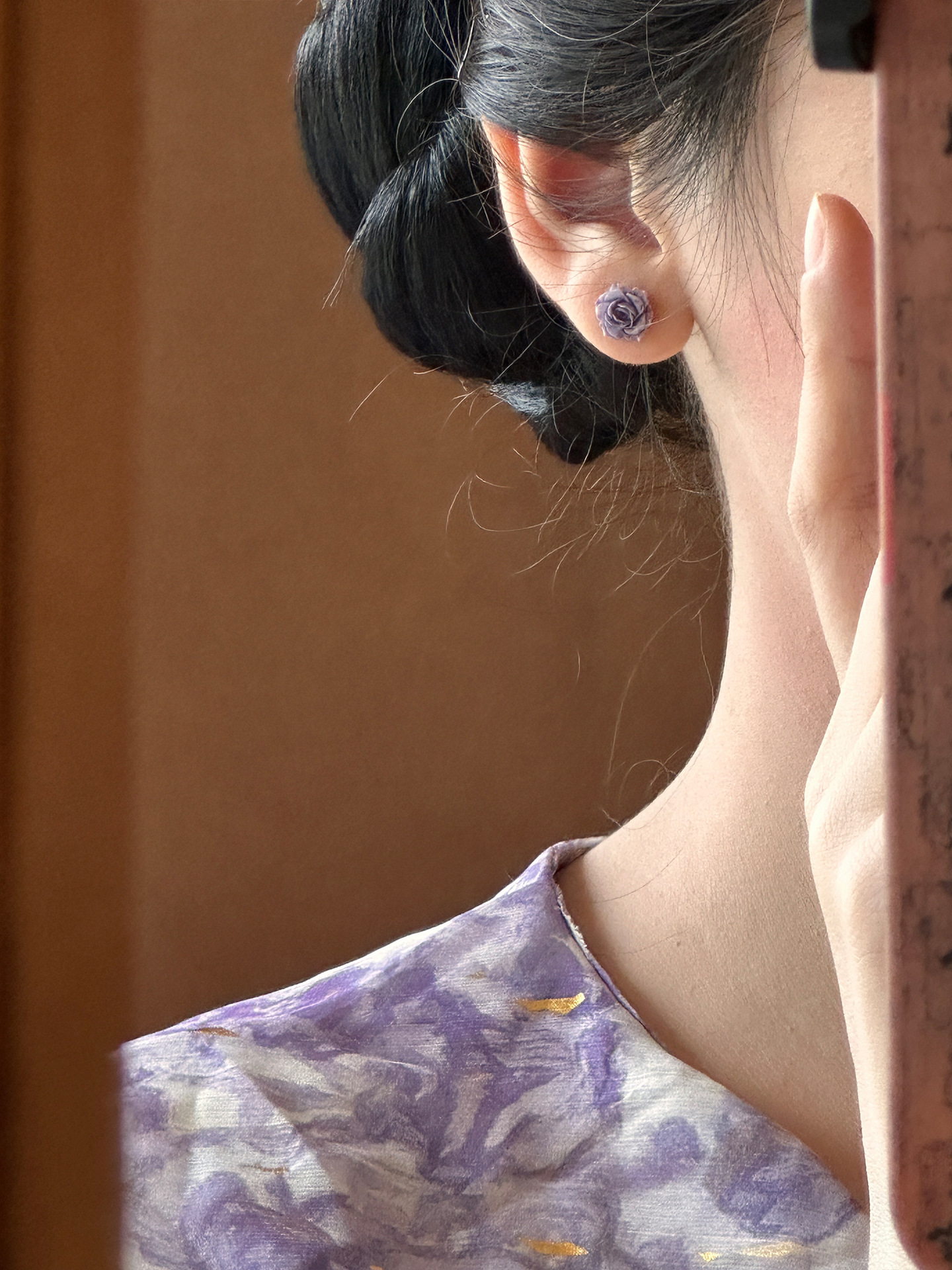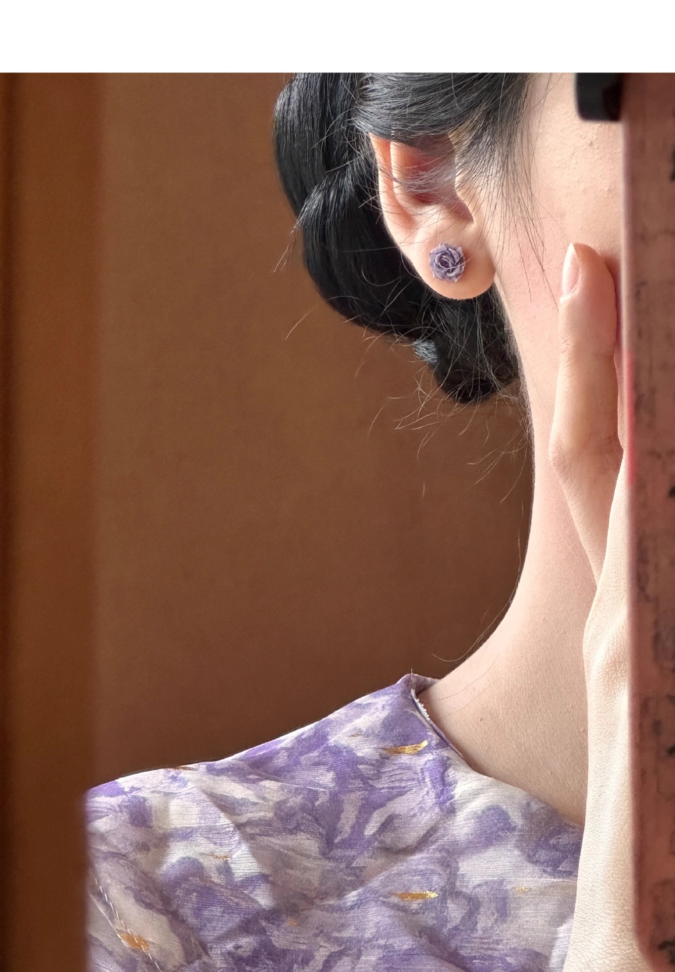 보라색 장미 꽃 귀걸이 간단한 조커 작은 기질 높은 감각 귀걸이 2024 새로운 폭발 가을과 겨울