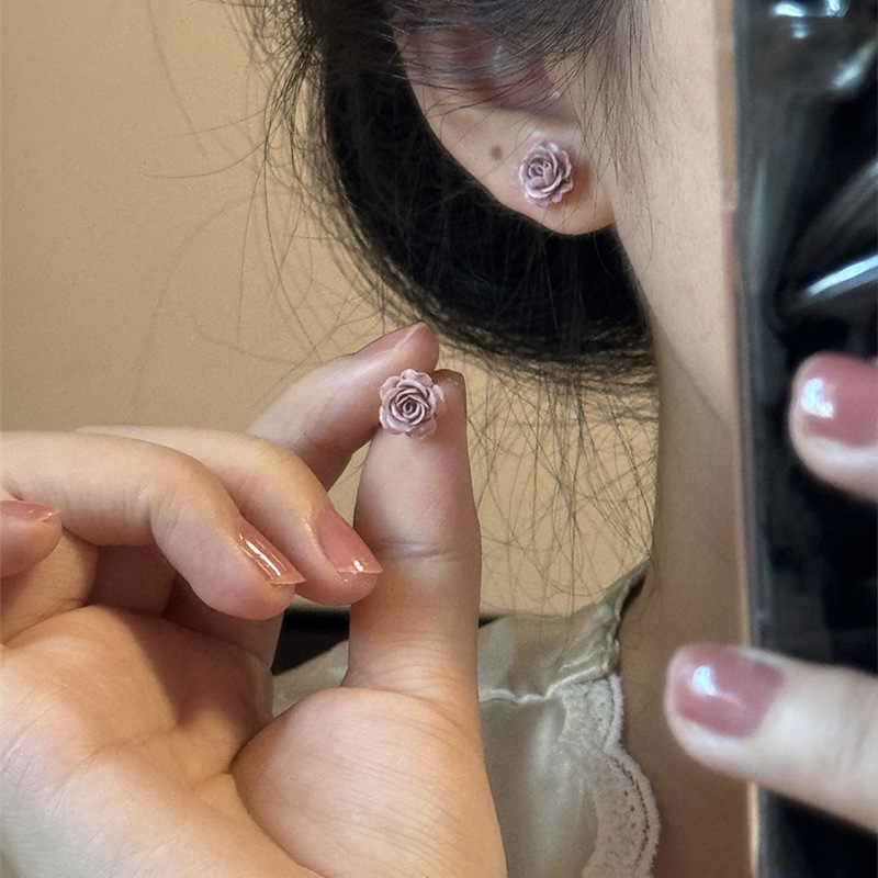 보라색 장미 꽃 귀걸이 간단한 조커 작은 기질 높은 감각 귀걸이 2024 새로운 폭발 가을과 겨울스토어 가기