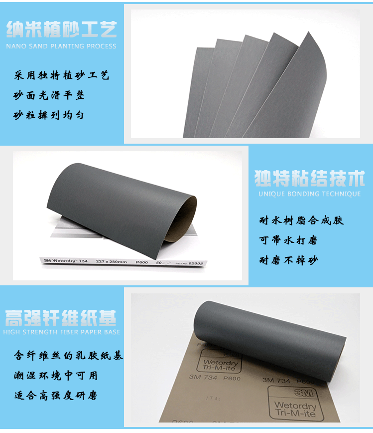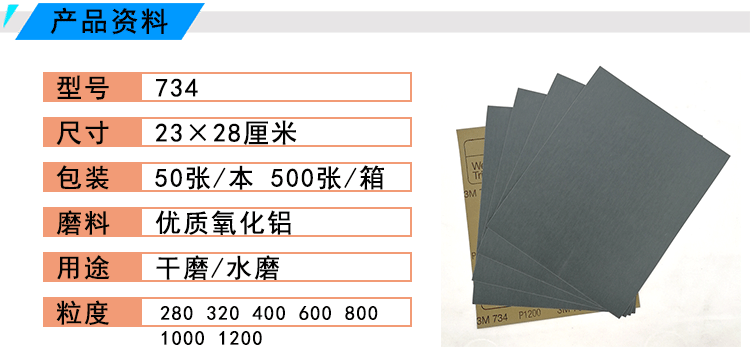 使用说明: 该水砂纸切削效果好,表面留下砂痕比较均匀,且使用寿命长。