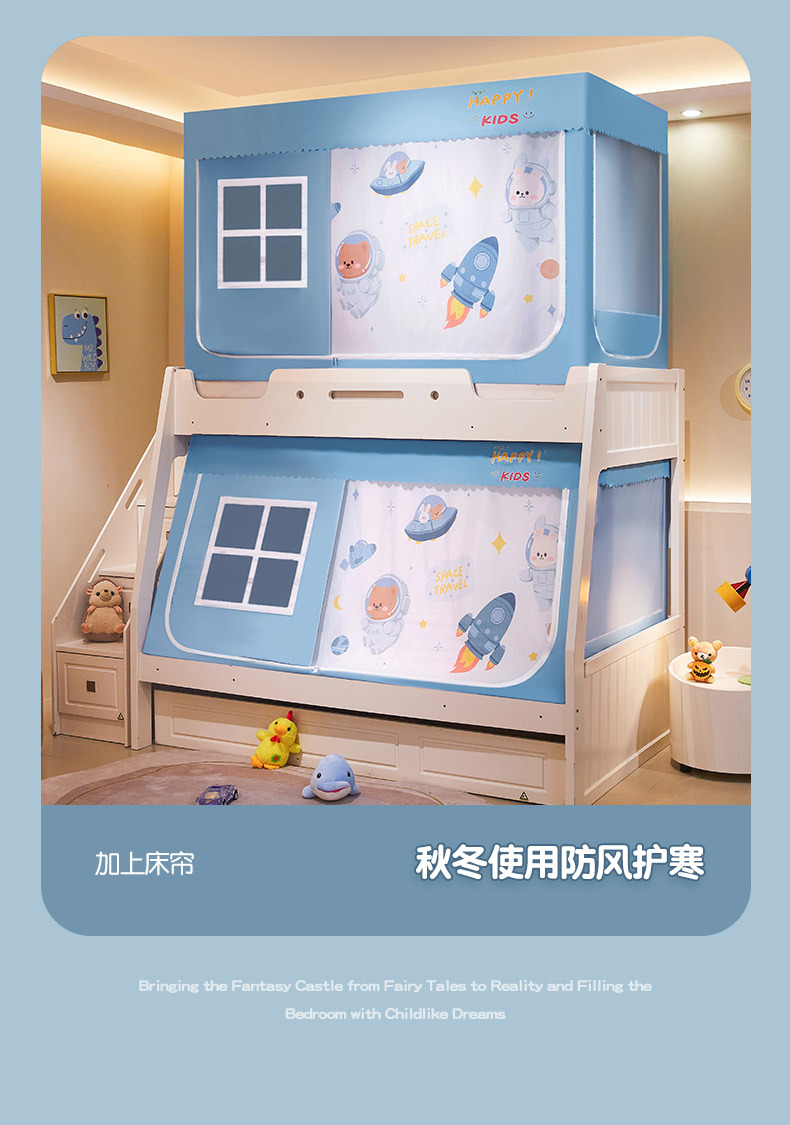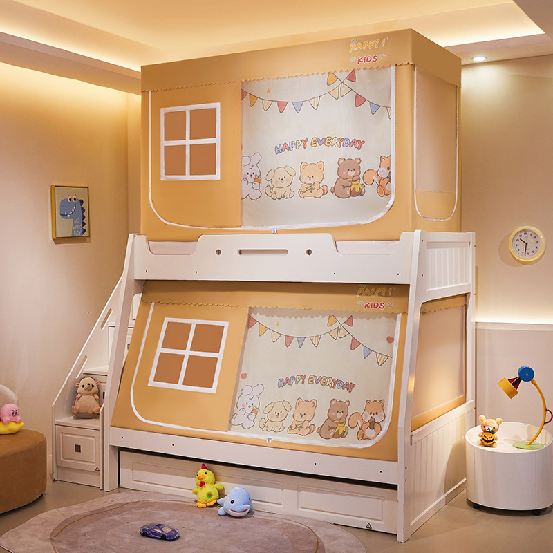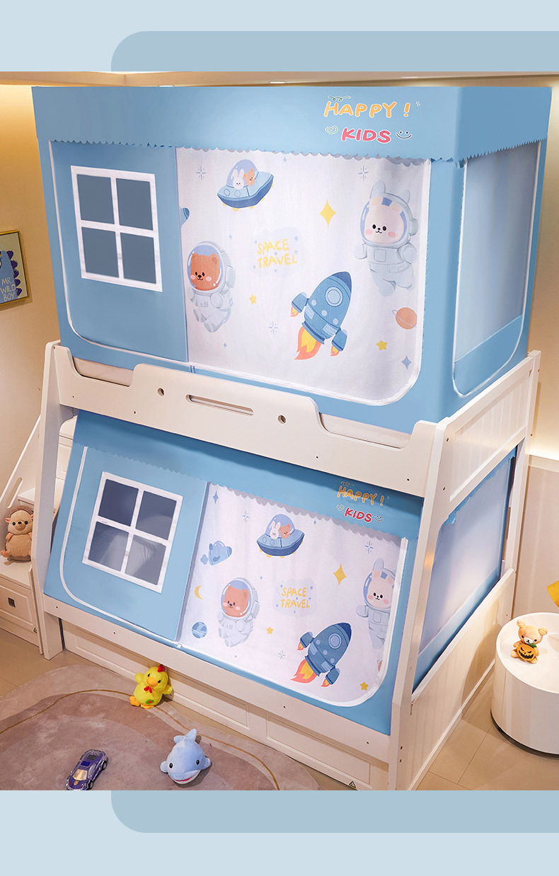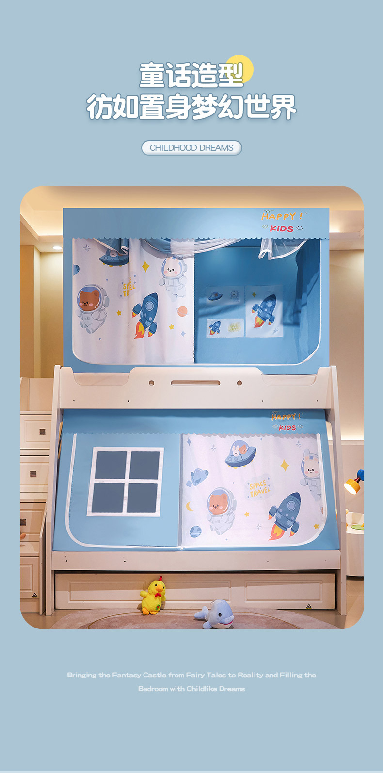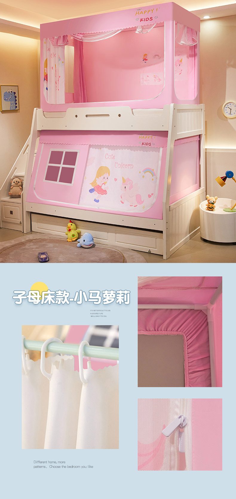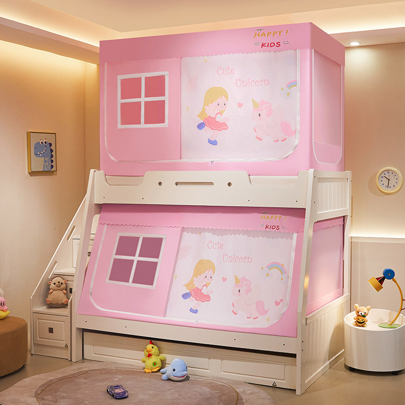 모기장이있는 창문 침대가있는 A 급 만화 어머니-어린이 침대 강화 침대 떨어지는 음영 방지 침대 커튼 가구 어린이 소년 소녀