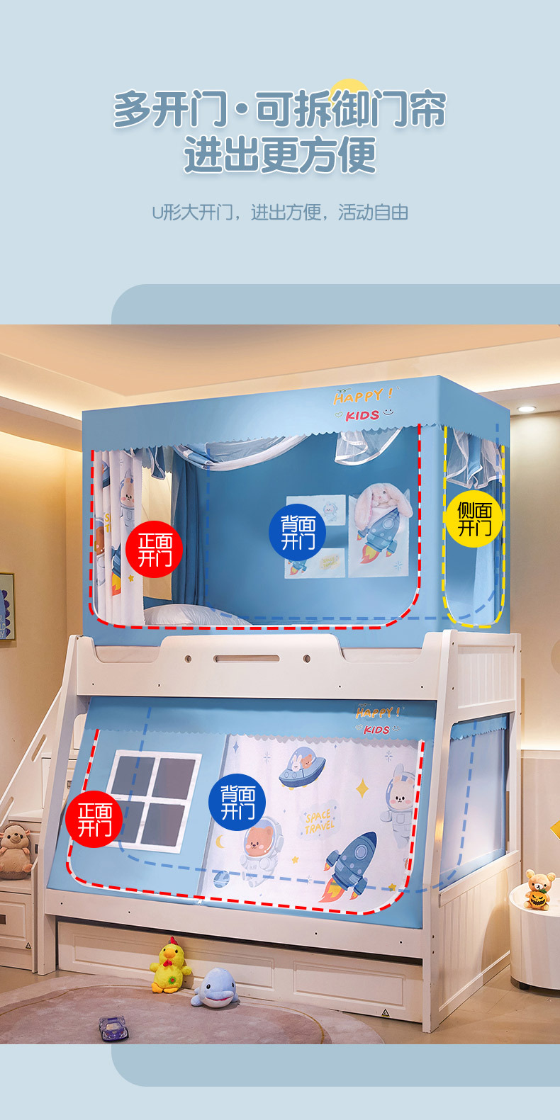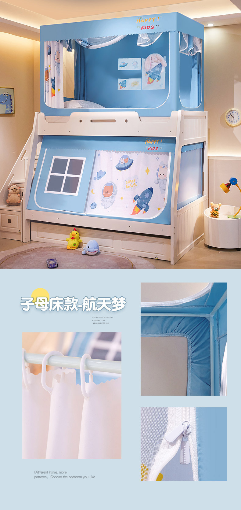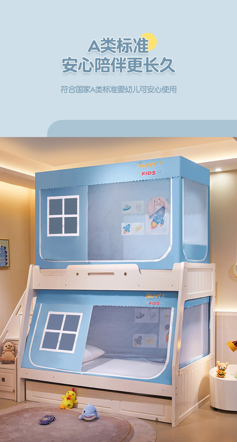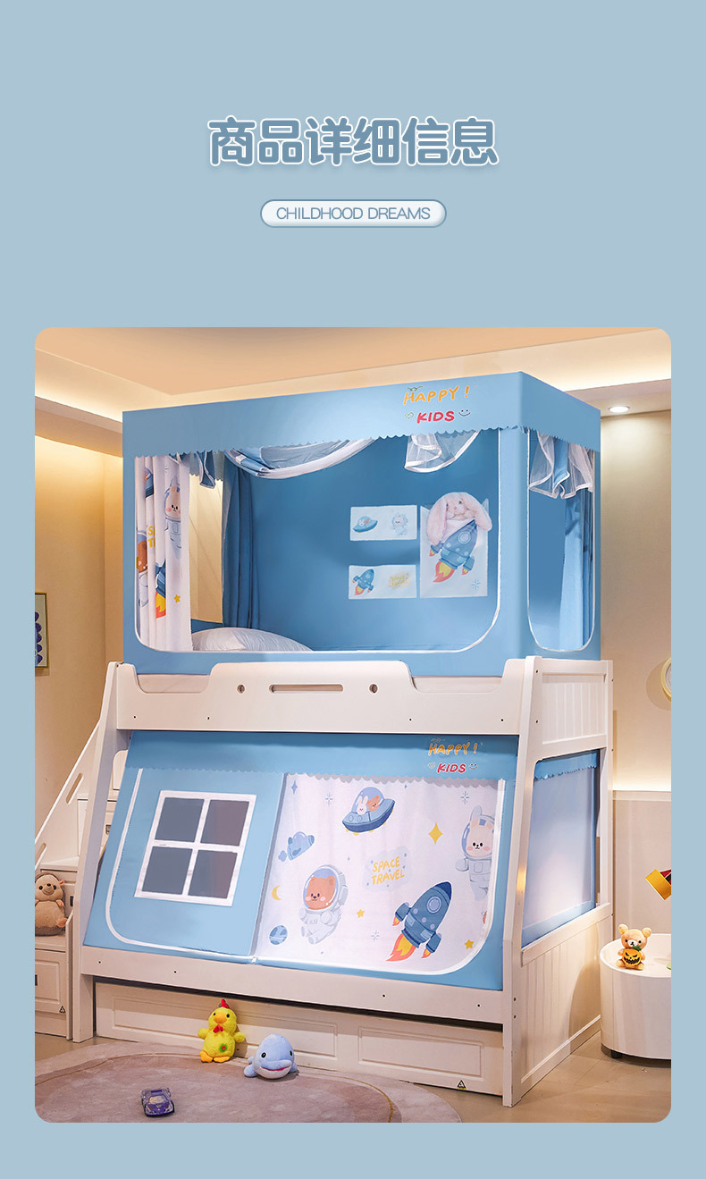 모기장이있는 창문 침대가있는 A 급 만화 어머니-어린이 침대 강화 침대 떨어지는 음영 방지 침대 커튼 가구 어린이 소년 소녀스토어 가기