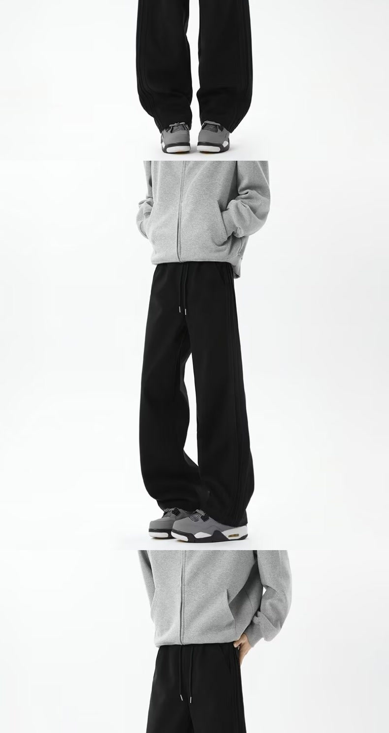 아메리칸 스타일 레트로 다크 브라운 스트레이트 바지 남자 가을과 겨울 느슨한 넓은 다리 스포츠 긴 바지 스타 스타일 캐주얼 스웨트 바지스토어 가기