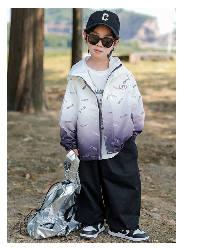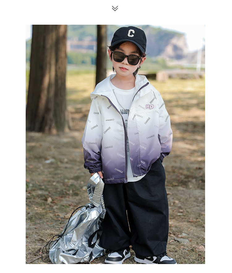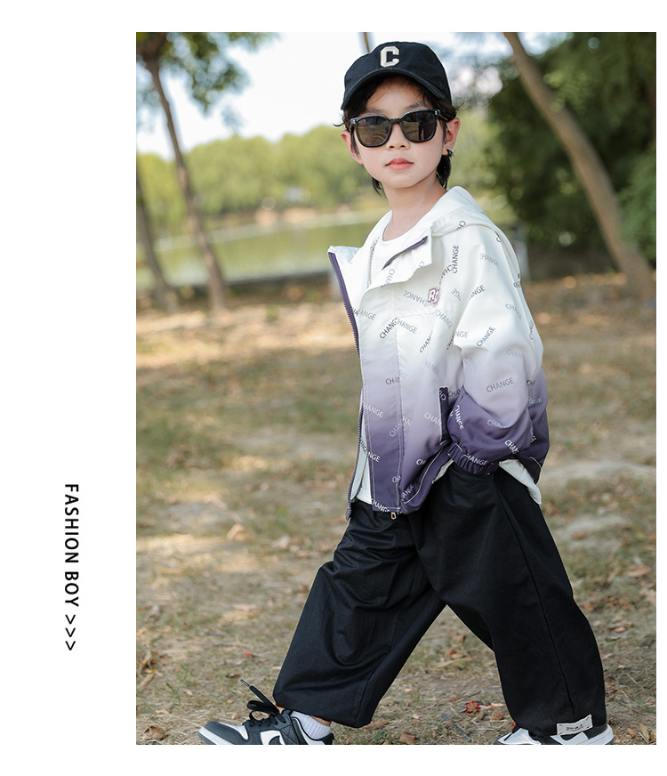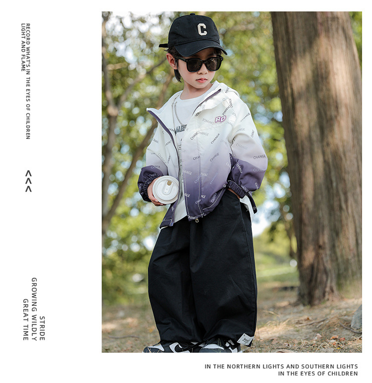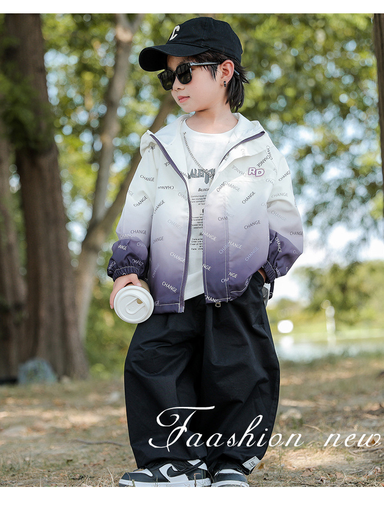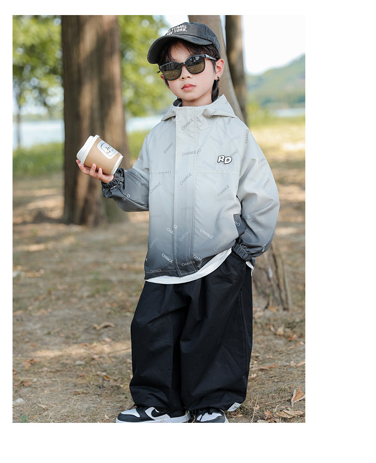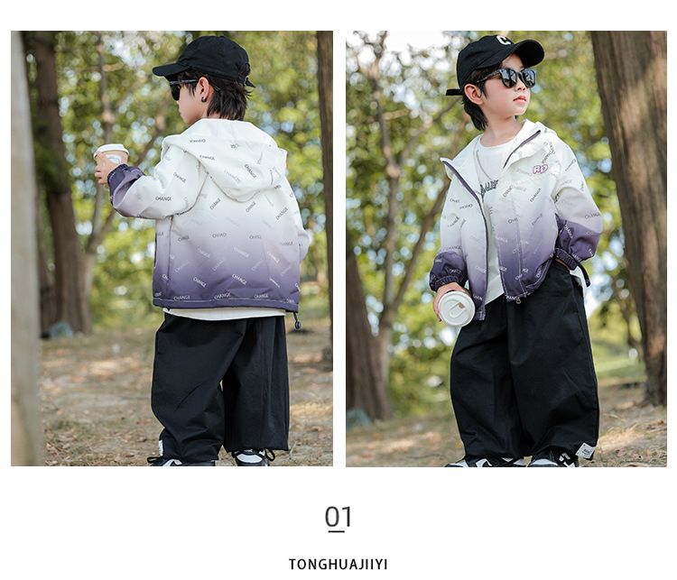 소년 봄 코트 2025 봄과 가을 새로운 유행 잘 생긴 어린이 한국 스타일 루소 아기의 후드 그라디언트 재킷스토어 가기