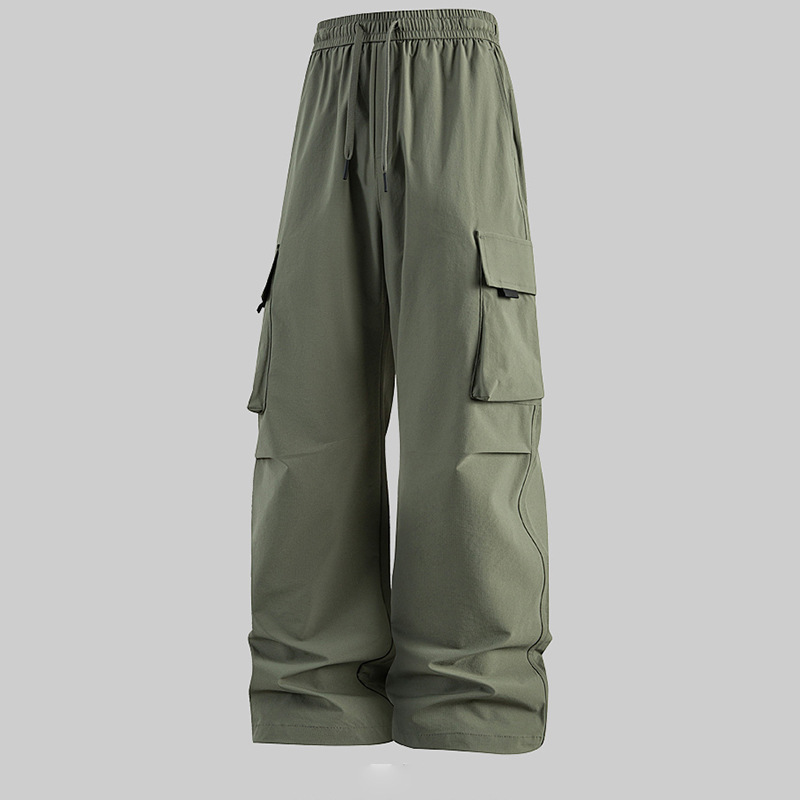 대형 포켓 방수 충전 바지 높은 허리 슬리밍 남자와 여자의 새로운 오버올 매치 느슨한 커플 넓은 다리 바지 바지 바지