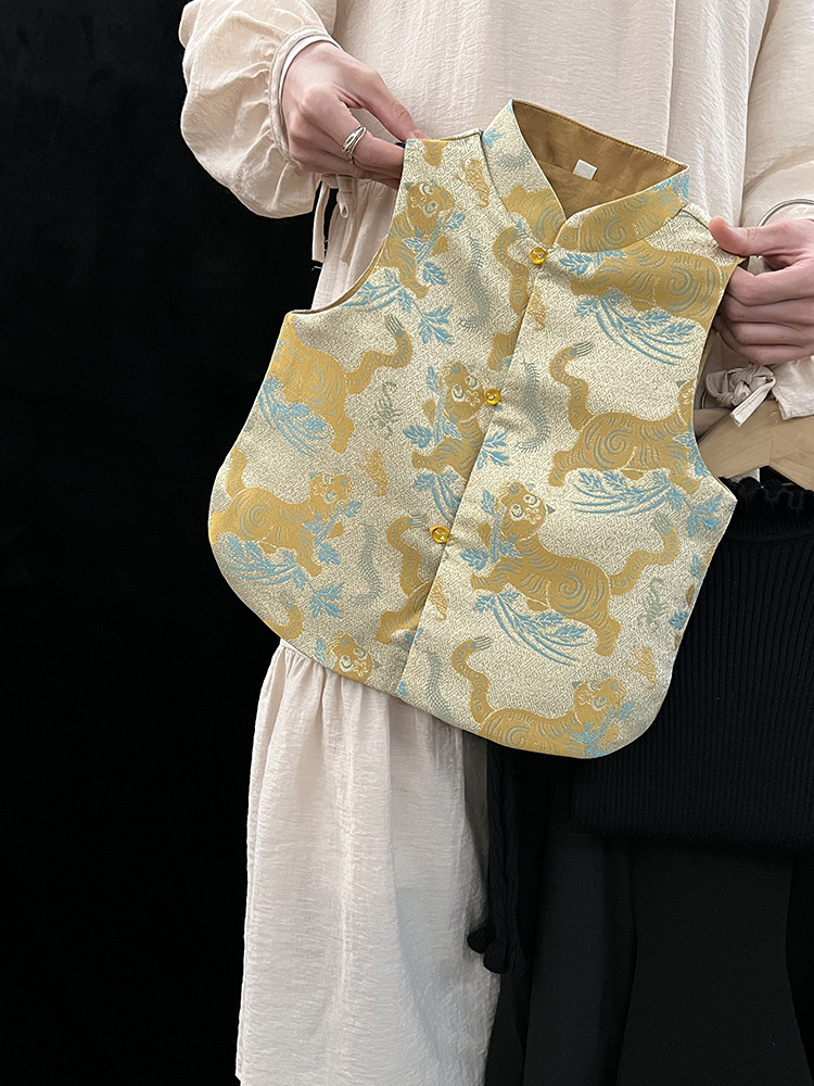 봄과 가을 새로운 어린이 새로운 중국 조끼 소년과 소녀 Guofeng 하이 엔드 자수 수직 칼라 얇은 조끼스토어 가기