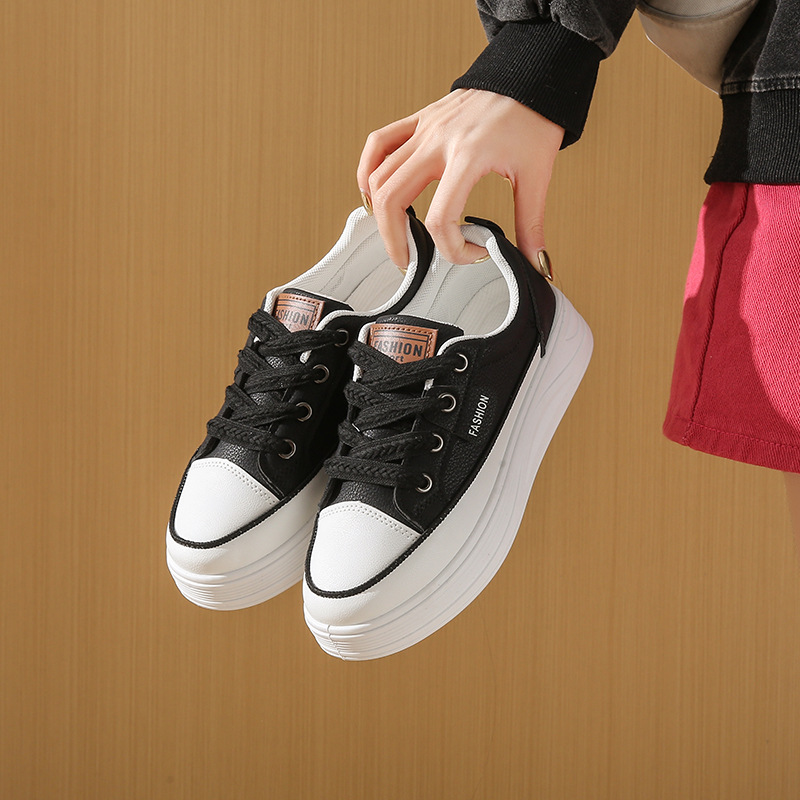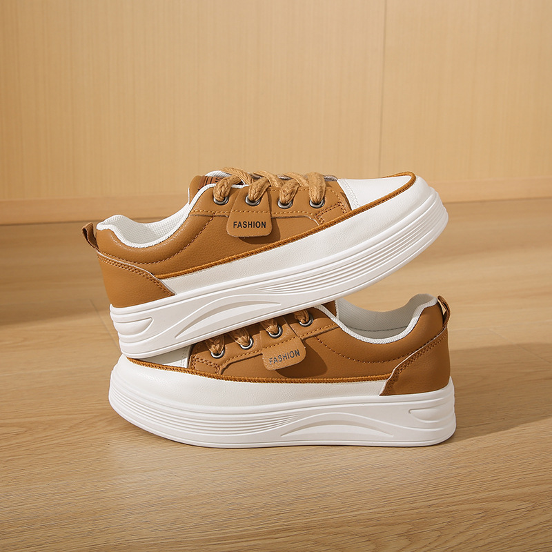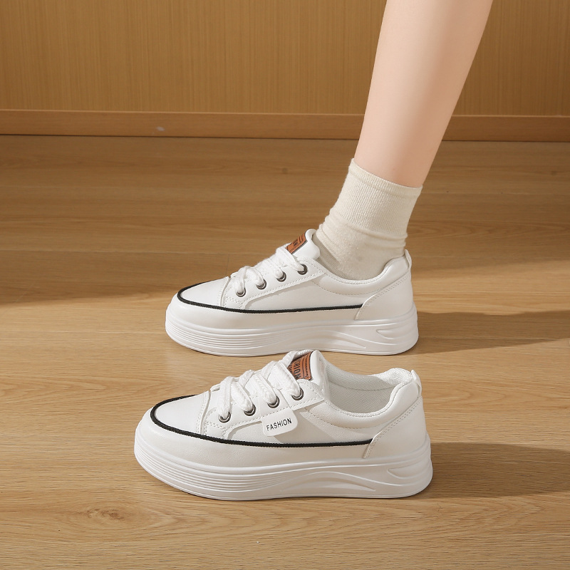 가을 2025 년 새 흰색 신발 여성 Ins 트렌디 한 한국 스타일 세련된 올 매치 스포츠 보드 신발 두꺼운 단독 높이 증가 캐주얼스토어 가기