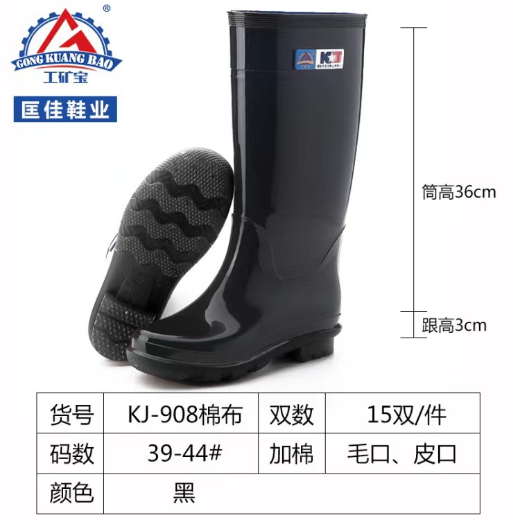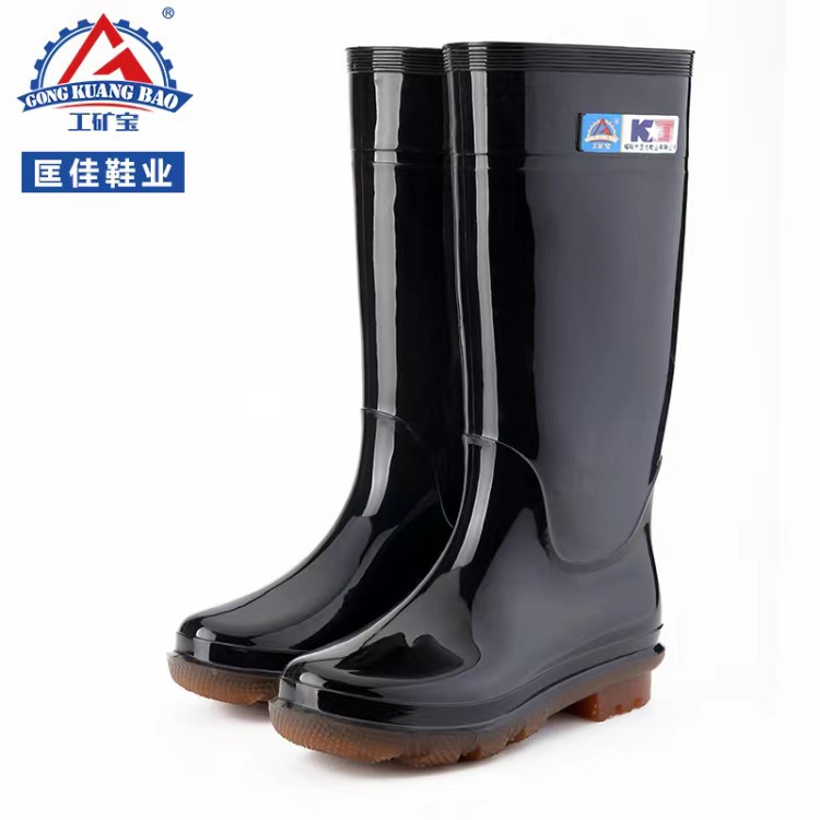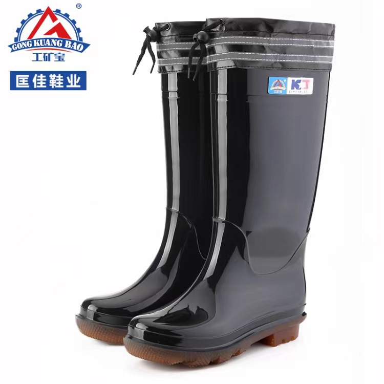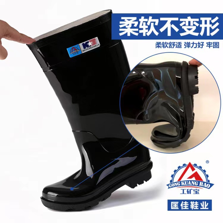 Kuangjia 신발 산업 광업 보물 908 남성 하이 튜브 비 신발 미끄럼 방지 고무 신발 방수 노동 보호 비 신발 도매