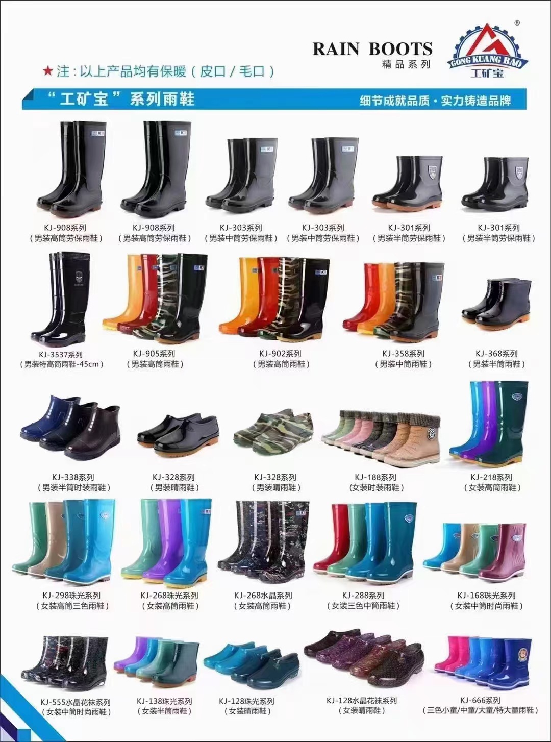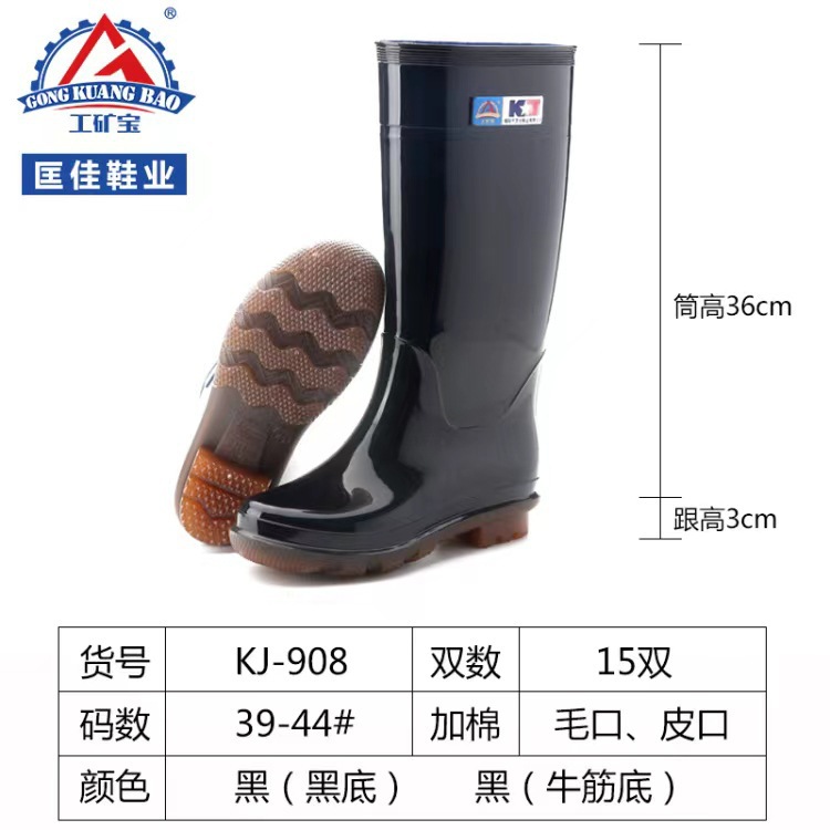 工矿宝908男高筒黑色(牛筋底)(黑底)雨鞋。