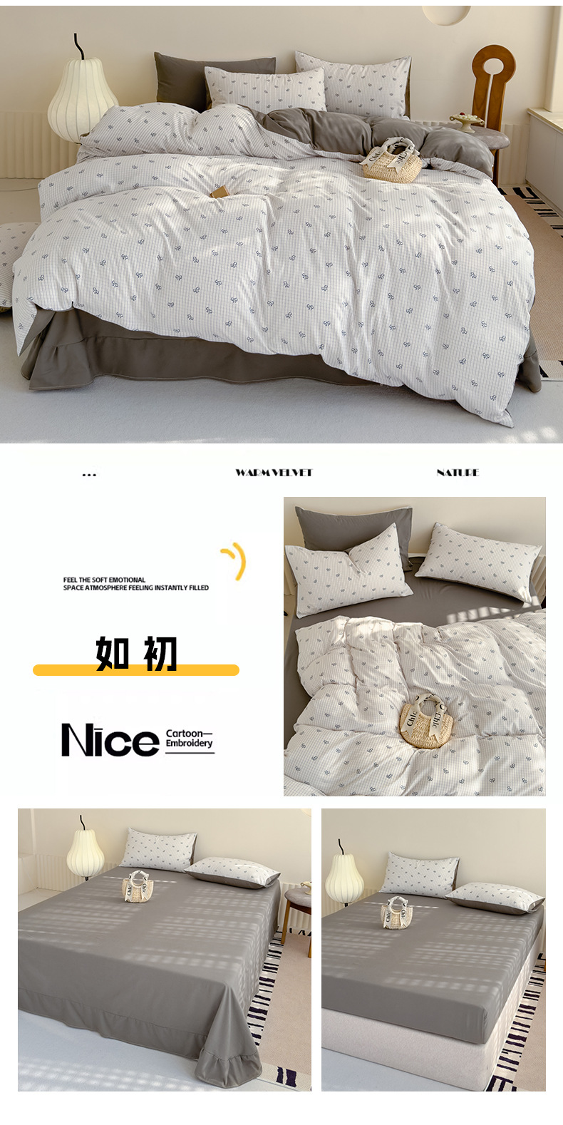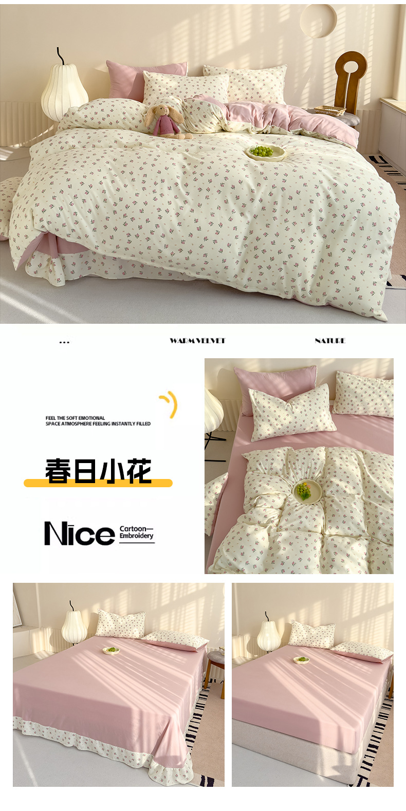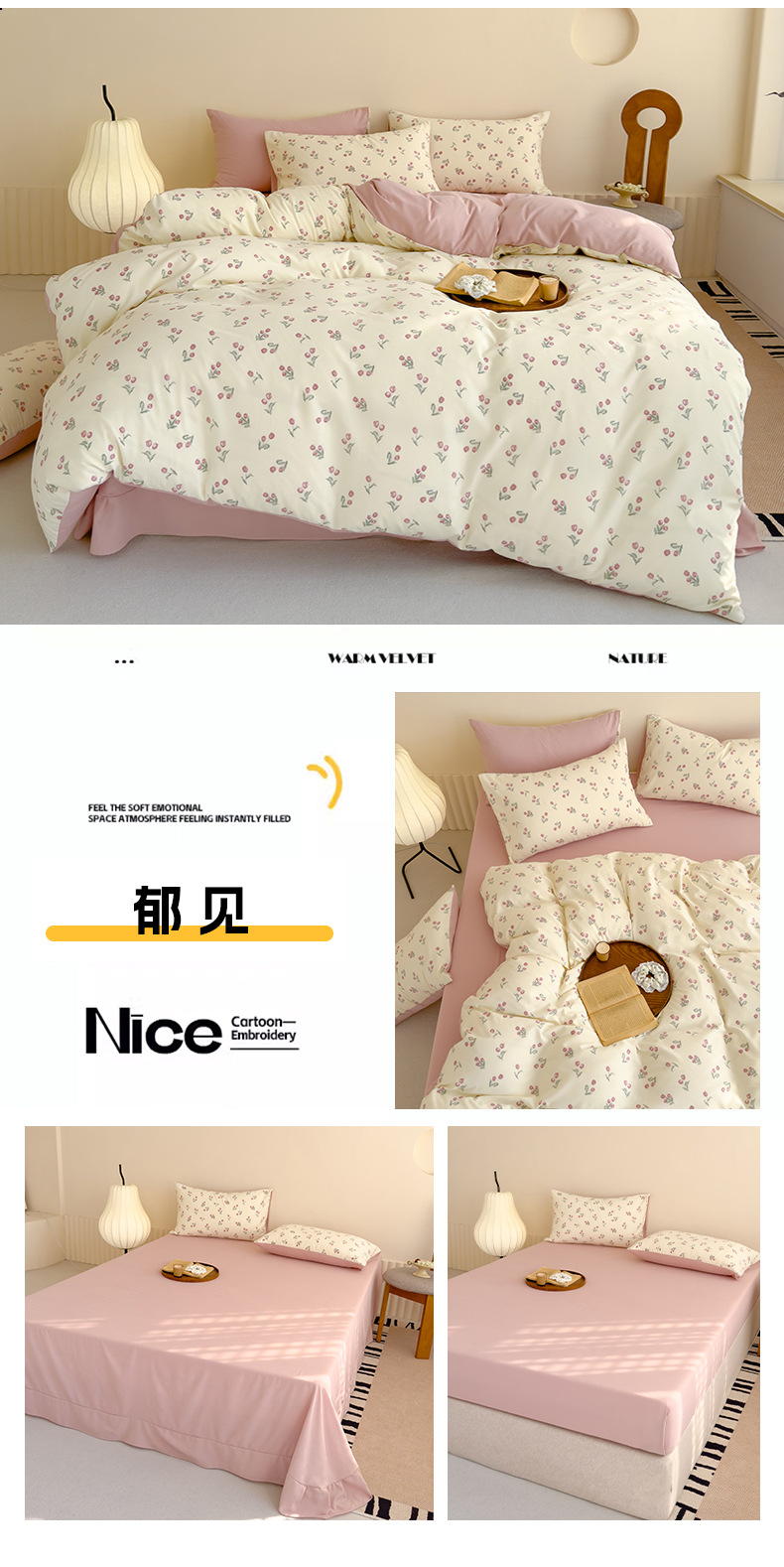 클래스 모성 및 유아 에어로빅 니트 코튼 4 피스 세트 귀여운 작은 꽃 학생 기숙사 3 피스 세트 작은 신선한 이불 커버