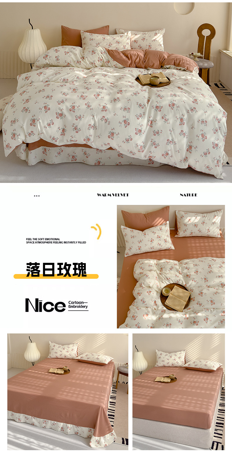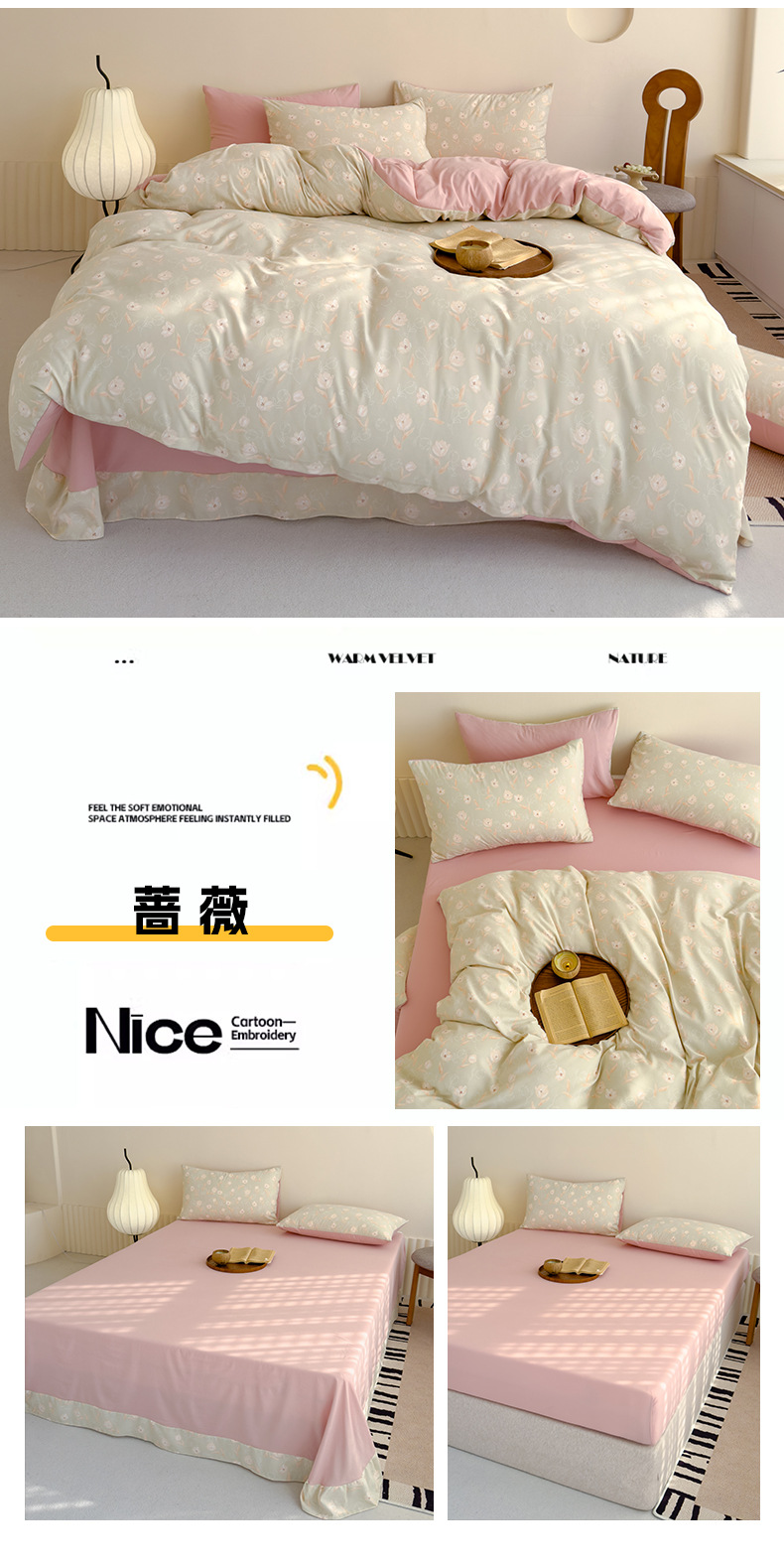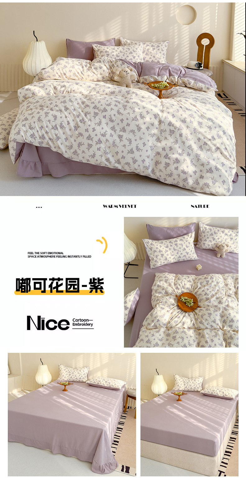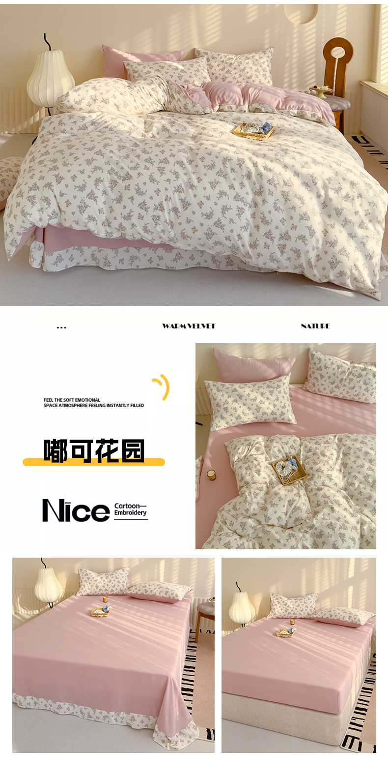 클래스 모성 및 유아 에어로빅 니트 코튼 4 피스 세트 귀여운 작은 꽃 학생 기숙사 3 피스 세트 작은 신선한 이불 커버