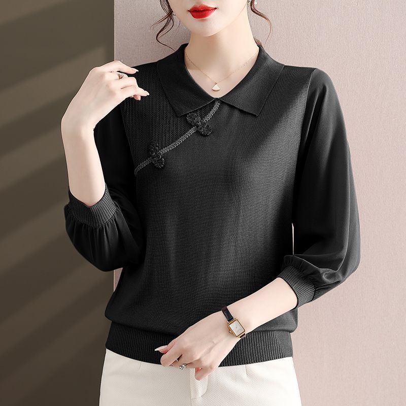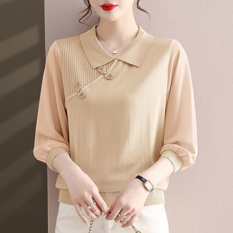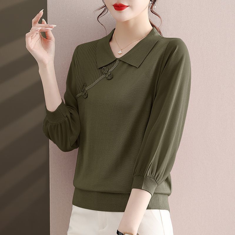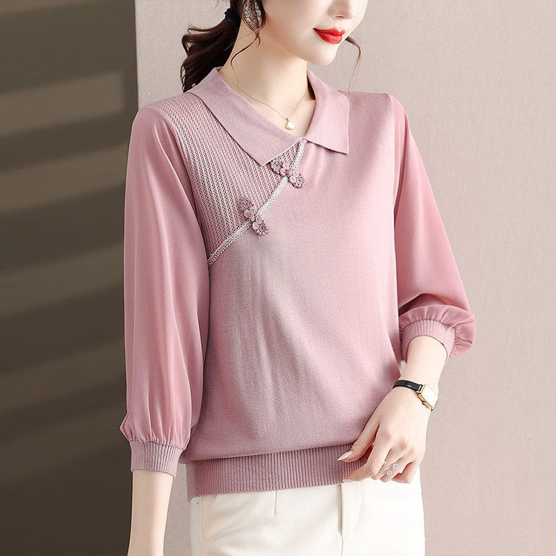 레이저 세븐 포인트 슬리브 아이스 실크 니트웨어 2025 새로운 스타일 기질 젊은 어머니 봄 느슨한 셔츠 여성