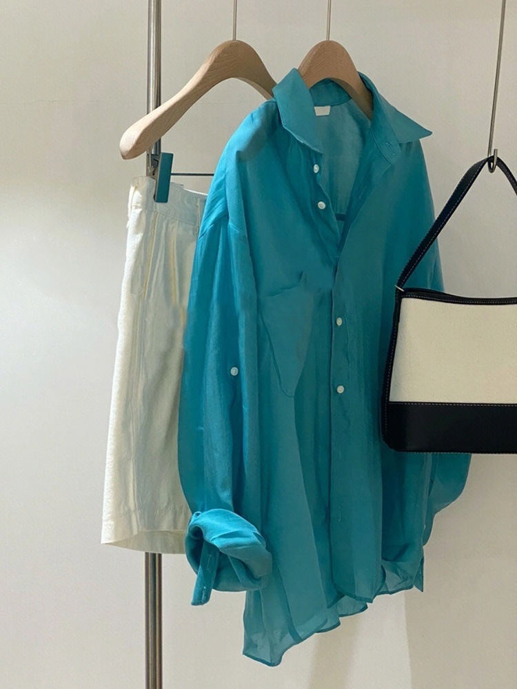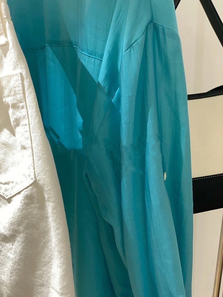 텐셀 프렌치 심플 하이 엔드 블루 우아한 셔츠 여자 프렌치 레트로 루즈 캐주얼 올 매치 탑