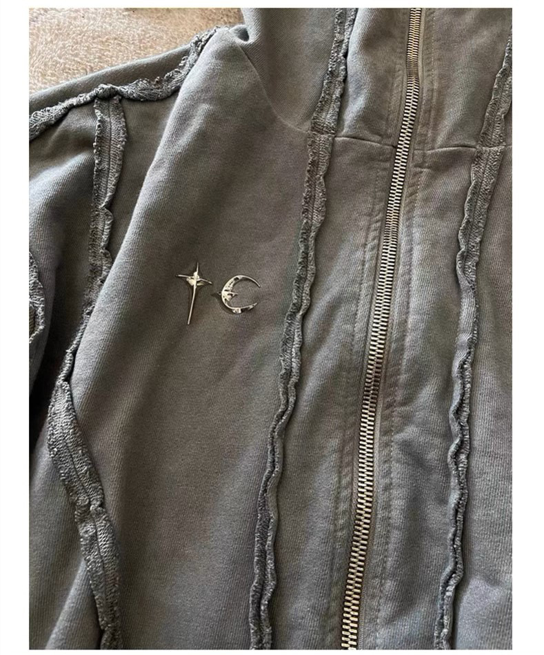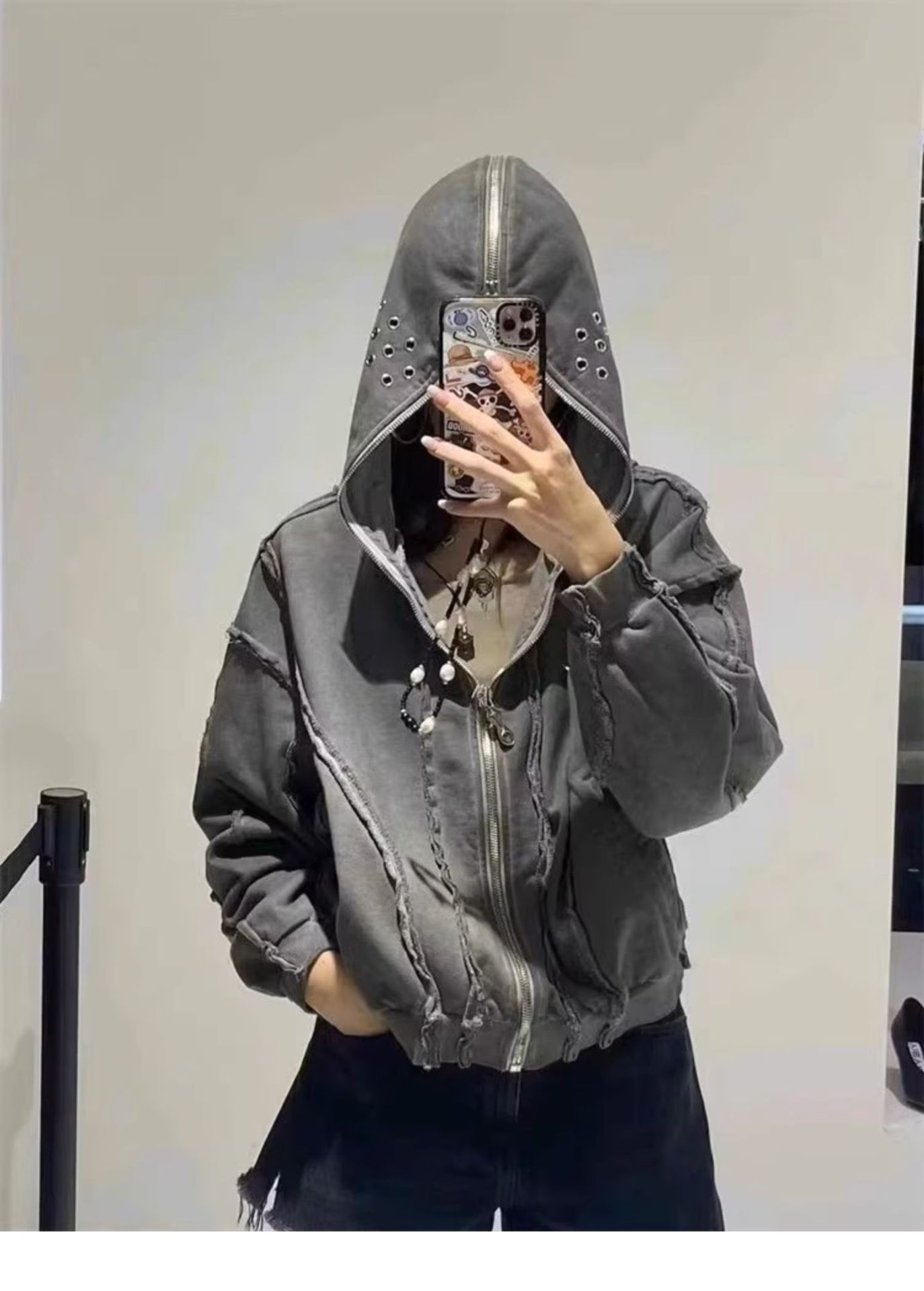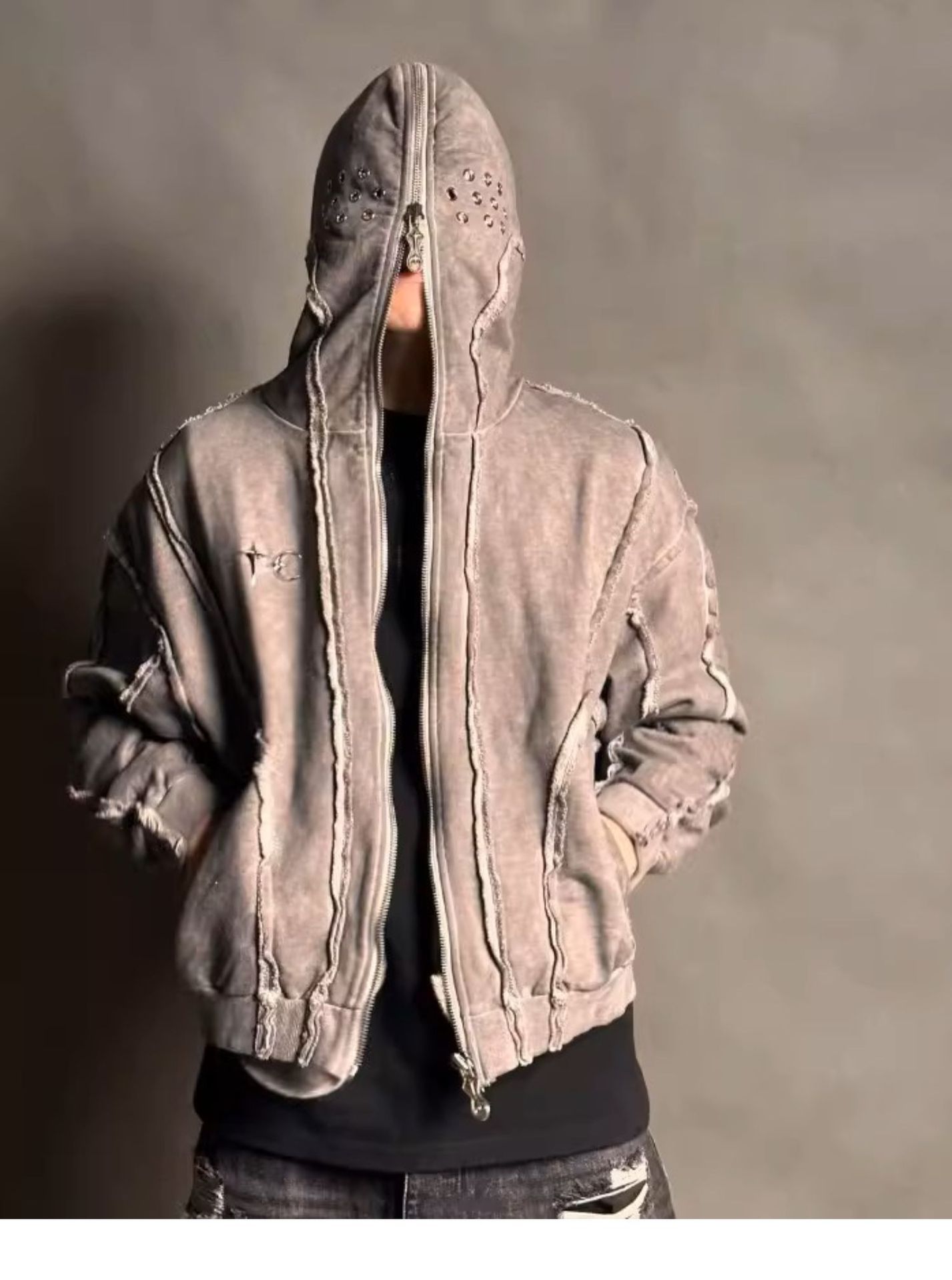 국경 24 새로운 VIBE 세척 바틱 지퍼 상어 가면 후드 카디건 짧은 스웨트 셔츠 남성 패션 브랜드 재킷스토어 가기