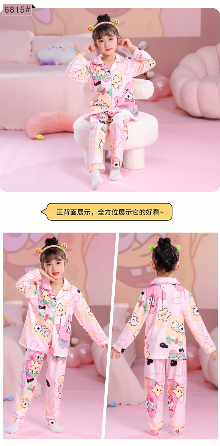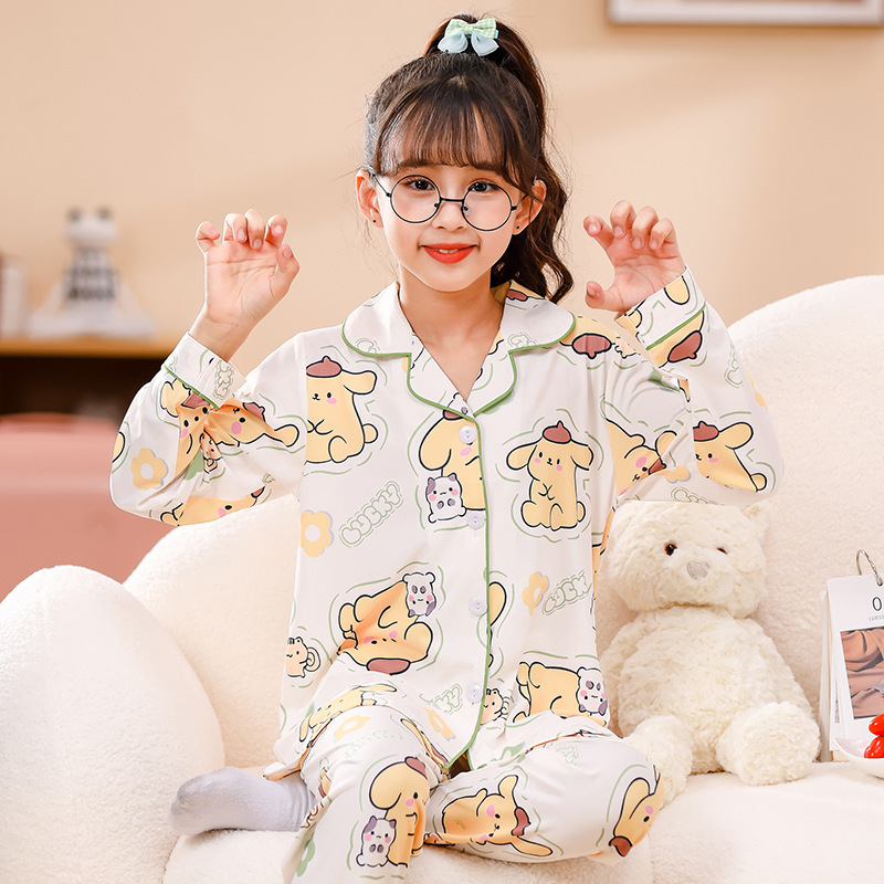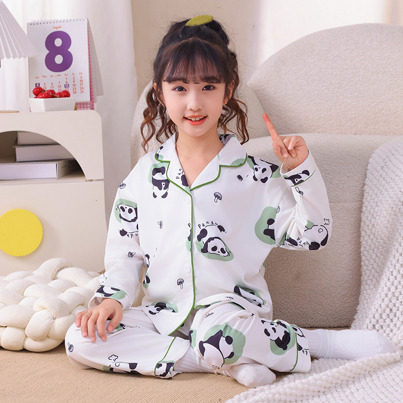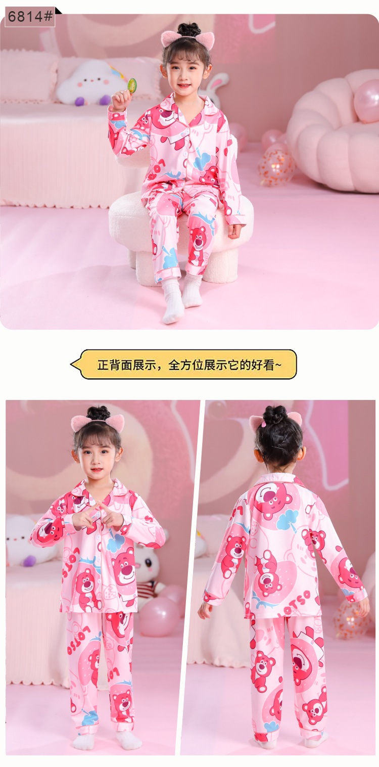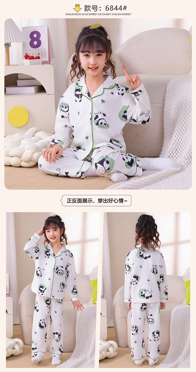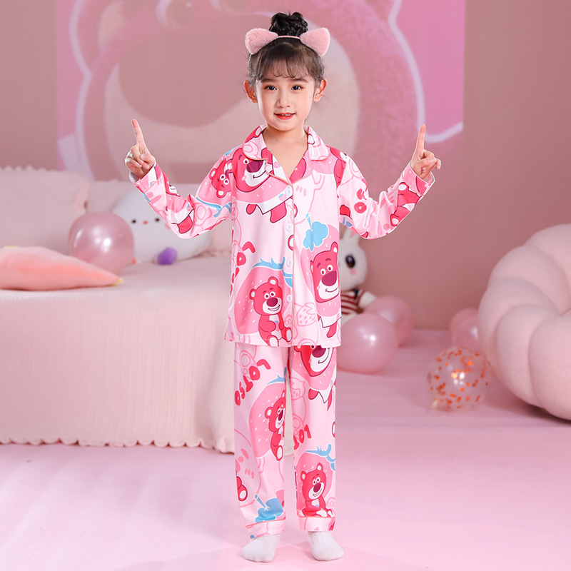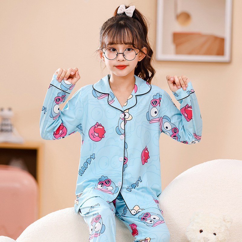 국경 간 어린이 잠옷 소녀 봄과 여름 면화 긴 소매 카디건 세트 가을과 겨울 소녀 중 큰 어린이 집 옷스토어 가기
