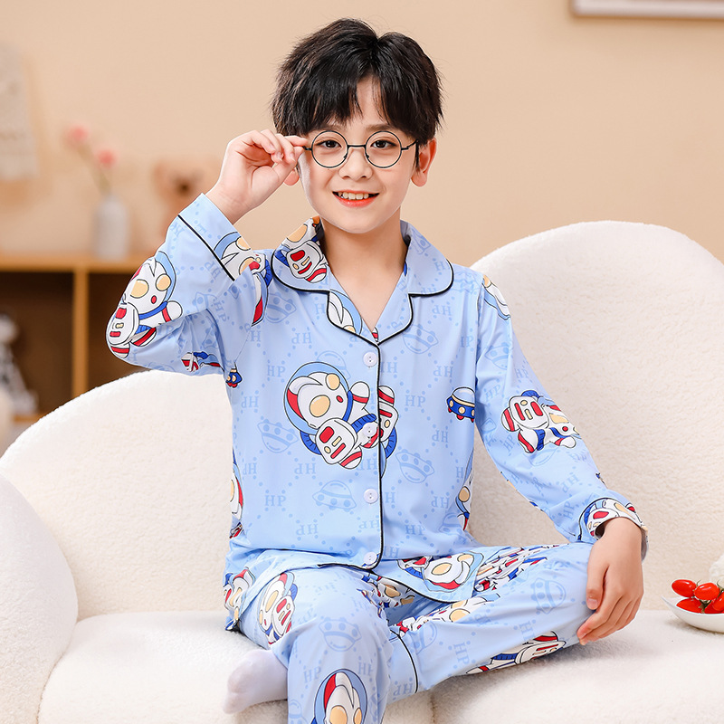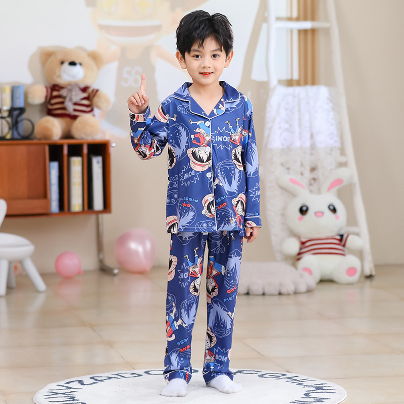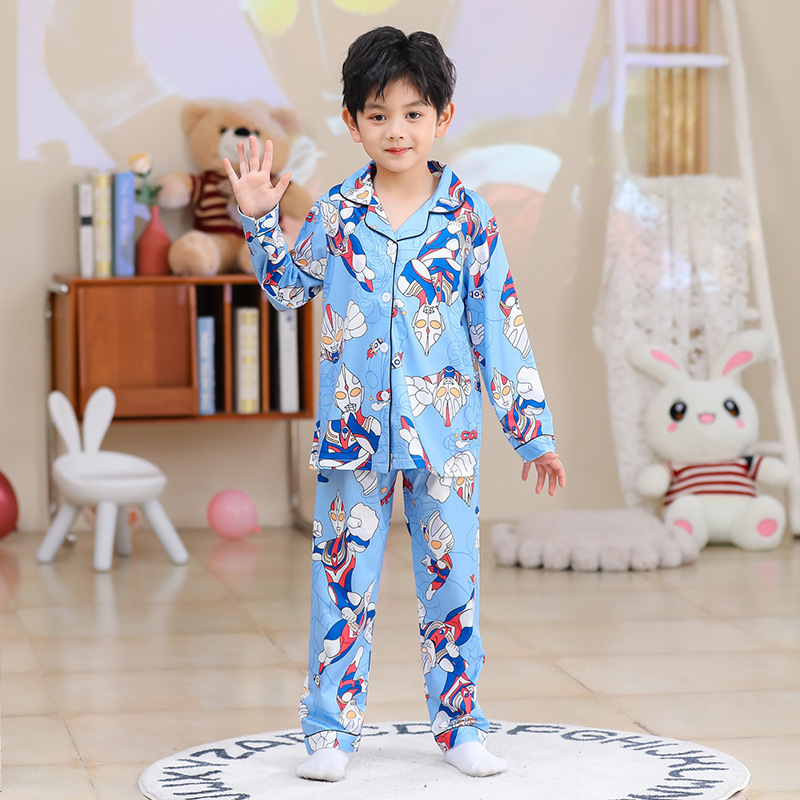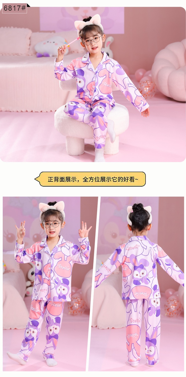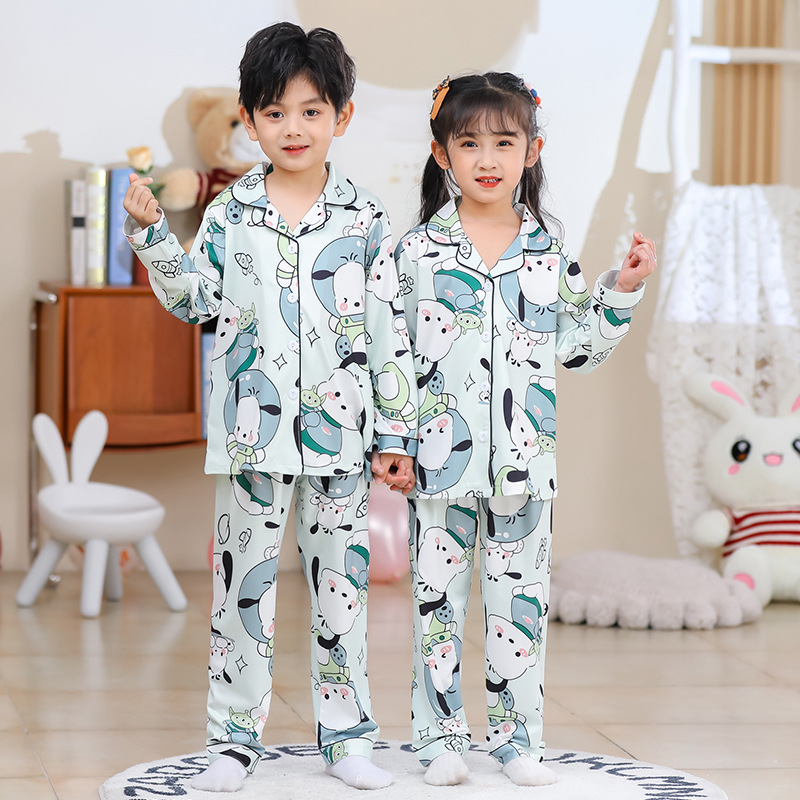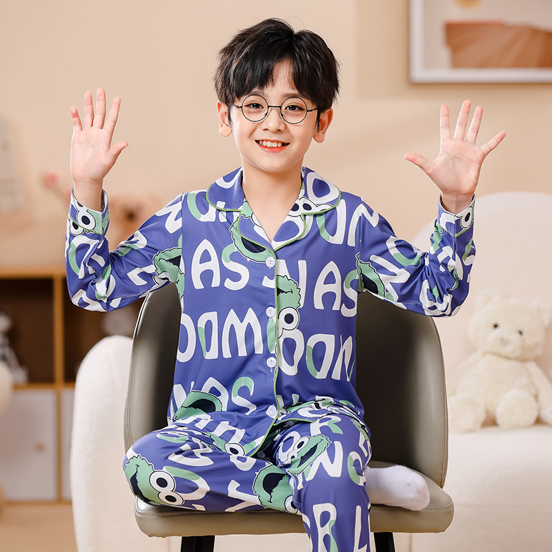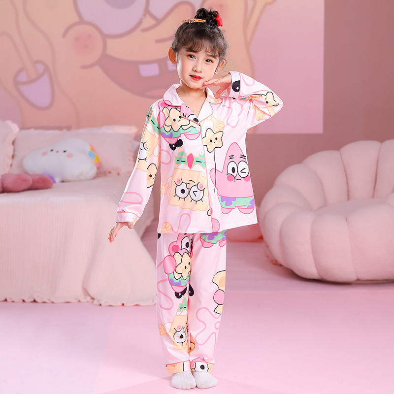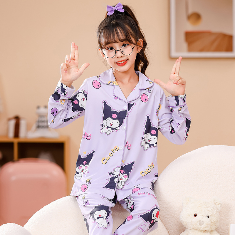 국경 간 어린이 잠옷 소녀 봄과 여름 면화 긴 소매 카디건 세트 가을과 겨울 소녀 중 큰 어린이 집 옷스토어 가기