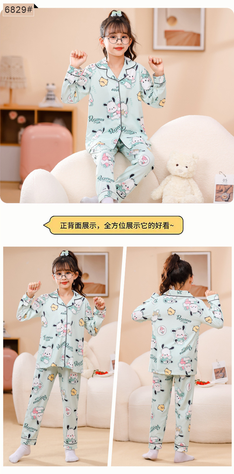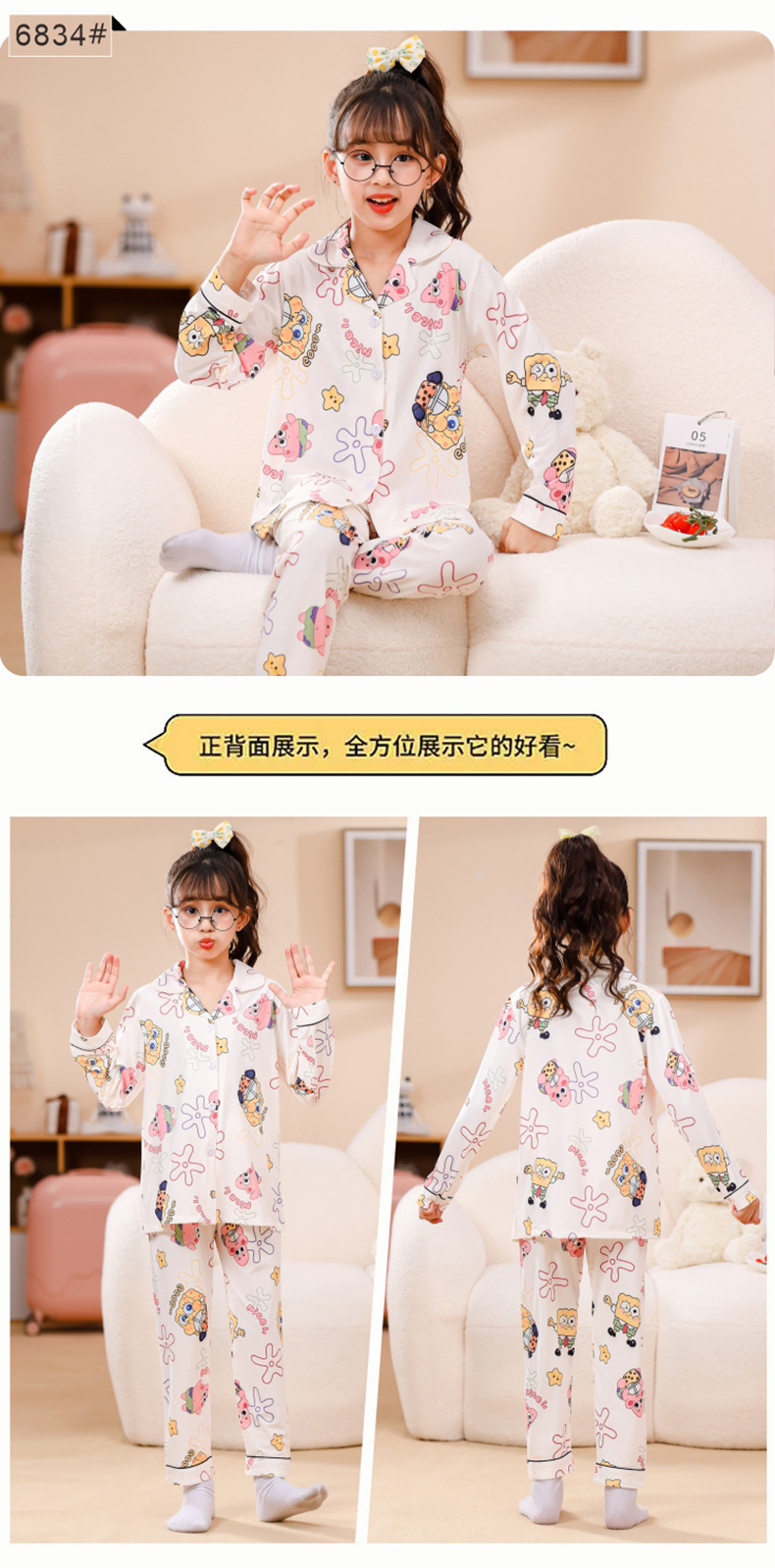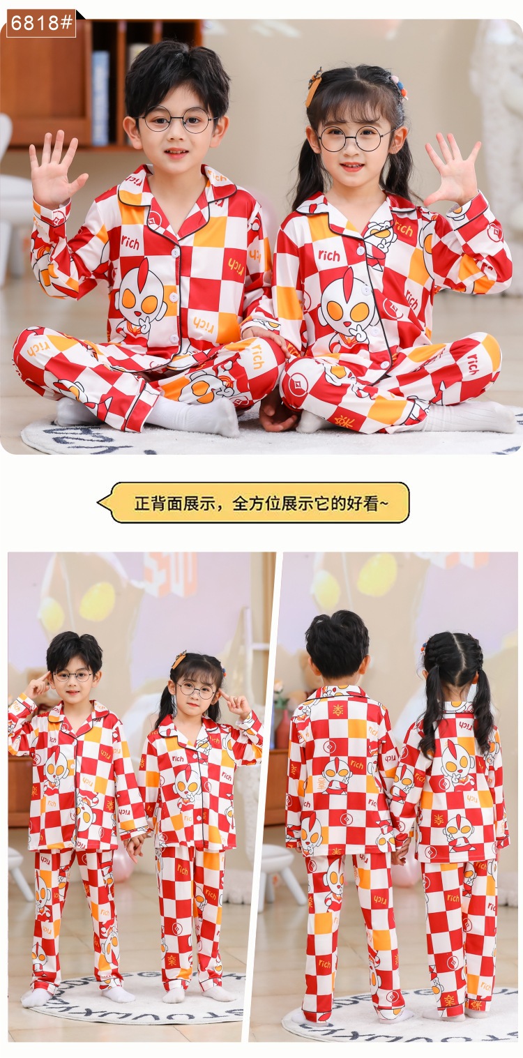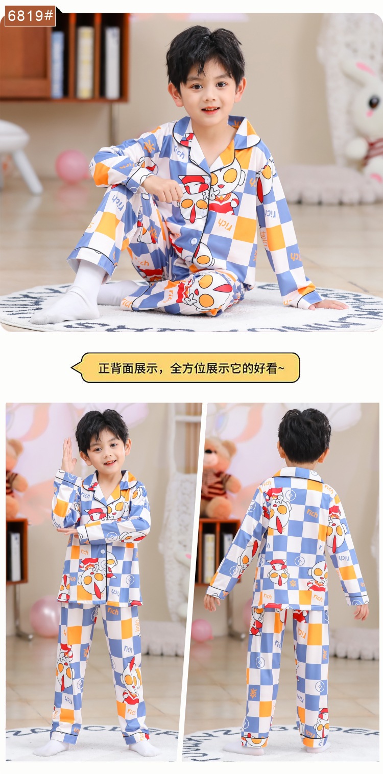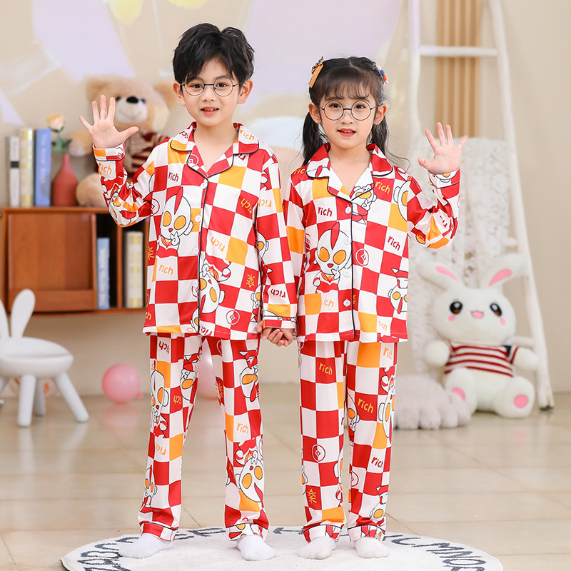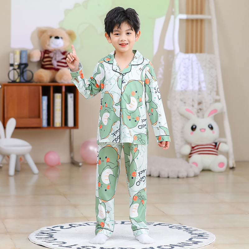 국경 간 어린이 잠옷 소녀 봄과 여름 면화 긴 소매 카디건 세트 가을과 겨울 소녀 중 큰 어린이 집 옷스토어 가기
