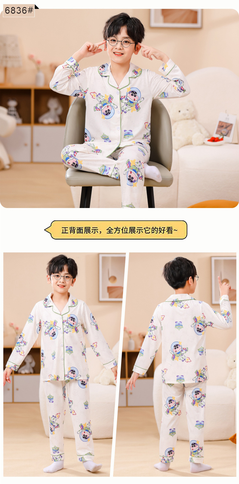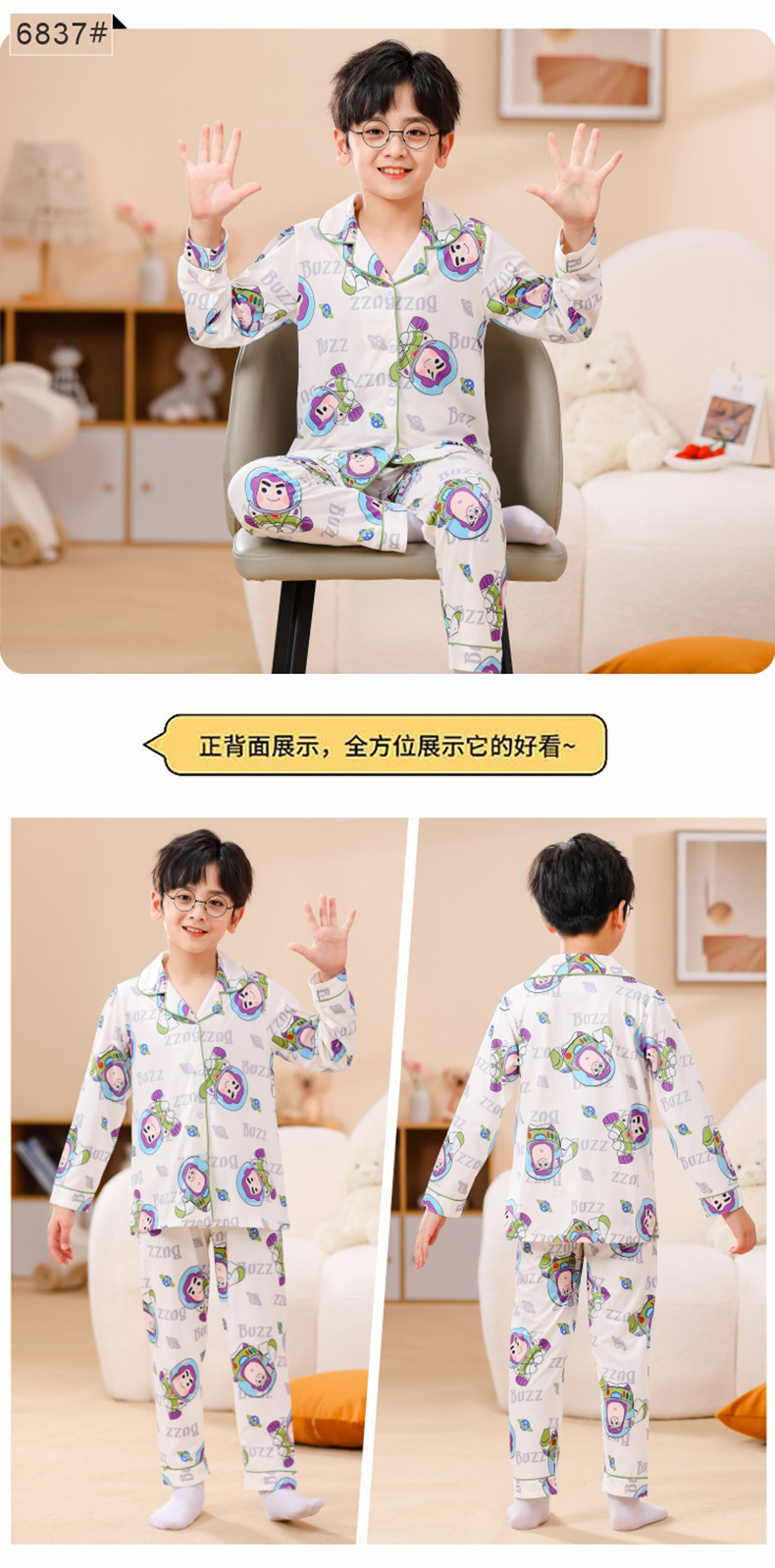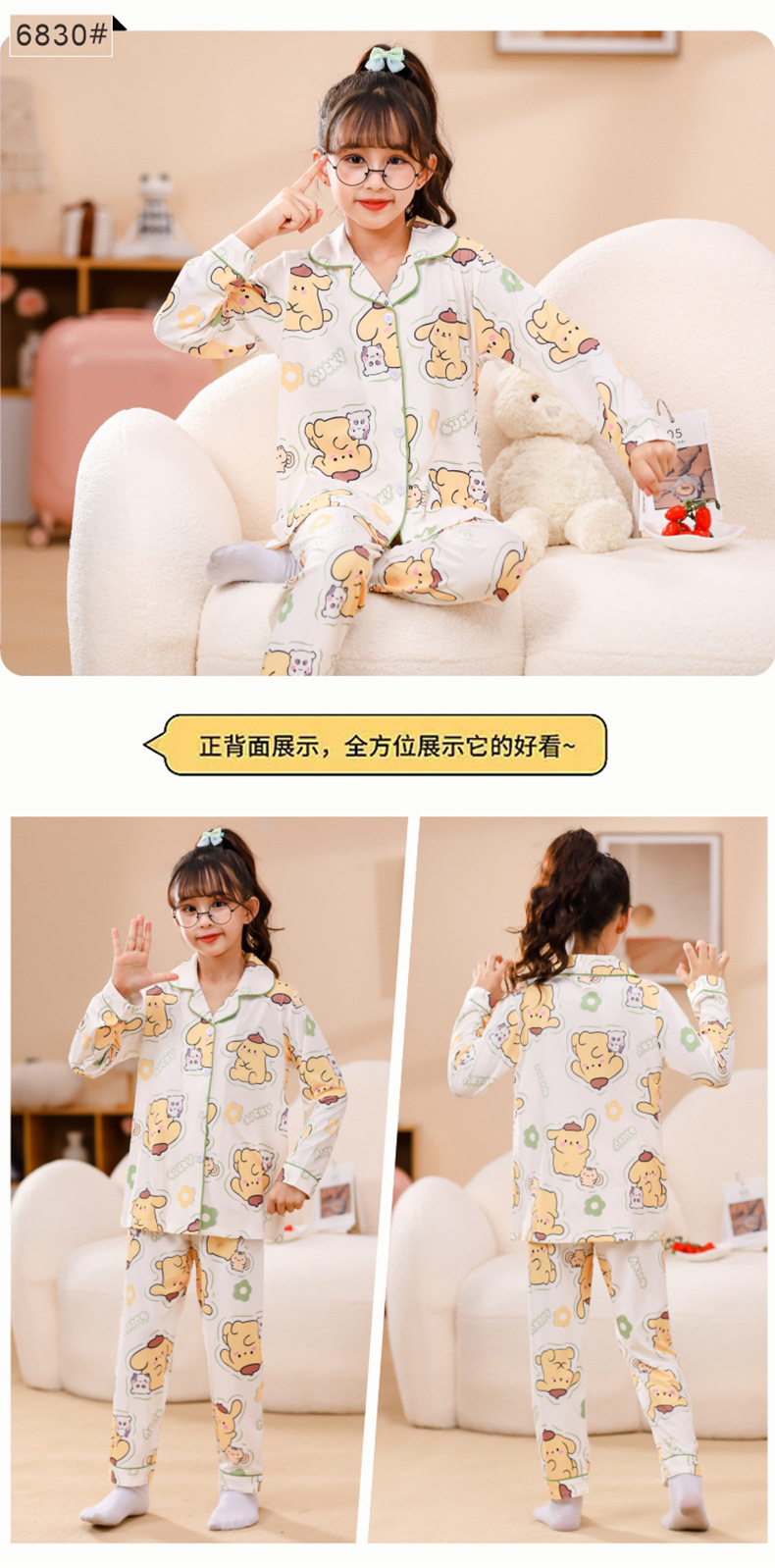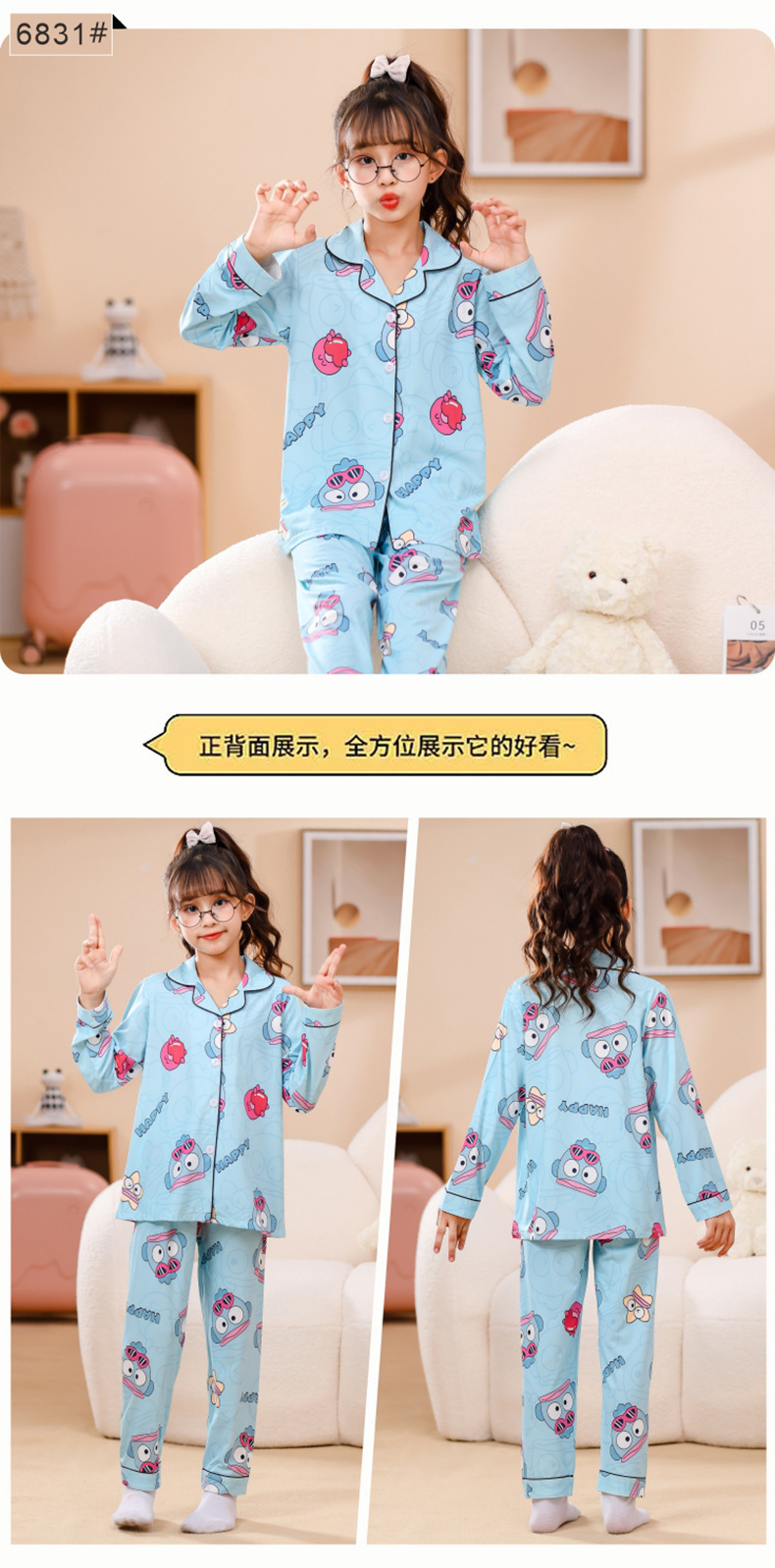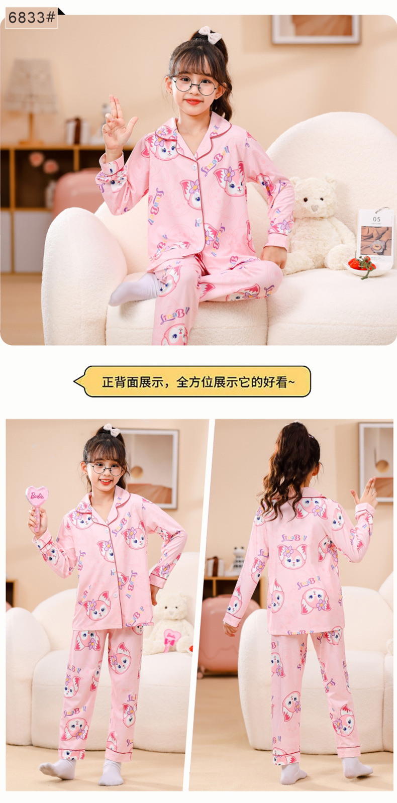 국경 간 어린이 잠옷 소녀 봄과 여름 면화 긴 소매 카디건 세트 가을과 겨울 소녀 중 큰 어린이 집 옷스토어 가기