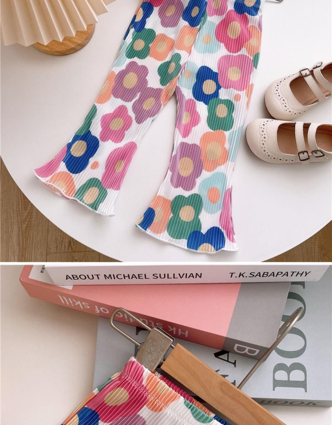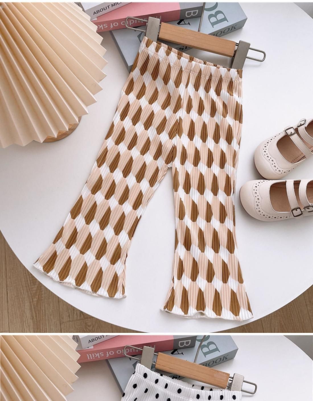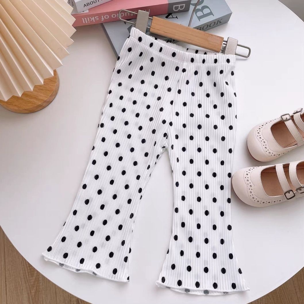 여름 소녀 플레어 꽃 폴카 도트 팬츠 아이스 실크 얇은 서양 패션 어린이 바지 도매 한국판스토어 가기