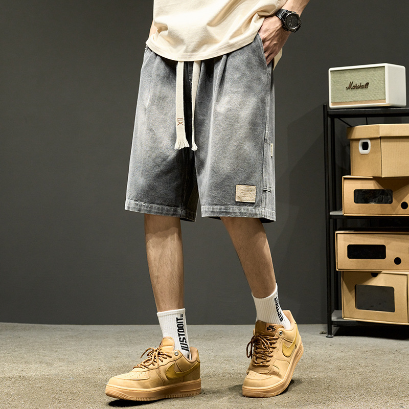 세탁 된 툴링 데님 반바지 남자 여름 얇은 바지 아메리칸 스타일 스트리트 올 매치 루즈 스트레이트 스포츠 바지스토어 가기