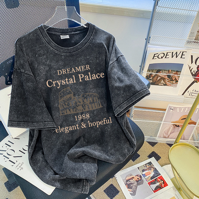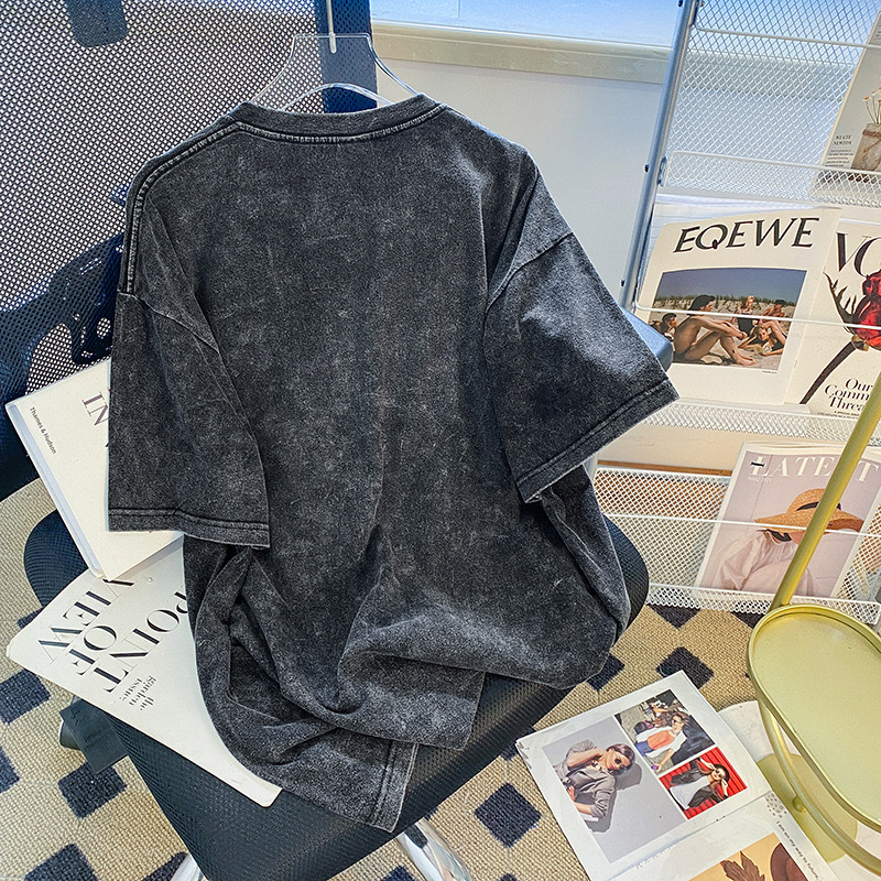 아메리칸 스타일 레트로 올드 플러스 사이즈 반소매 코튼 티셔츠 여성용 여름 디자인 센스 오버 사이즈 세탁 블랙 루즈 탑스토어 가기