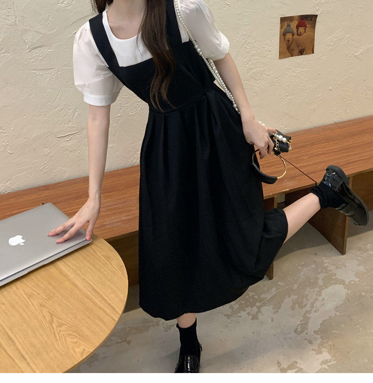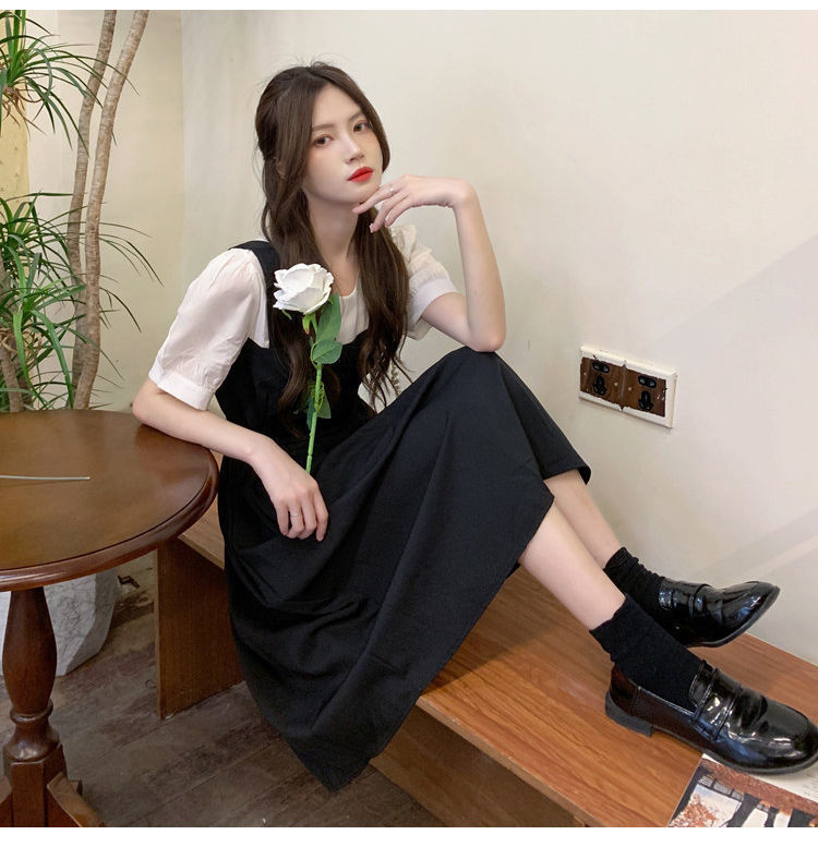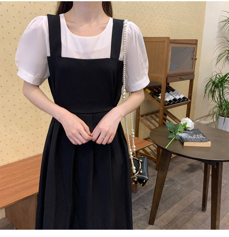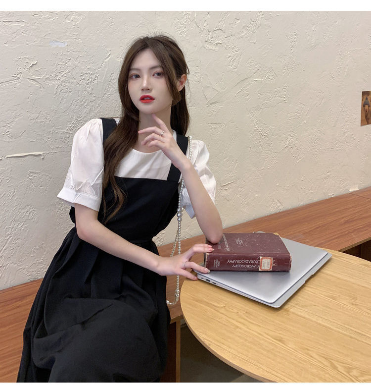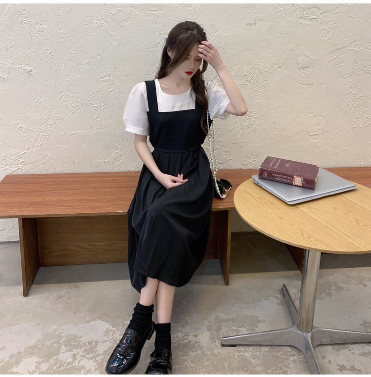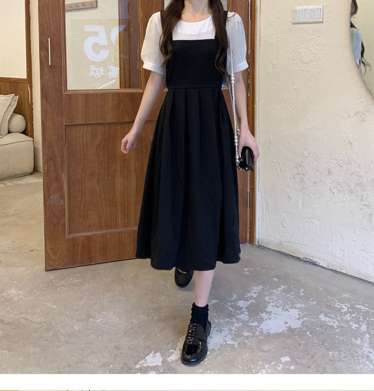 블랙 원피스 여자 여름 바느질 가짜 투피스 하이 엔드 원피스 프렌치 레트로 작은 검은 색 원피스 스트랜드 원피스 긴 원피스스토어 가기