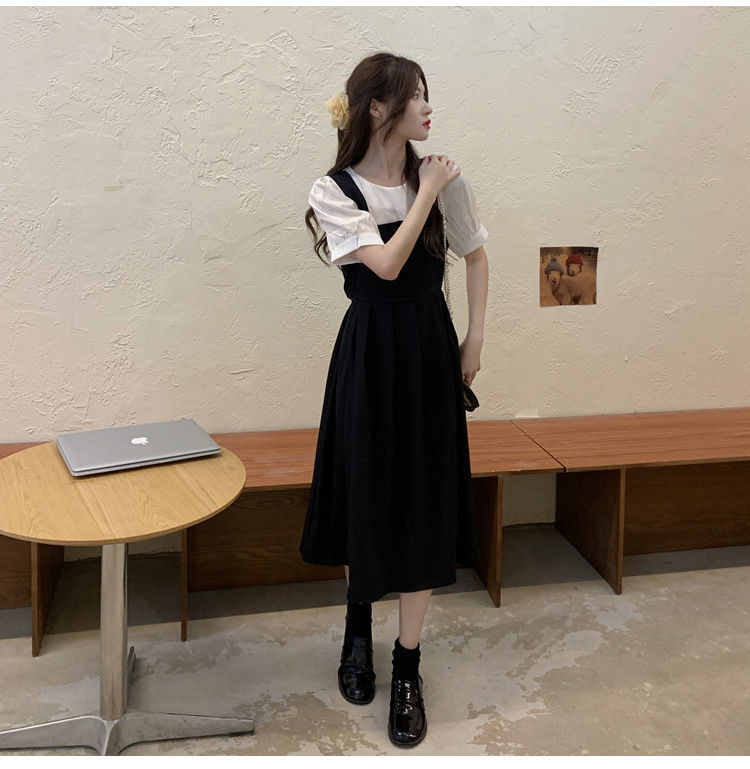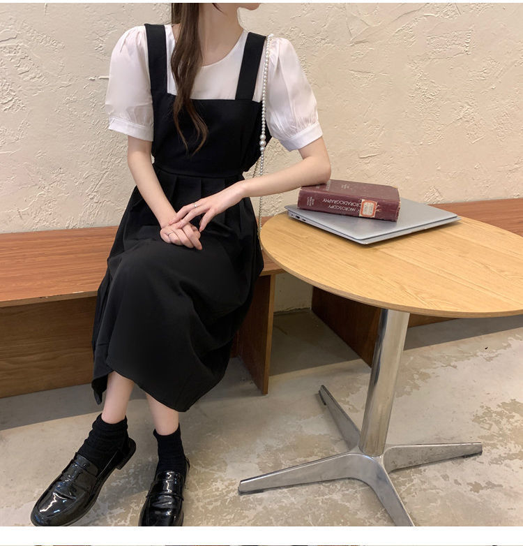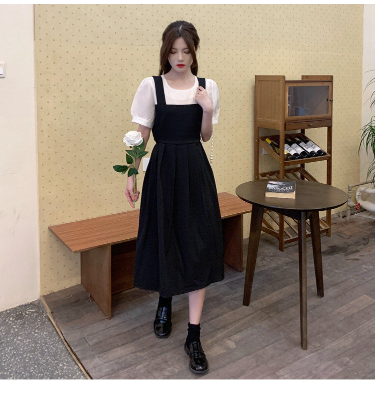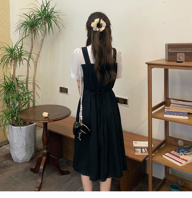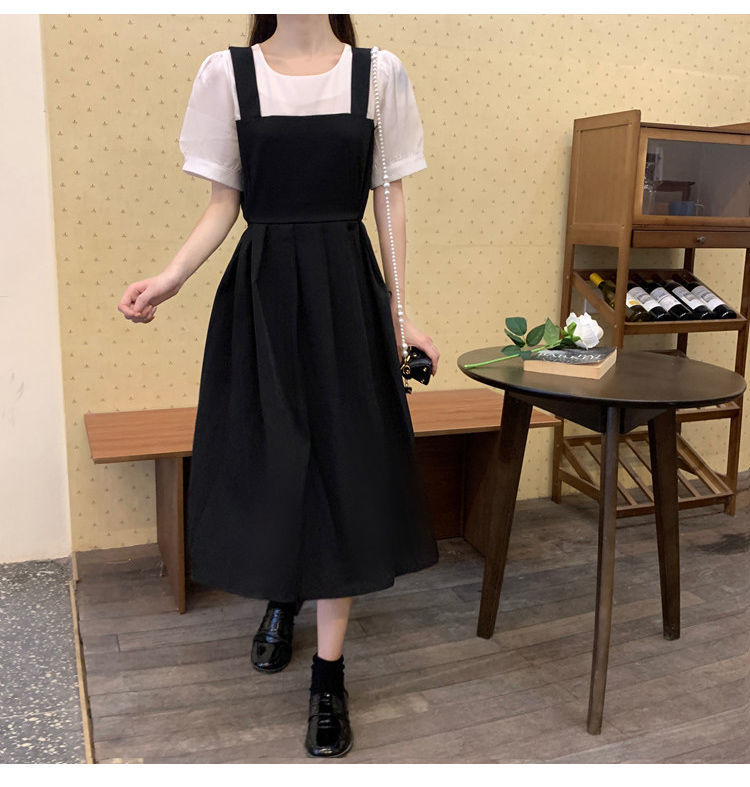 블랙 원피스 여자 여름 바느질 가짜 투피스 하이 엔드 원피스 프렌치 레트로 작은 검은 색 원피스 스트랜드 원피스 긴 원피스스토어 가기